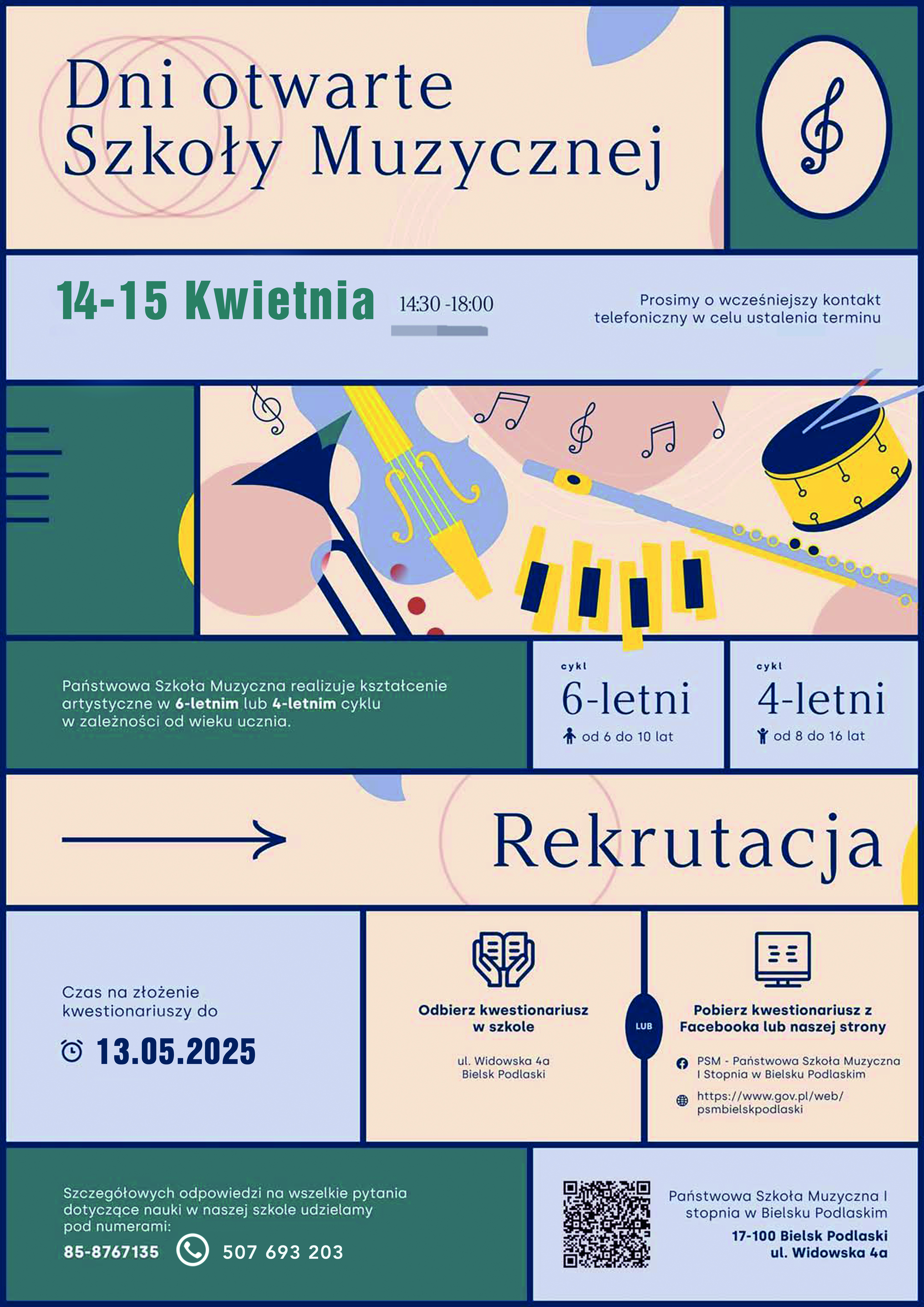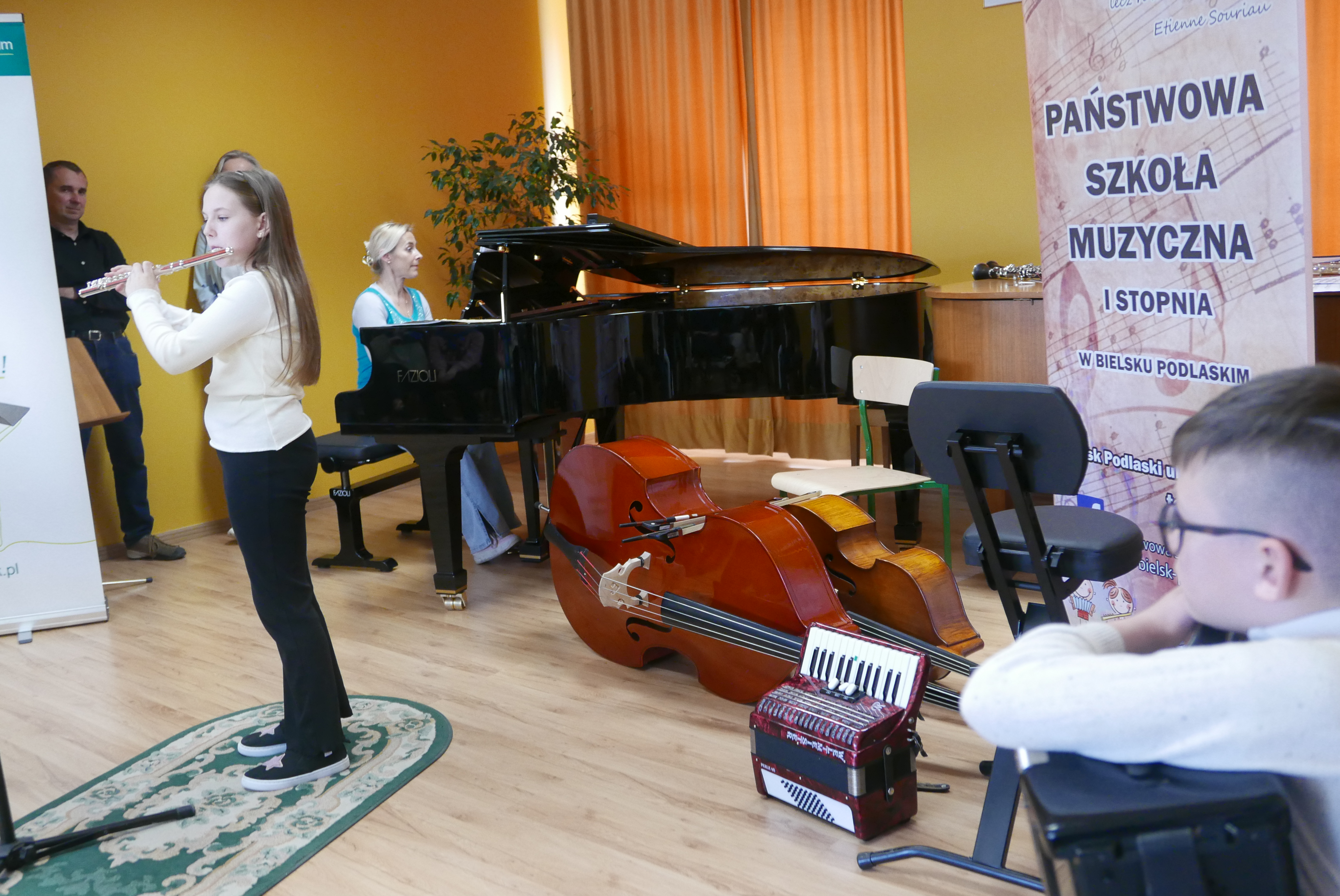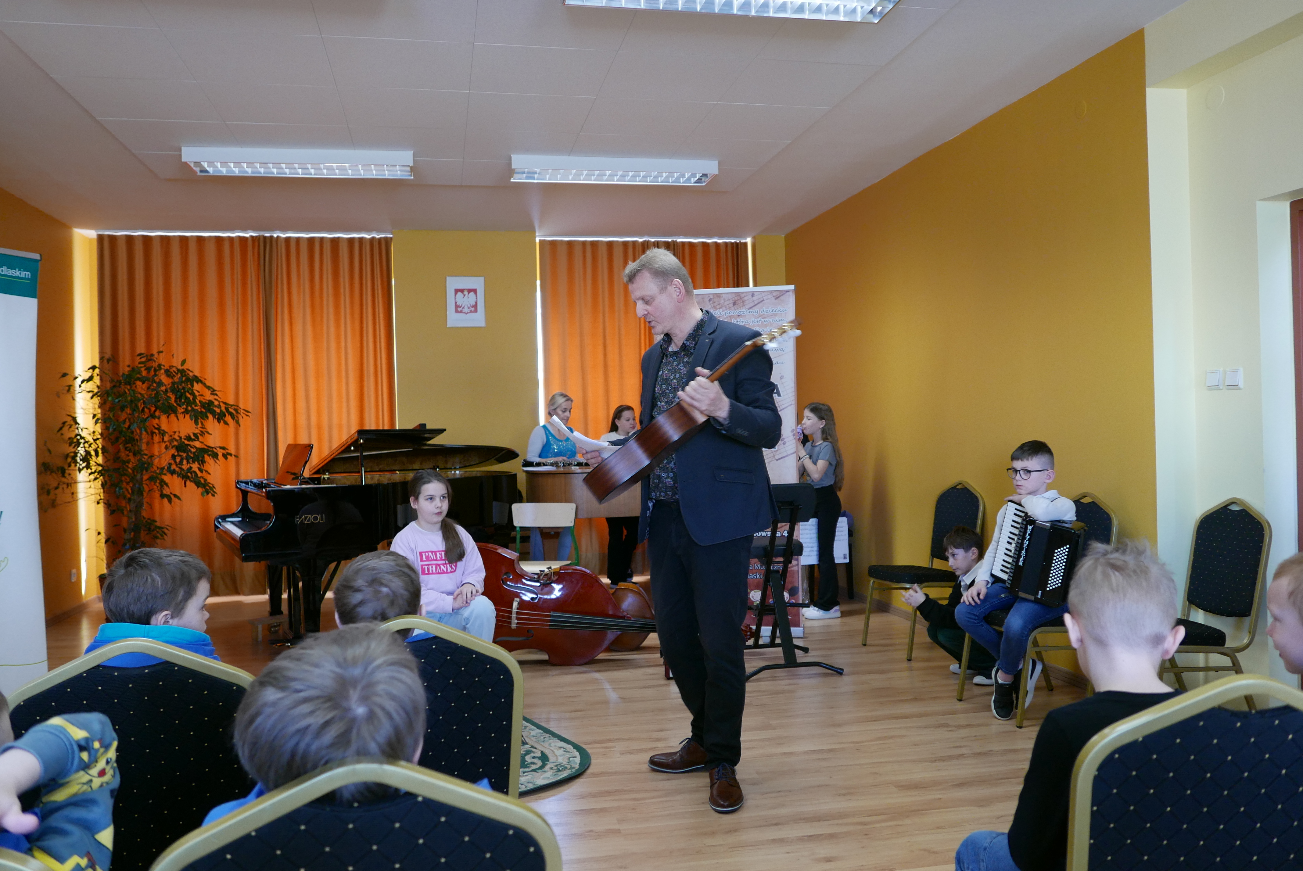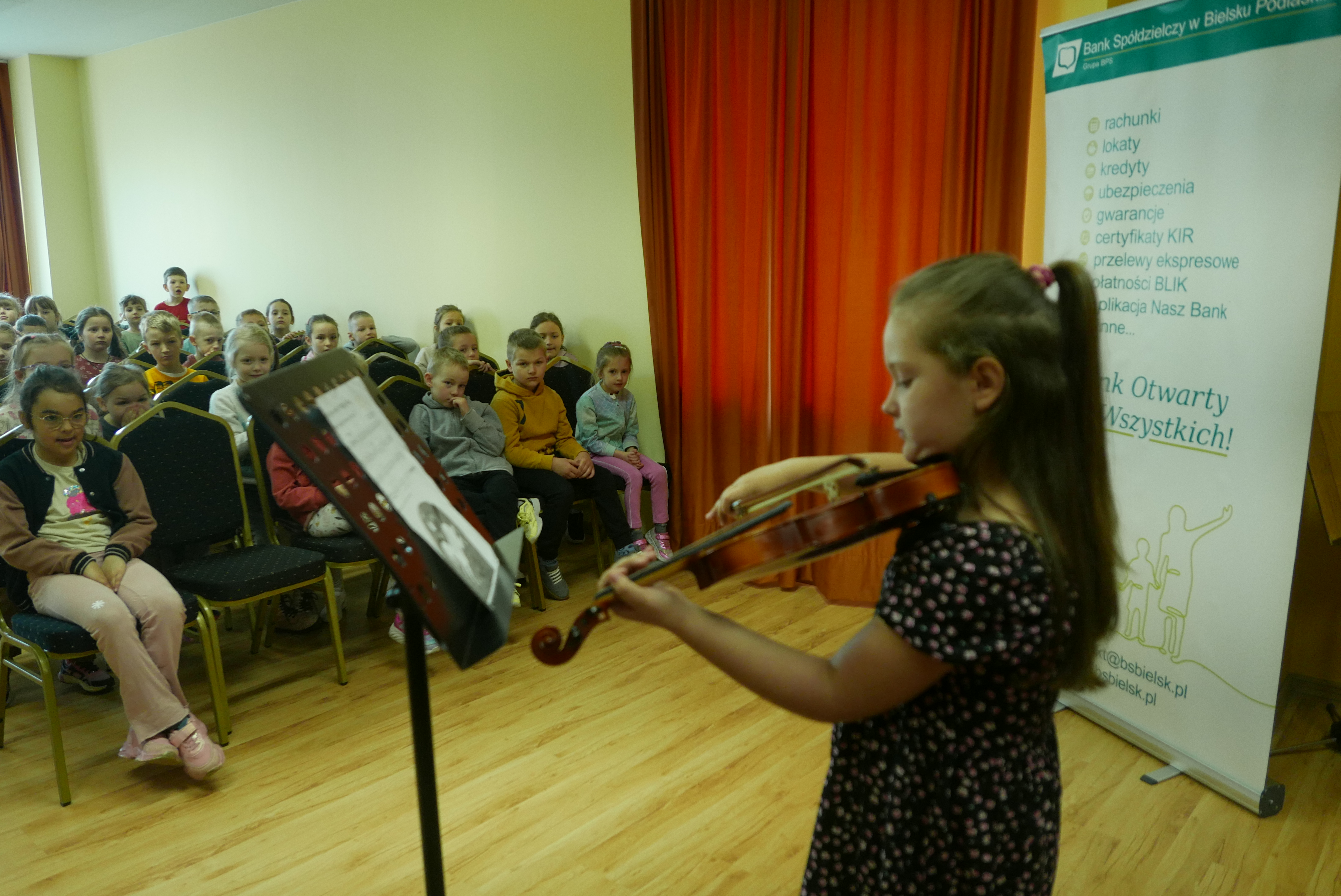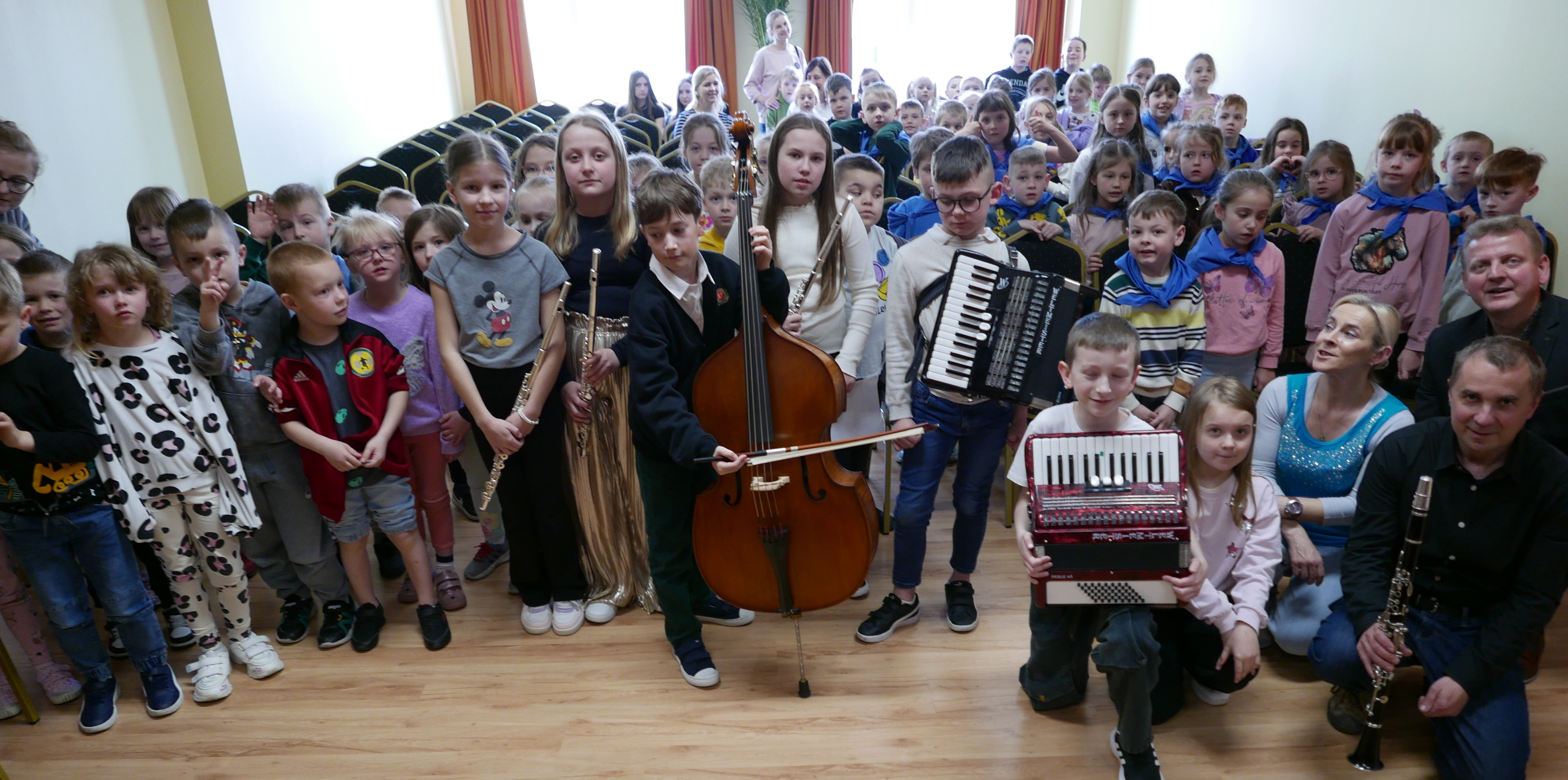 14 kwietnia 2025r., o godz. 9.30 gościliśmy w naszej szkole przedszkolaków wraz z opiekunami z Przedszkola nr 5 im. Krasnala Hałabały oraz z Przedszkola "Na Hołowiesku" działającym przy Parafii Opatrzności Bożej w Bielsku Podlaskim. O godz. 10.30 zawitały do nas grupy przedszkolne z Przedszkola nr 9 "Leśna Polana" oraz Katolickiego Przedszkola Niepublicznego "Karmelki". Swoje instrumenty oraz umiejętności prezentowali w większości byli wychowankowie tych placówek. Opiekunowie grup przedszkolnych z zachwytem wsłuchiwali się w dźwięki wydobywające się z poszczególnych instrumentów a dzieci chwaliły się, których uczniów PSM I st. znają z przedszkola. Pan Ireneusz Ławreszuk, przed każdym występem omawiał poszczególne instrumenty, opowiadał o kompozytorach oraz o utworach, które były wykonywane. Przedszkolaki były bardzo wsłuchane w dźwięki poszczególnych instrumentów. Po skończonych prezentacjach wszyscy chcieli uczyć się grać w szkole muzycznej! To wspaniale jest widzieć taki entuzjazm i chęci wśród dzieci!