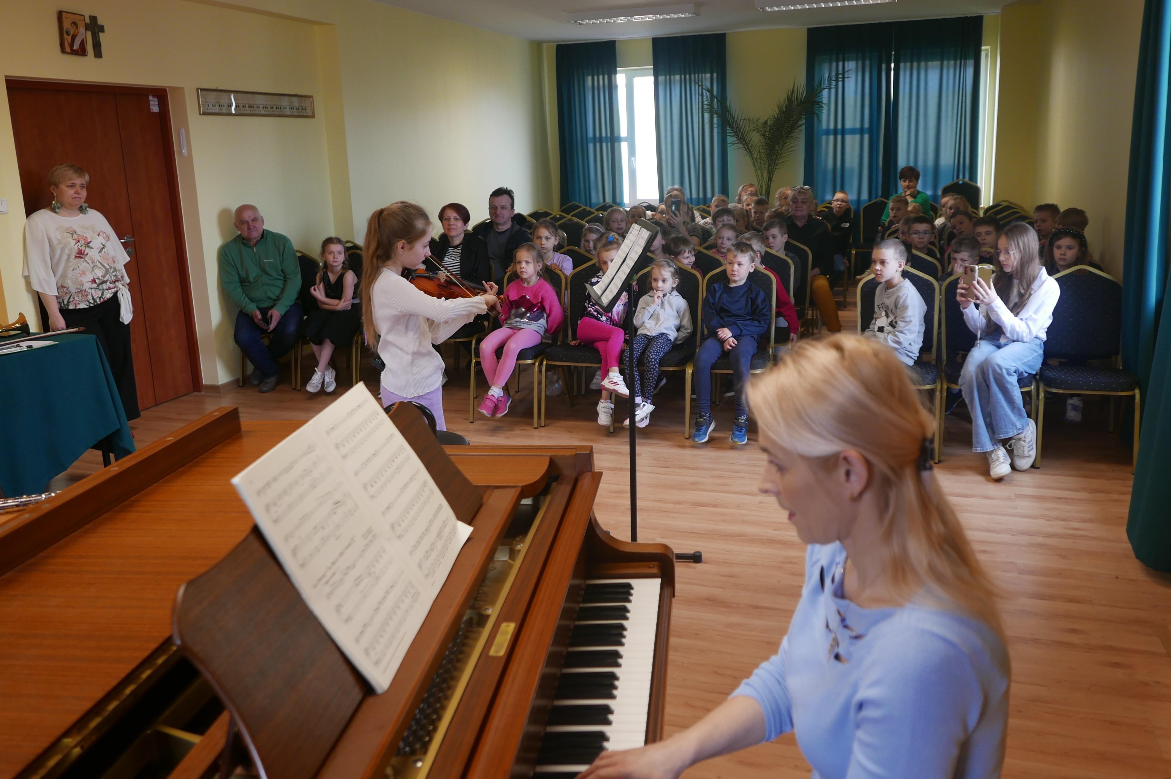 15 kwietnia 2024r w PSM I st., w ramach Dni Otwartych Szkoły odbyły się 2 koncerty dla najstarszych grup przedszkolnych: z Przedszkola nr 9 "Leśna Polana" oraz z przedszkola "Na Hołowiesku". 6-ciolatkowie mieli okazję dokładniej zapoznać się z instrumentami muzycznymi, posłuchać jak brzmią a nawet spróbować swoich sił na poszczególnych instrumentach. Mówili nawet, na którym instrumencie chcą nauczyć się grać! Bardzo miło było to słyszeć . Serdecznie dziękujemy za wizytę i zapraszamy na przesłuchania wstępne!