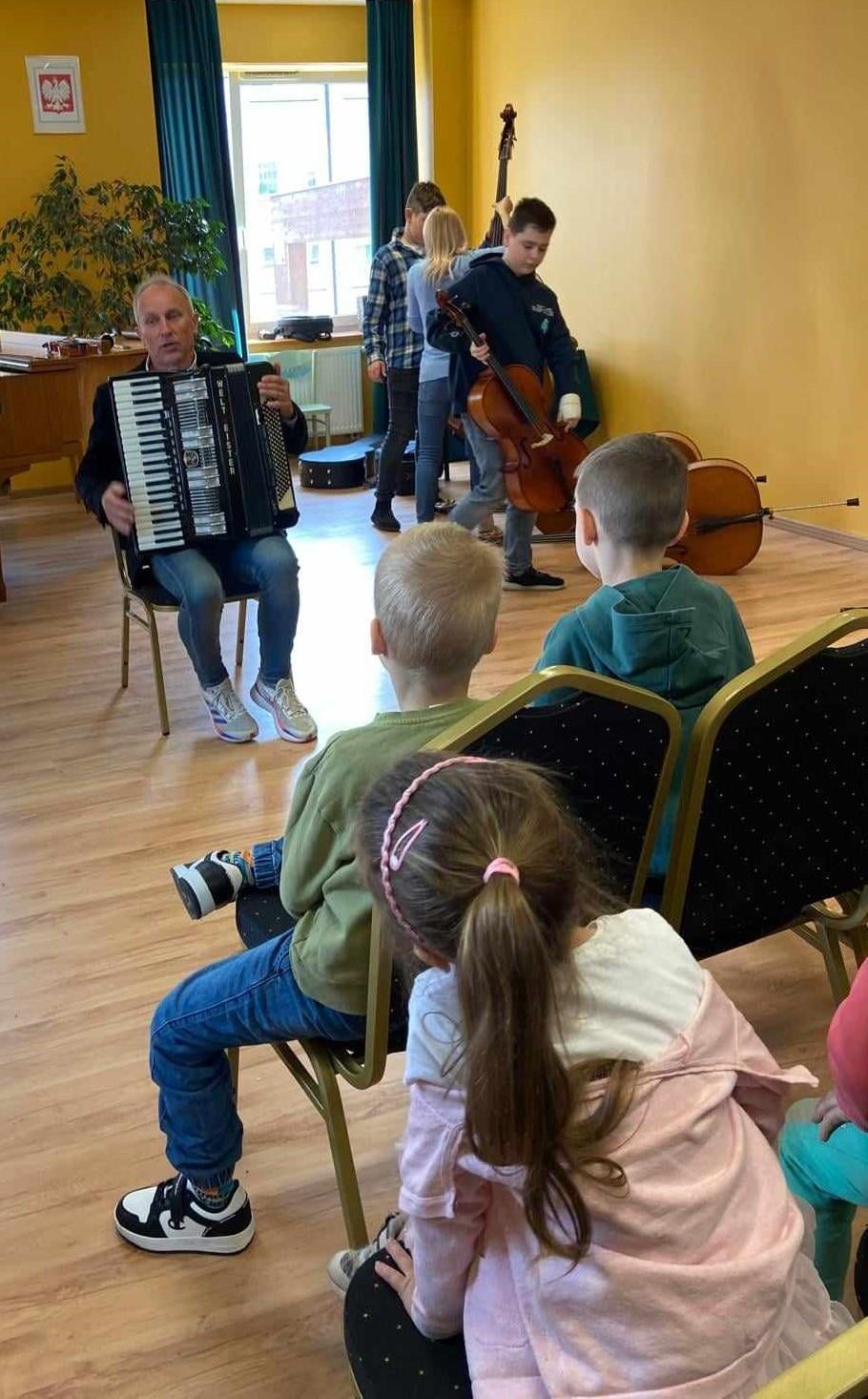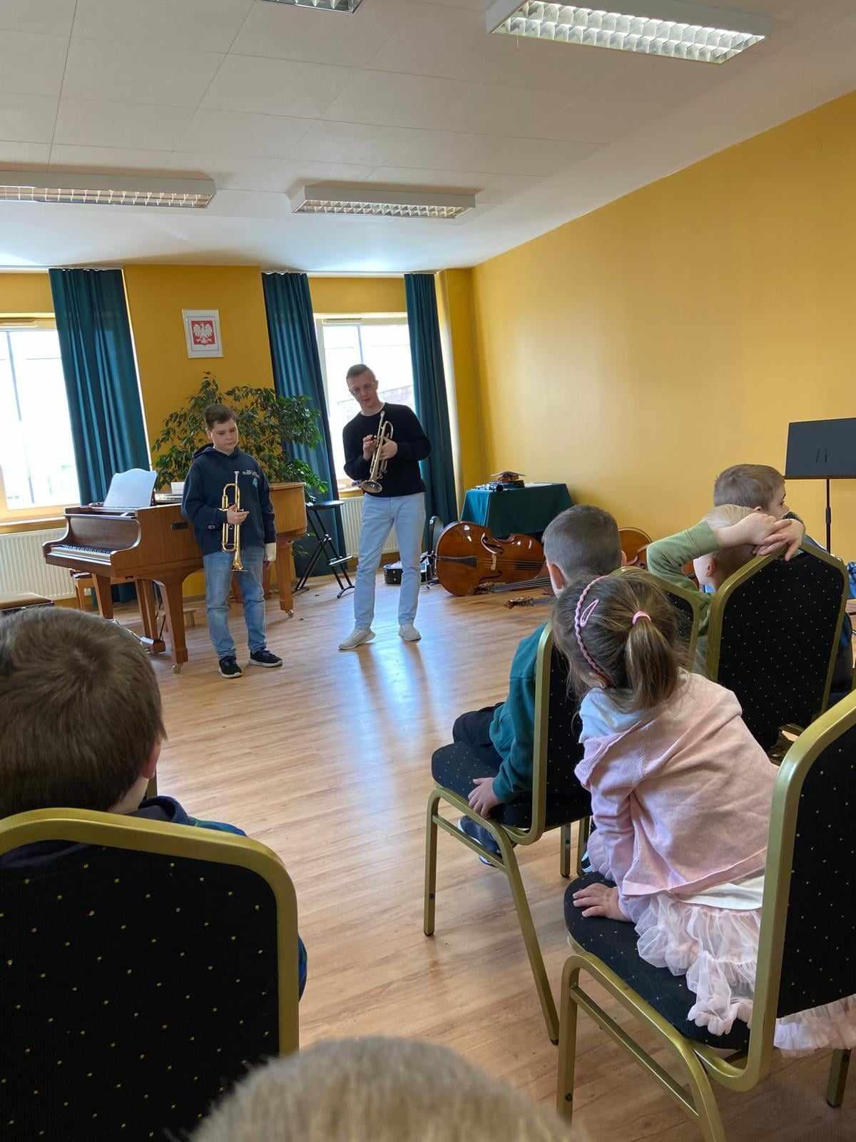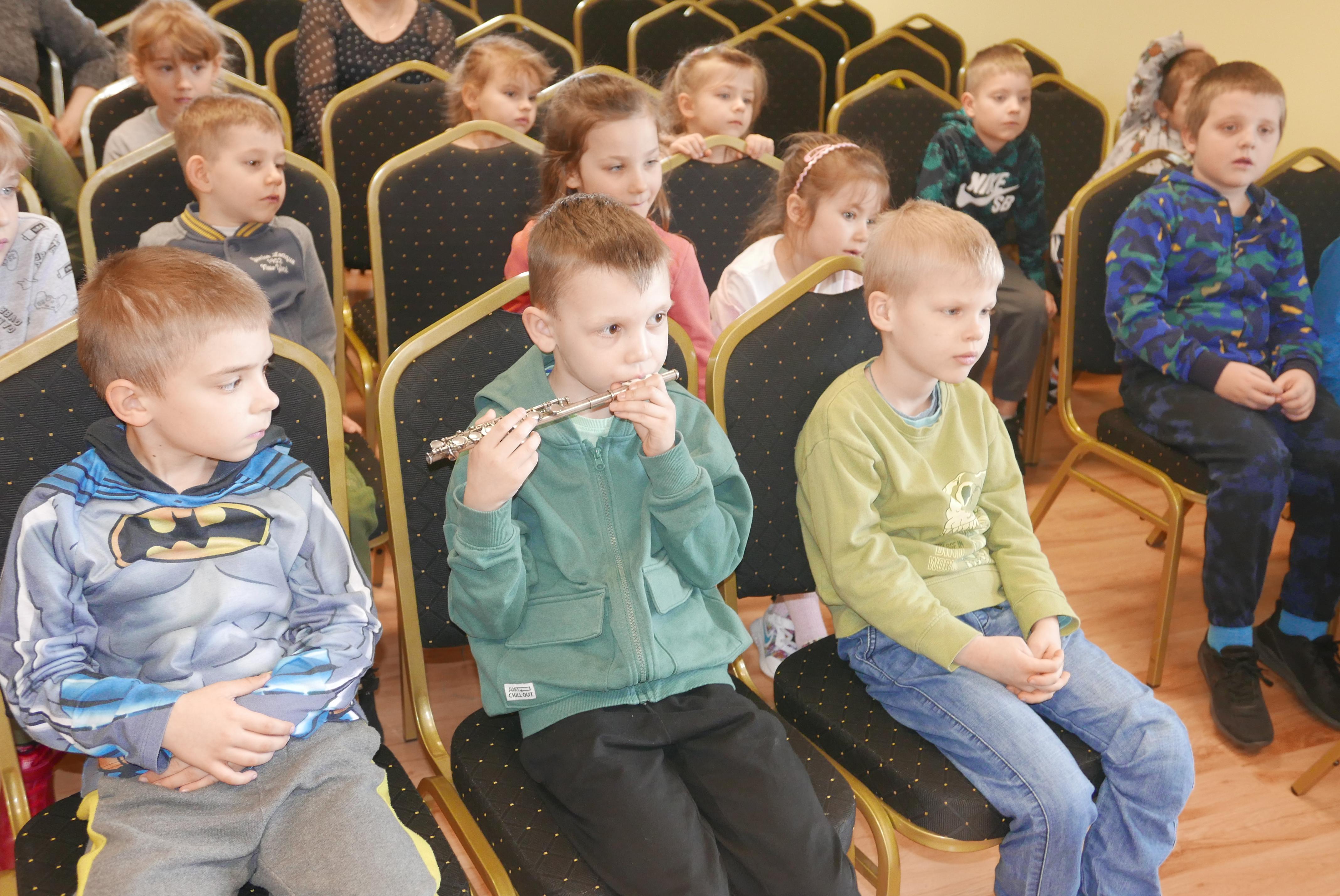 16.04.2024r. naszymi gośćmi były przedszkolaki z Przedszkola nr 5 im. "Krasnala Chałabały" oraz z Przedszkola nr 3 z Oddziałami Integracyjnymi. Prowadzącym audycję muzyczną był Maksymilian Opryszczki - uczeń PSM I st. z klasy trąbki. Starszaki z ogromnym zaciekawieniem słuchały, jak Maks opowiadał o instrumentach muzycznych, o ich brzmieniu... Każda opowieść była podparta przykładem muzycznym, a wykonawcami byli uczniowie PSM I st. Po całej prezentacji grupy przedszkolne wypytywały Maksa, skąd posiada tyle wiadomości o instrumentach? Nasz uczeń dumnie odpowiadał, że wszystkiego nauczył się w PSM I st. i wszystkich zachęcał do nauki w naszej szkole! Dziękujemy Maksiu! Dziękujemy również przedszkolakom oraz opiekunom grup za wizytę i wspaniałą atmosferę
