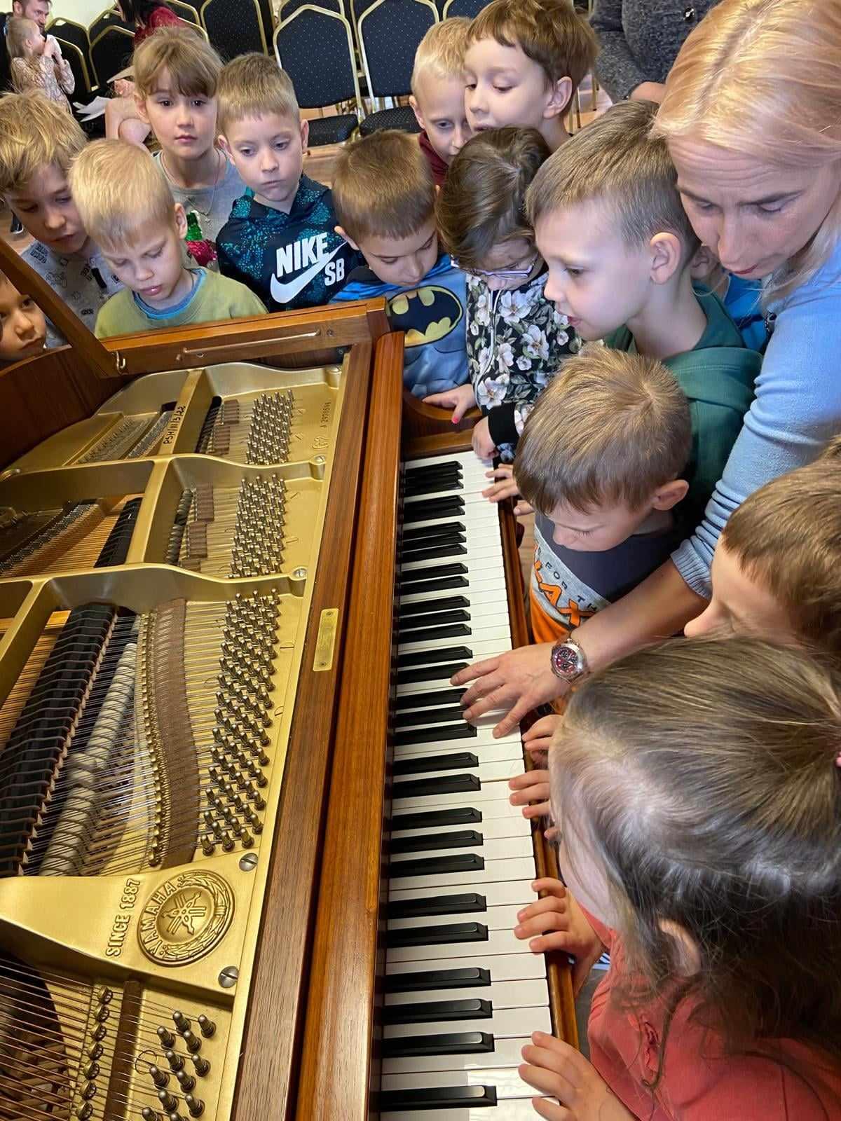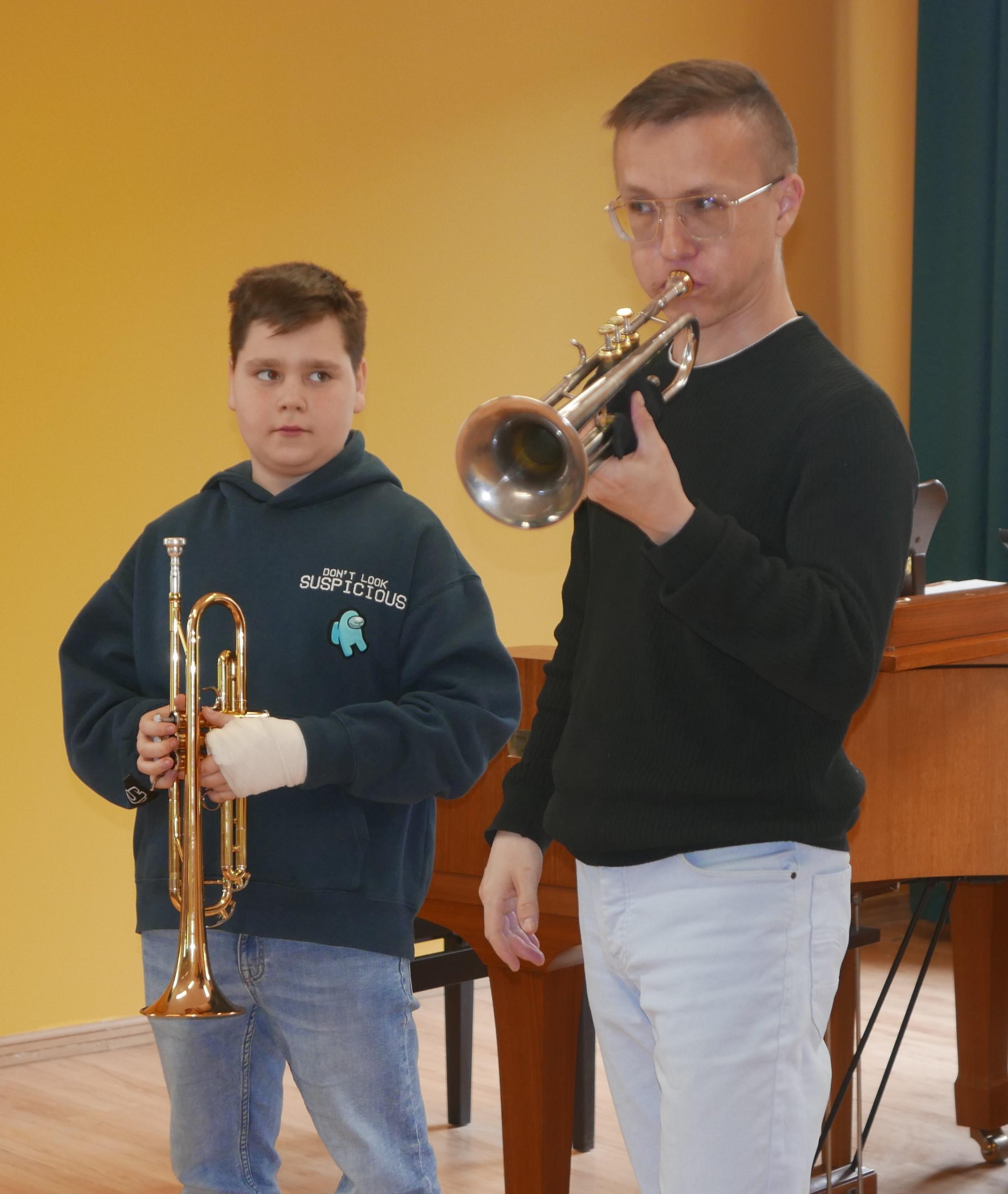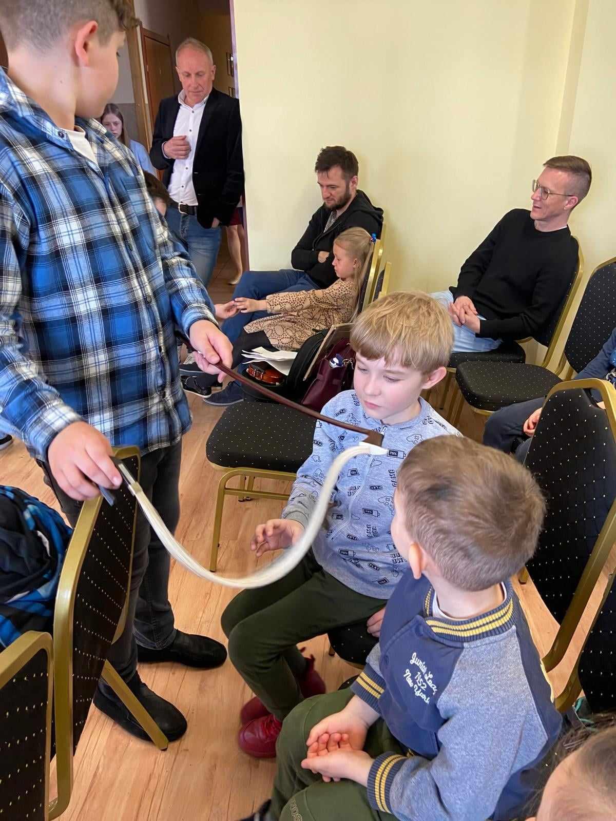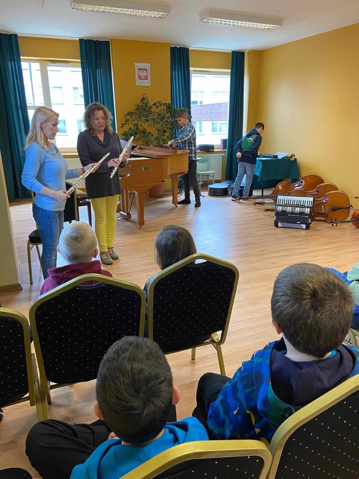 16.04.2024r. naszymi gośćmi były przedszkolaki z Przedszkola nr 5 im. "Krasnala Chałabały" oraz z Przedszkola nr 3 z Oddziałami Integracyjnymi. Prowadzącym audycję muzyczną był Maksymilian Opryszczki - uczeń PSM I st. z klasy trąbki. Starszaki z ogromnym zaciekawieniem słuchały, jak Maks opowiadał o instrumentach muzycznych, o ich brzmieniu... Każda opowieść była podparta przykładem muzycznym, a wykonawcami byli uczniowie PSM I st. Po całej prezentacji grupy przedszkolne wypytywały Maksa, skąd posiada tyle wiadomości o instrumentach? Nasz uczeń dumnie odpowiadał, że wszystkiego nauczył się w PSM I st. i wszystkich zachęcał do nauki w naszej szkole! Dziękujemy Maksiu! Dziękujemy również przedszkolakom oraz opiekunom grup za wizytę i wspaniałą atmosferę