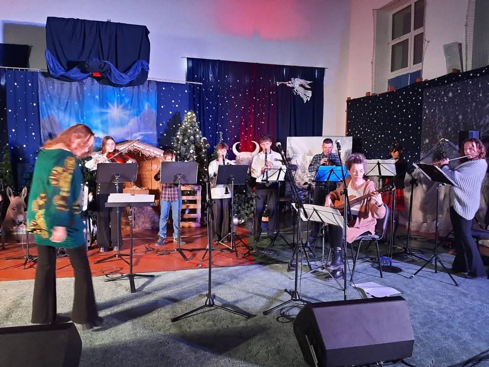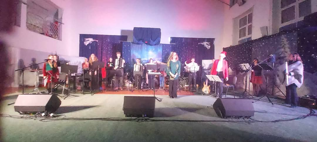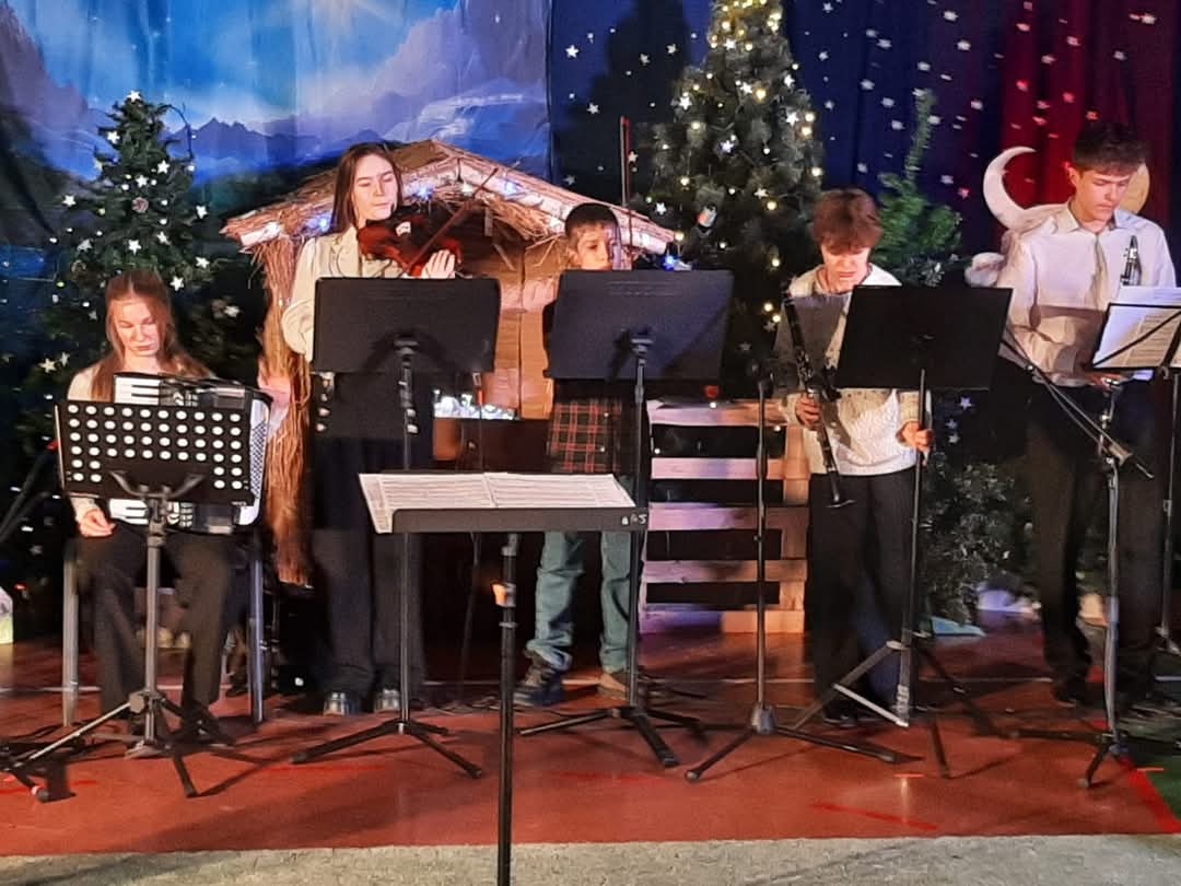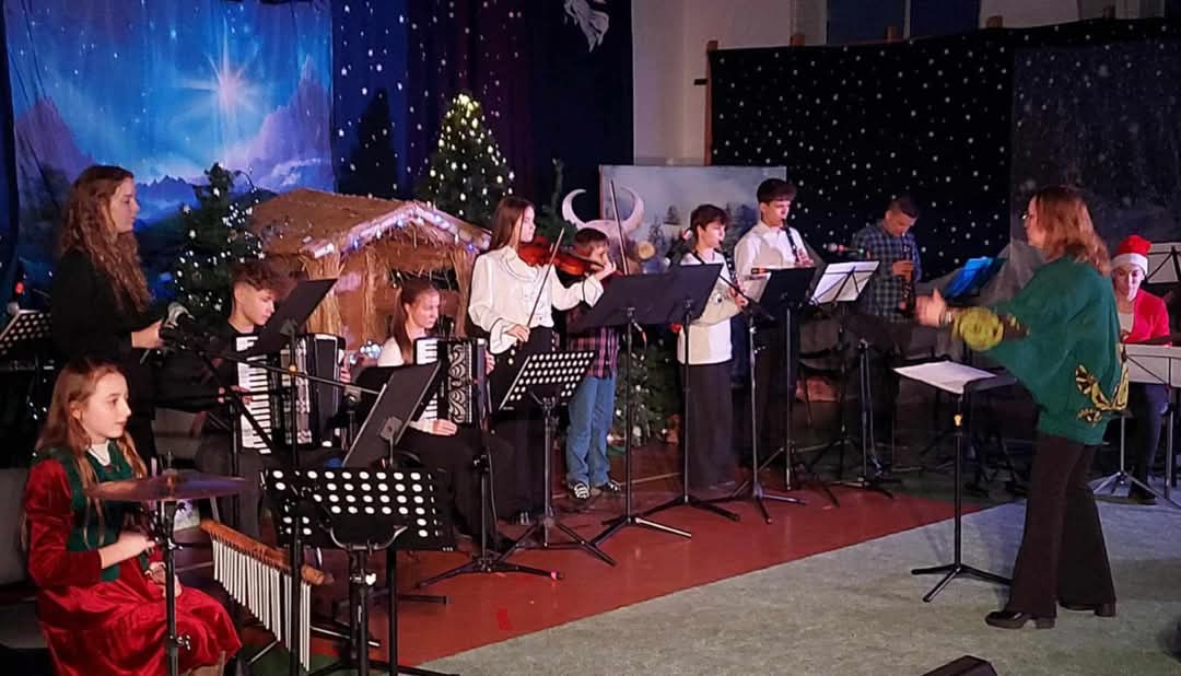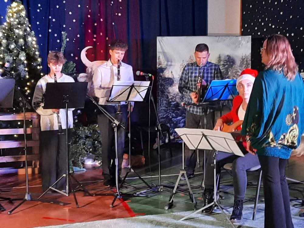 " Zespół Rodzinny"wystąpił w składzie: śpiew i instr. perkusyjne, gościnnie- Antonina Łuczaj, śpiew i pianino- gościnnie- Ksenia Gromotowicz, dzwonki- Julia Mazuruk, flet- gościnnie- Nina Oksiuta, akordeon- Dawid Markowski "Gwiazdor", skrzypce- Mikołaj Iwaniuk, skrzypce I- Ksenia Kobzar, klarnet- Maciej Klinicki i Olga Wołosik, akordeon i akordeon basowy- Maria Wołosik, pianino- p. Magdalena Włodarczyk, flet- p. Jolanta Półkoszek, gitara basowa- p. Ilona Kamieńska, trąbka- p. Marcin Iwaniuk, śpiew gościnnie-Adrianna Półkoszek, prowadzenie i aranżacje- p. Agnieszka Glińska.