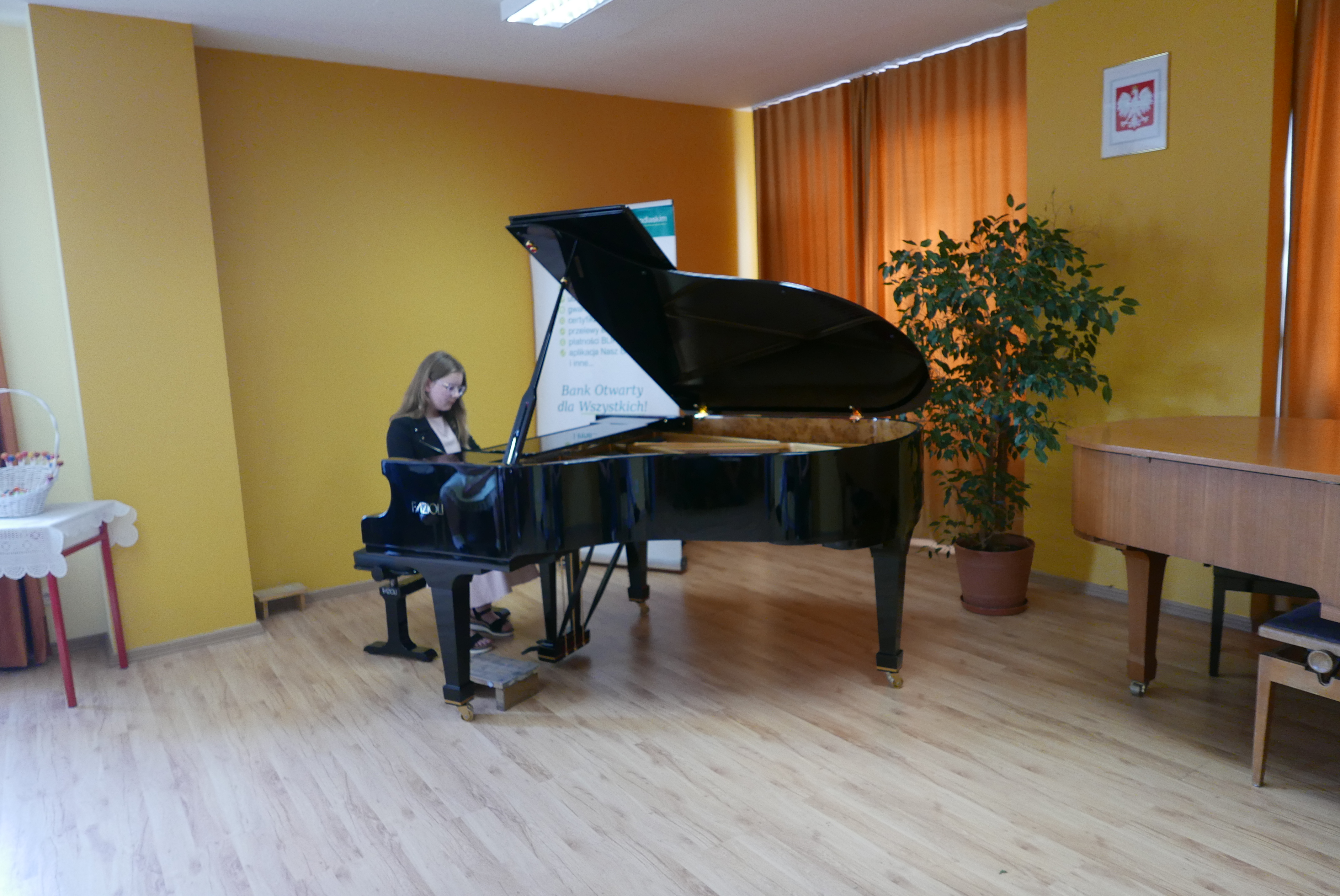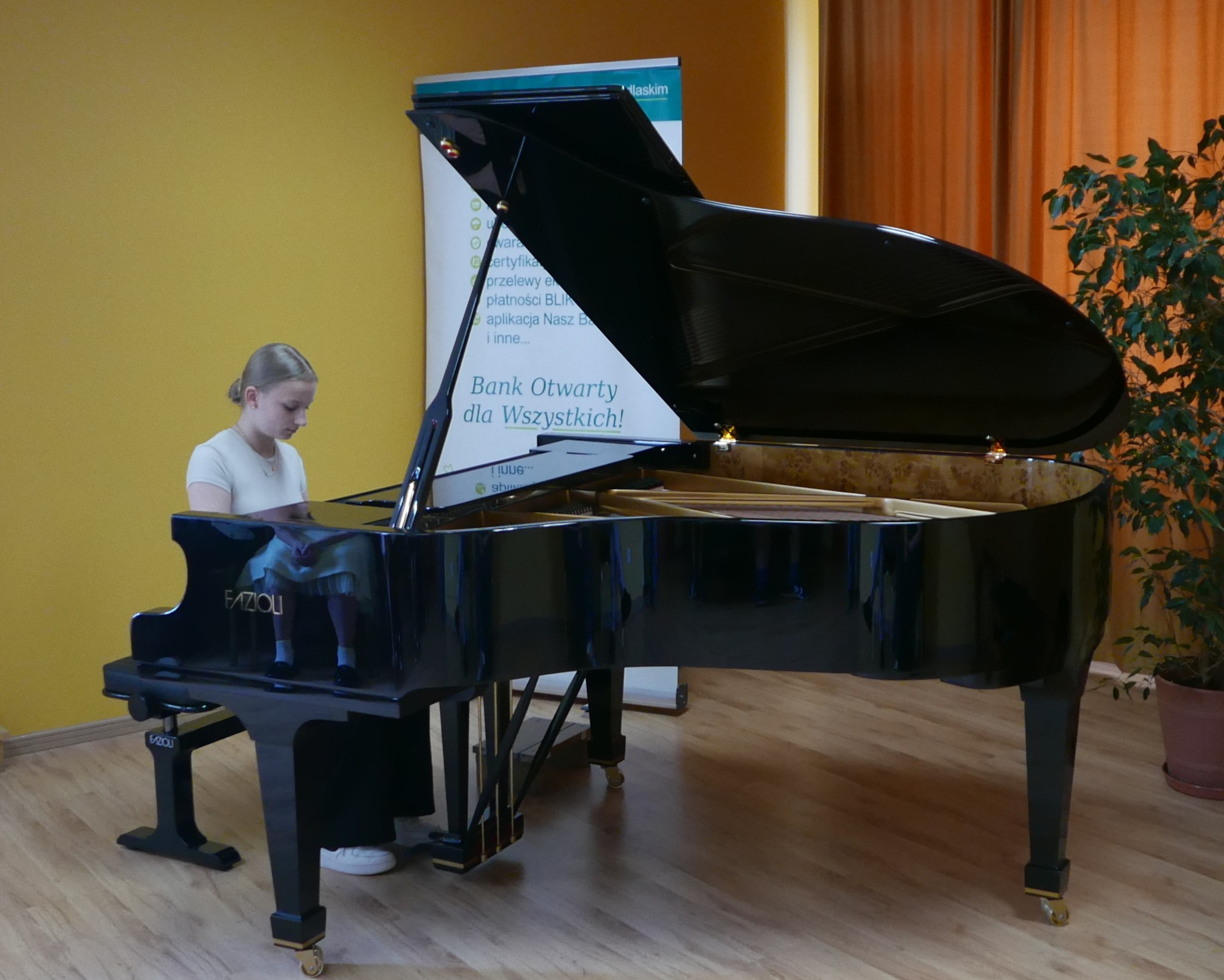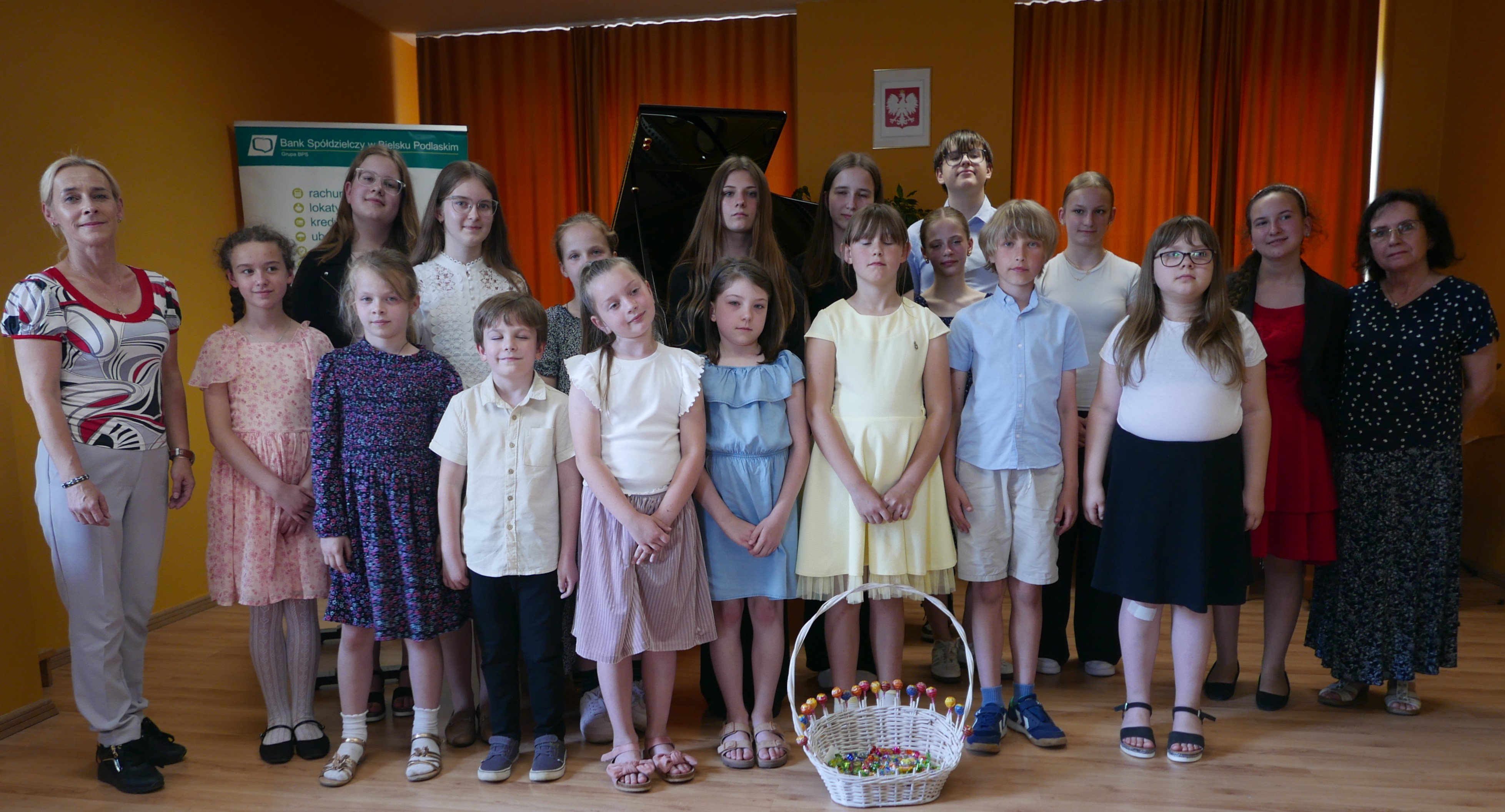 17 czerwca 2025r odbył się koncert uczniów klasy fortepianu p.Ewy Pałys-Stankiewicz oraz p.Magdaleny Włodarczyk. 17-tu młodych pianistów, przed rozpoczęciem wakacji zechciało zaprezentować się przed przed rodzicami, rodzeństwem oraz kolegami i koleżankami z naszej szkoły. Koncert był wspaniały! Publiczność nagradzała wszystkich wykonawców gromkimi brawami. P. Ewa wraz z p. Magdą przygotowały swoim uczniom słodkości. Wszyscy zasłużyli na słodkie drobiazgi.