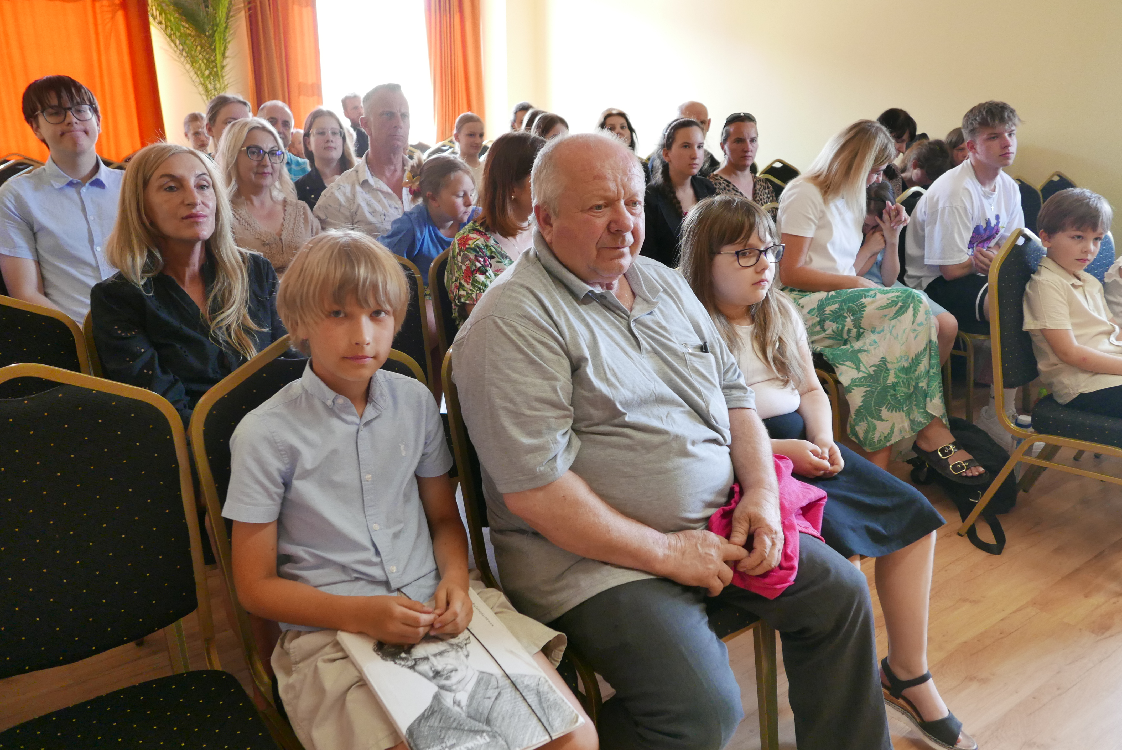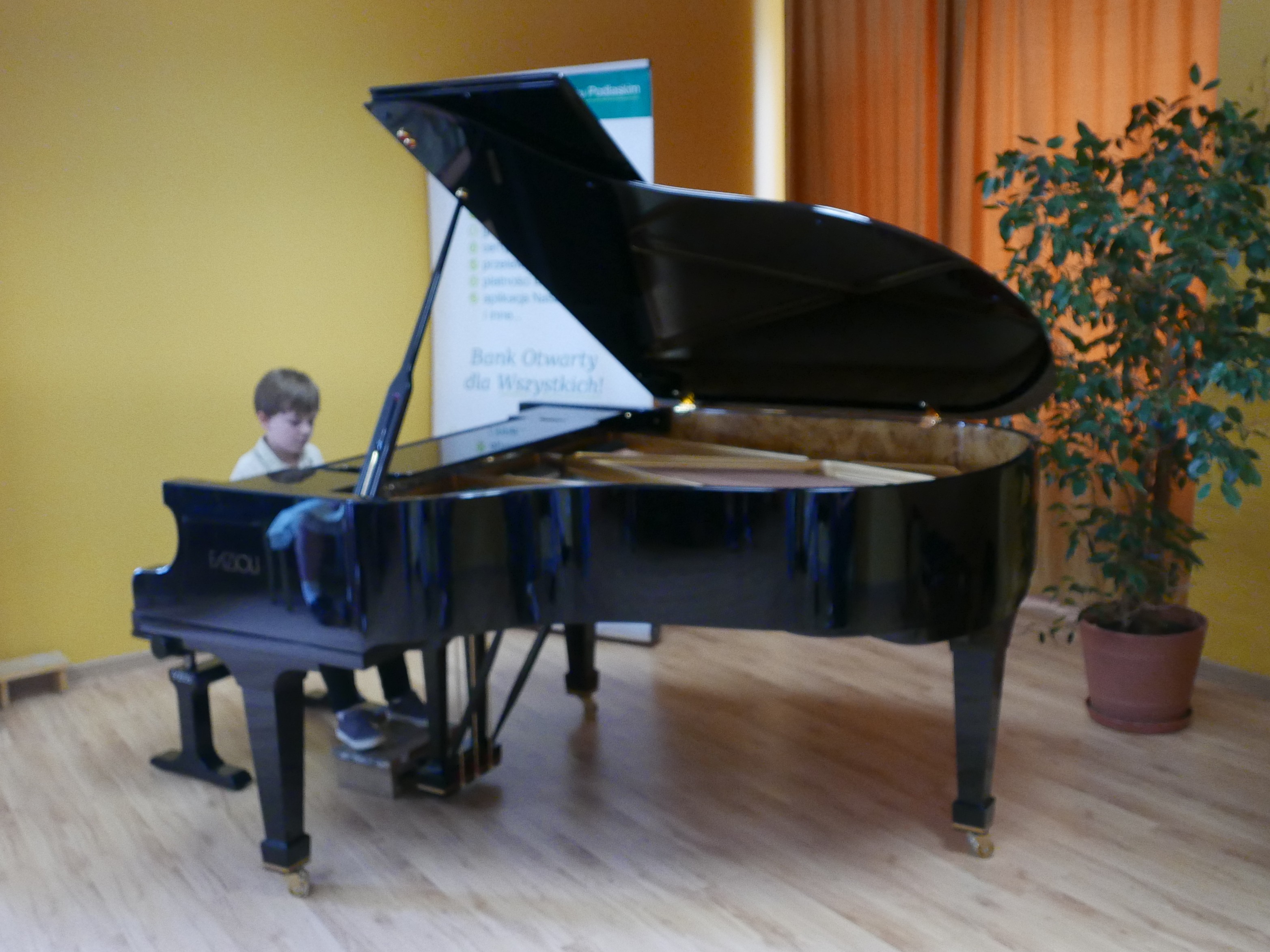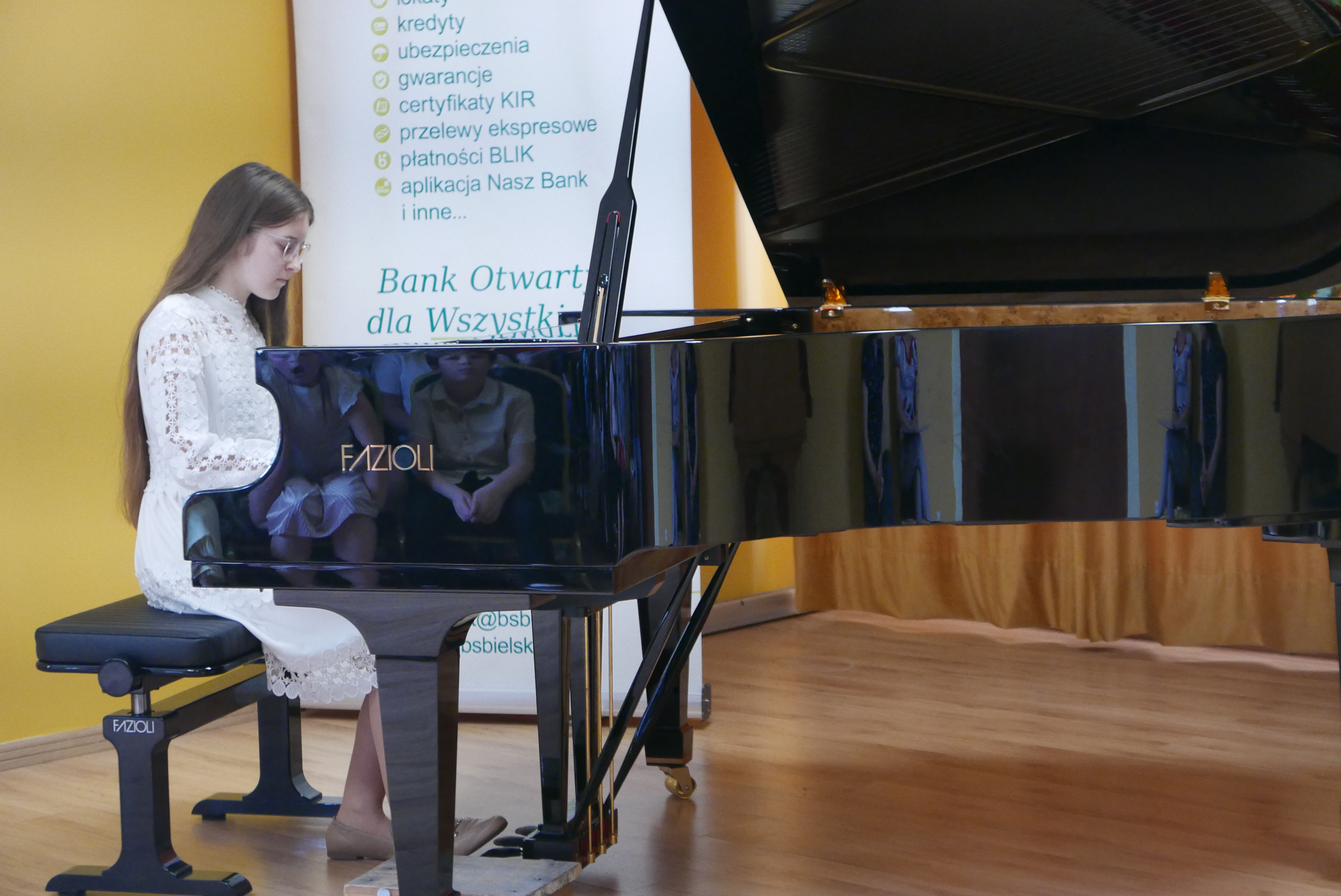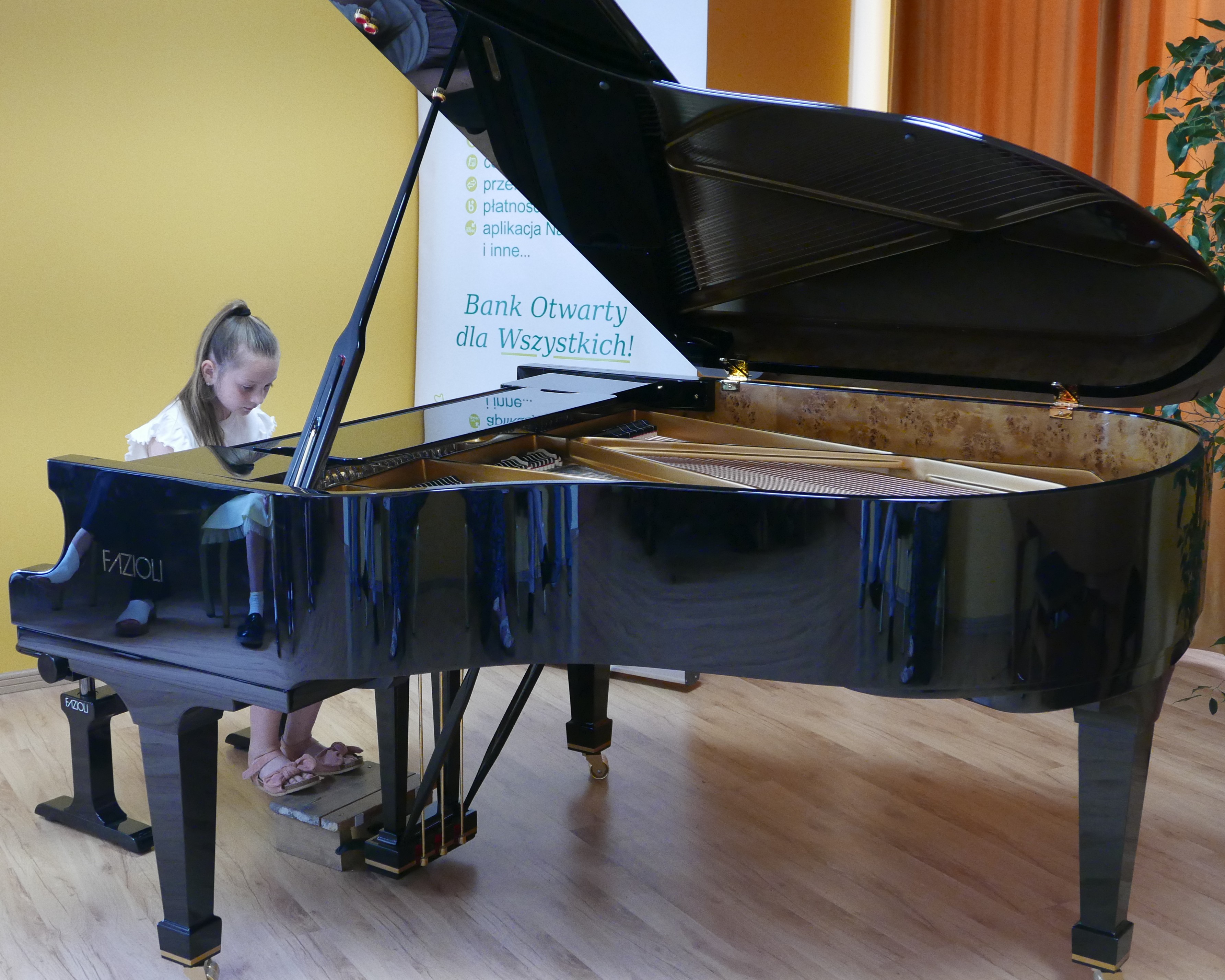 17 czerwca 2025r odbył się koncert uczniów klasy fortepianu p.Ewy Pałys-Stankiewicz oraz p.Magdaleny Włodarczyk. 17-tu młodych pianistów, przed rozpoczęciem wakacji zechciało zaprezentować się przed przed rodzicami, rodzeństwem oraz kolegami i koleżankami z naszej szkoły. Koncert był wspaniały! Publiczność nagradzała wszystkich wykonawców gromkimi brawami. P. Ewa wraz z p. Magdą przygotowały swoim uczniom słodkości. Wszyscy zasłużyli na słodkie drobiazgi.