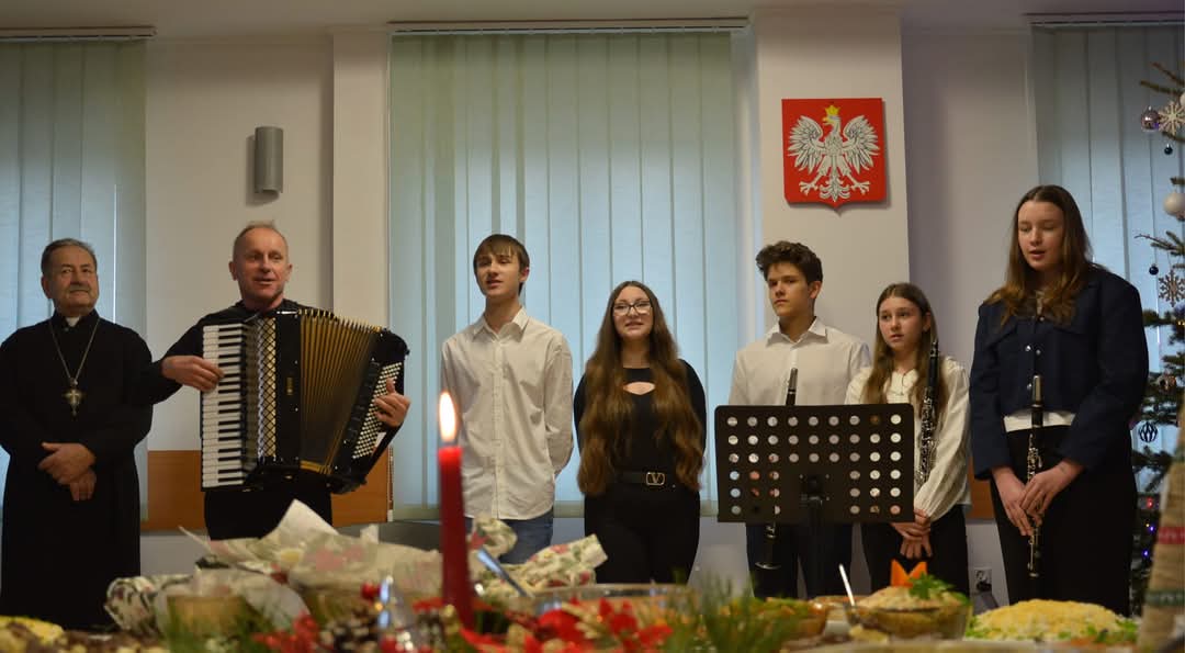 17 grudnia, uczniowie naszej szkoły uczestniczyli w spotkaniu opłatkowym Straży Granicznej w Czeremsze. Byli też przedstawiciele "Podlaskich Kukułek". Uczniowie klasy klarnetu pana Jana Mlejnka zagrali w trio trzy kolędy, na akordeonie akompaniował im p.Wiesław Doliński. Również "Kukułki,, zaśpiewały kilka kolęd i pastorałek. Występ spotkał się z ciepłym przyjęciem, a pracownicy straży granicznej z przyjemnością wspólnie śpiewali prezentowane kolędy. Komendant placówki wręczył młodym artystom drobne upominki , życząc wszystkim Wesołych Świąt i sukcesów na trudnej, ale jakże pięknej drodze rozwoju artystycznego, za co pięknie dziękujemy.