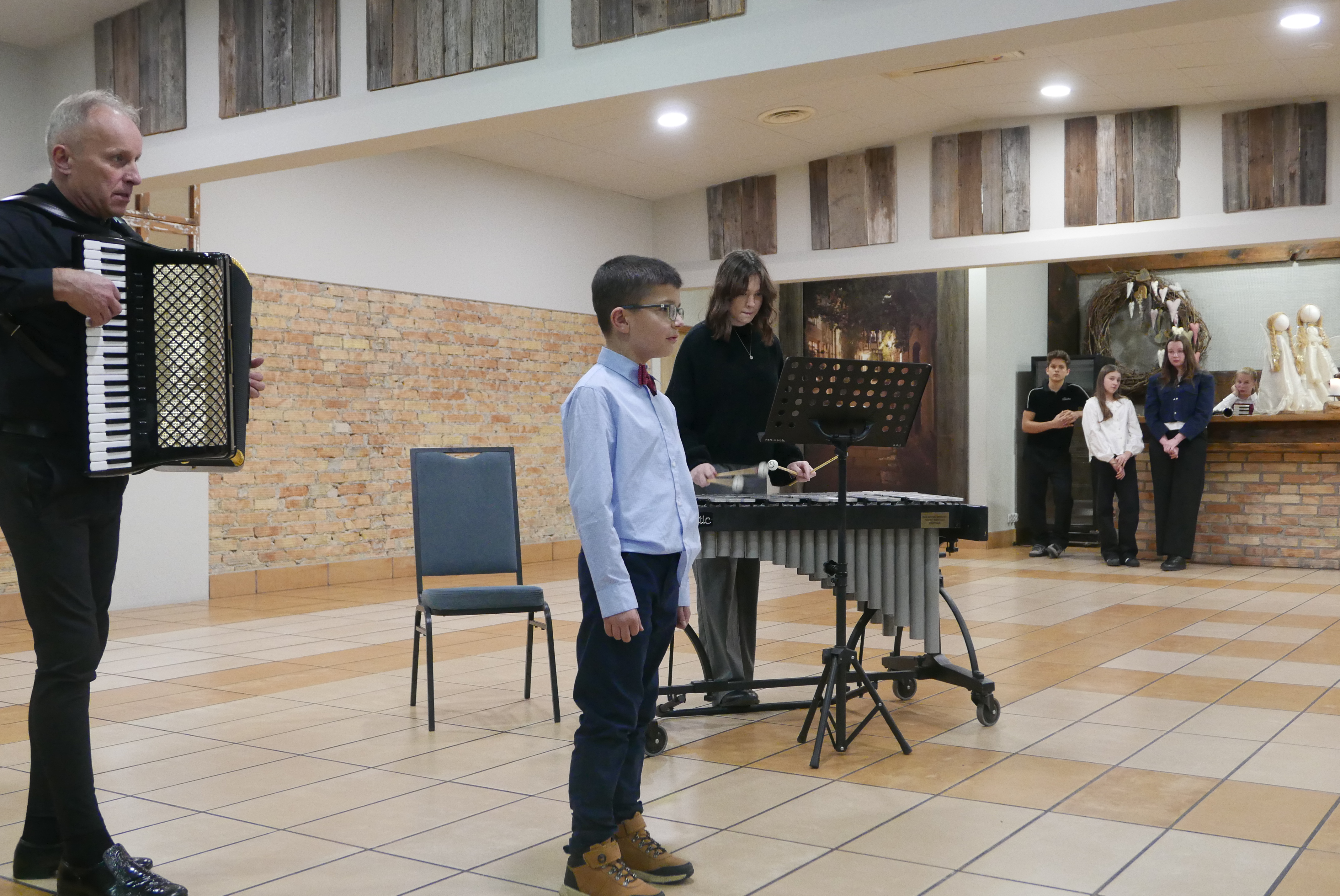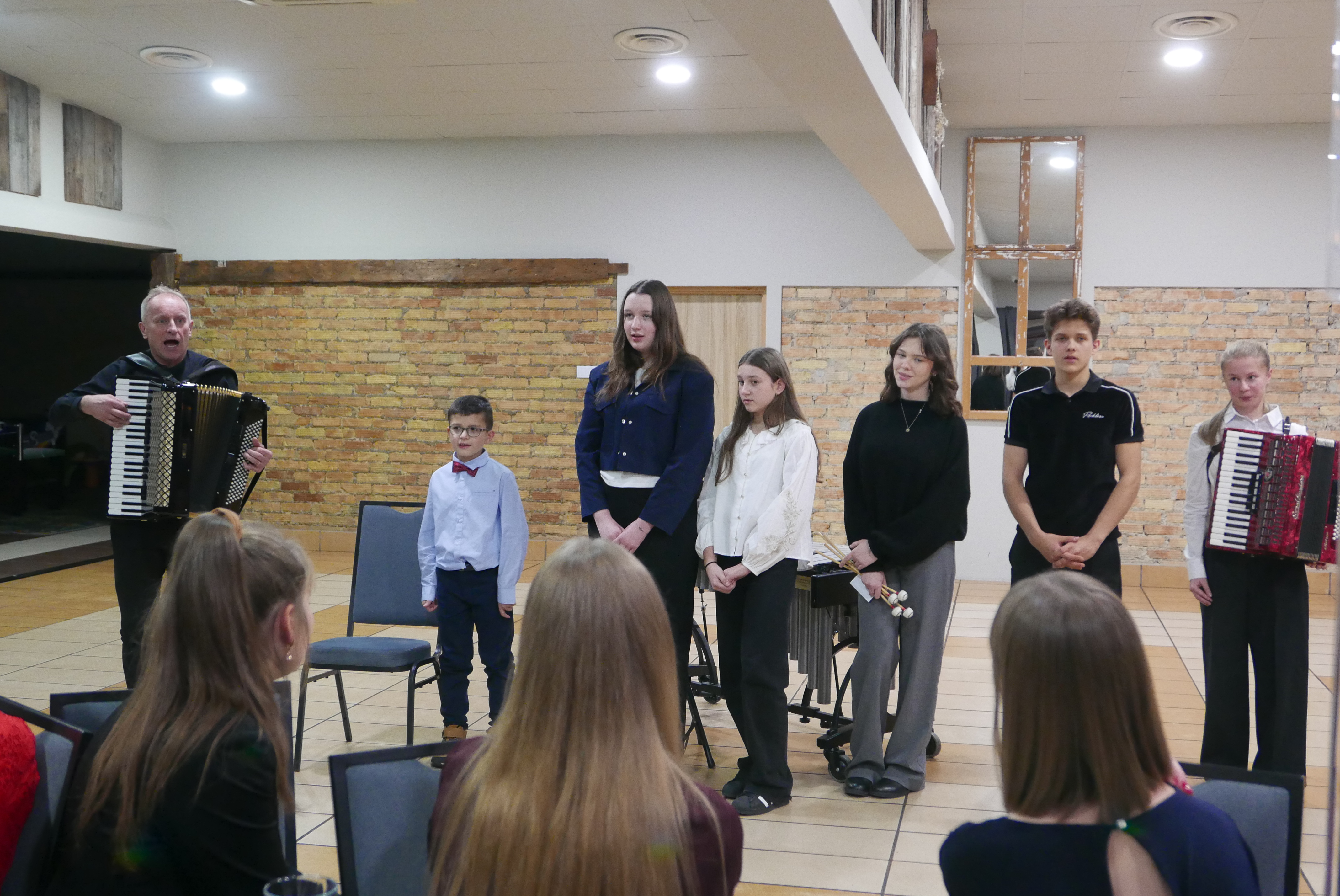 W koncercie udział wzięli: p. Wiesław Doliński-akordeon, Borys Wasiluk-śpiew, Ksenia Zinkiewicz-wibrafon, Maria Wołosik-akordeon, Zofia Gierasimiuk, Martyna Wojdakowska i Maciej Klinicki - klarnet.