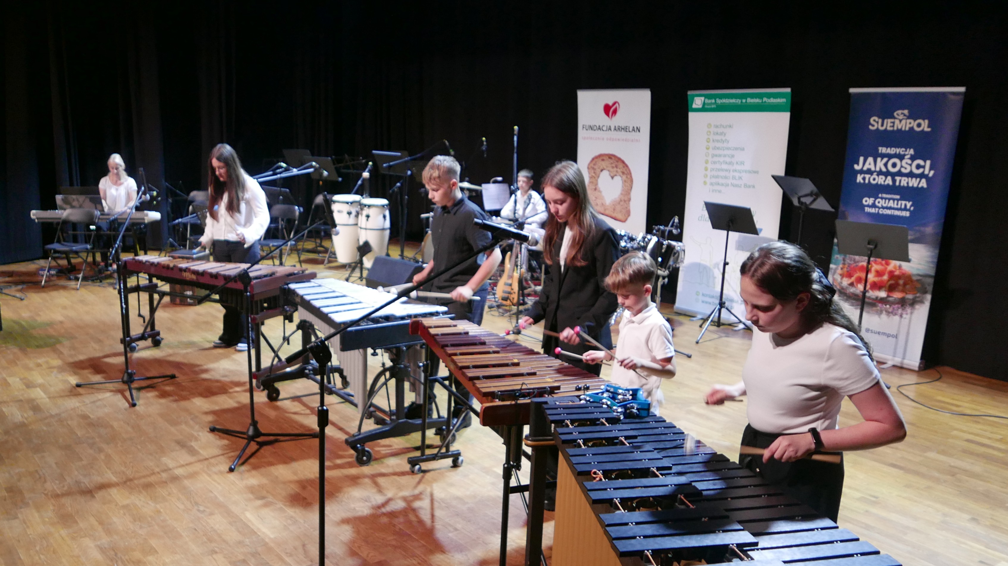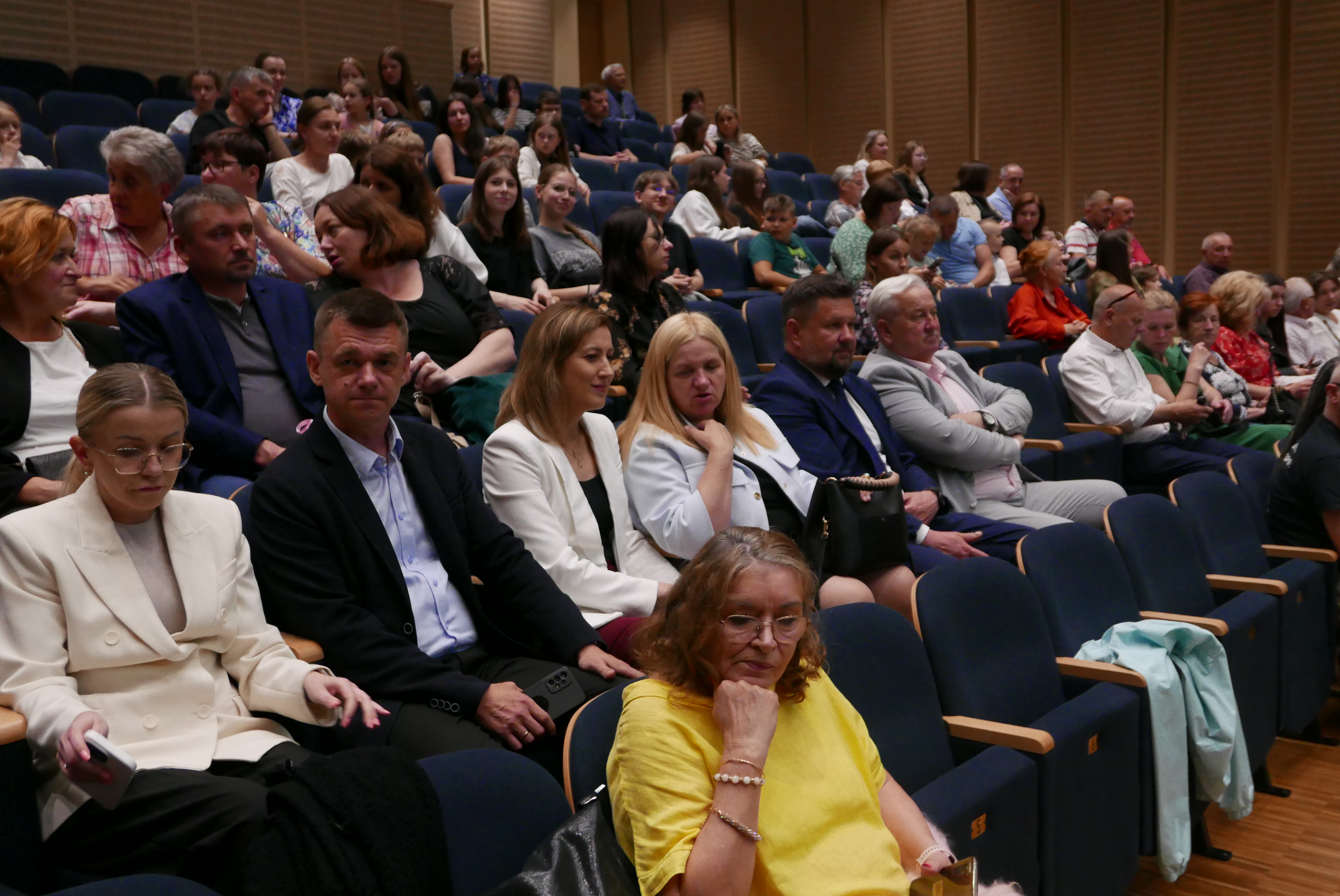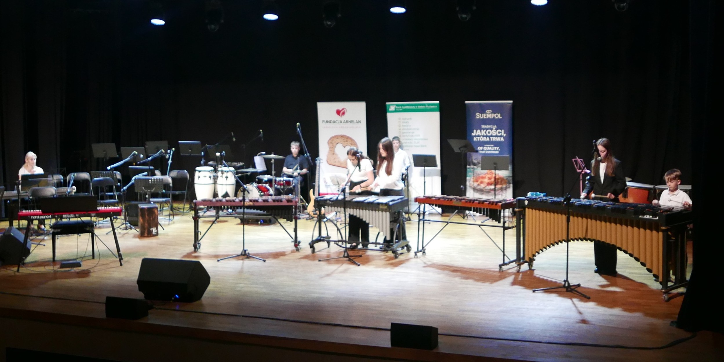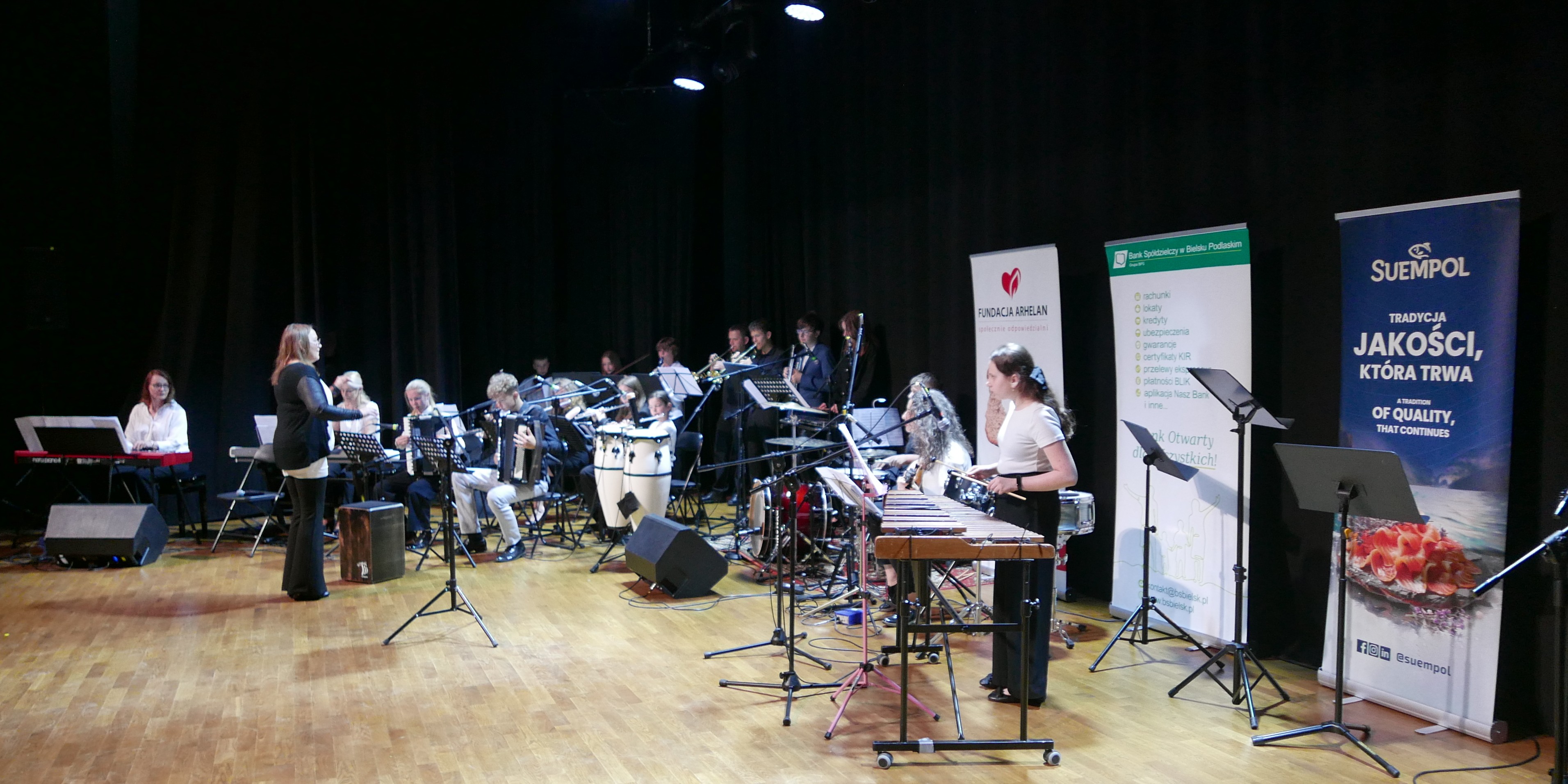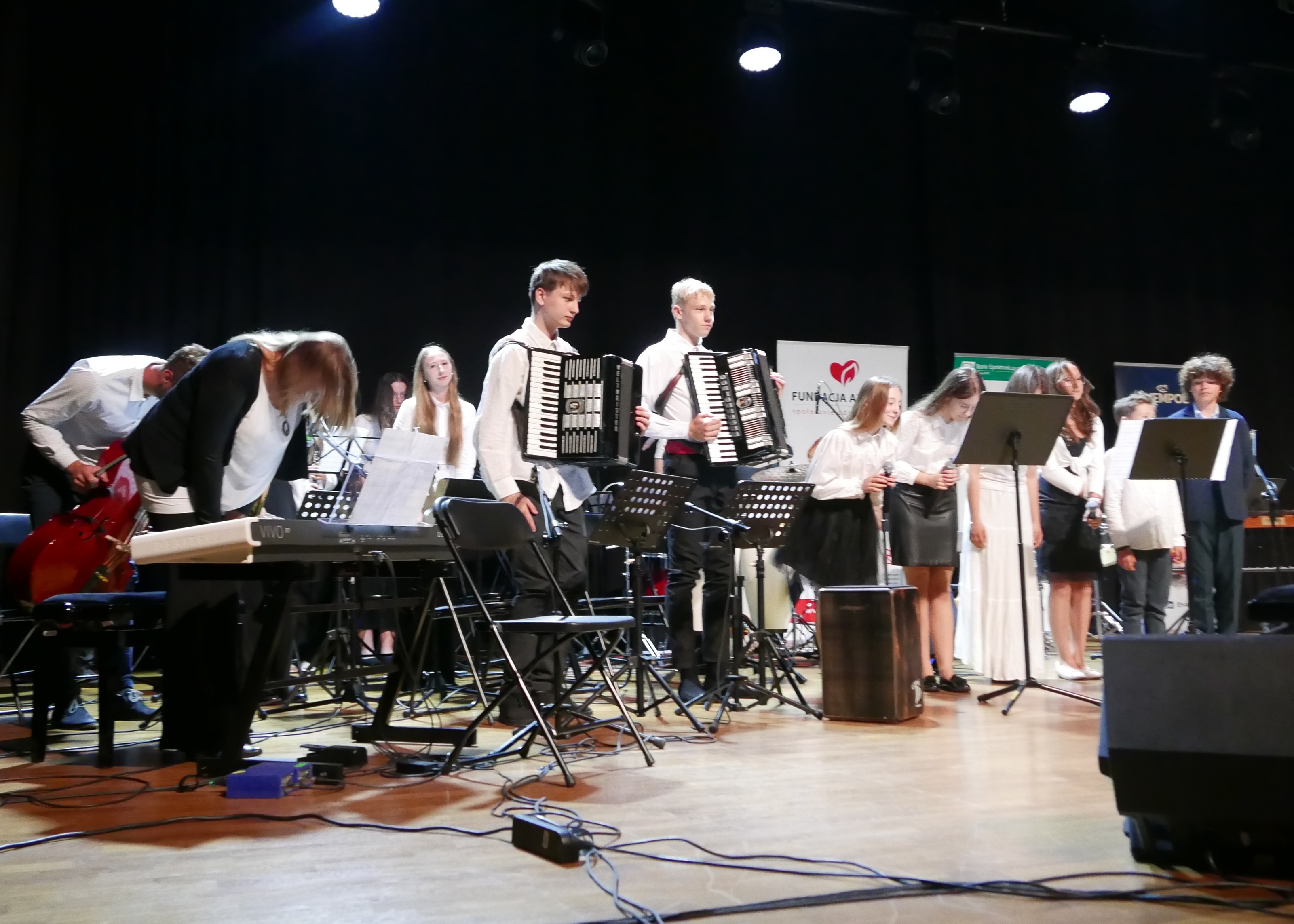 KONCERT DOROCZNY w ramach 43 Dni Miasta Bielska Podlaskiego, to doniosłe wydarzenie w kończącym się roku szkolnym. Uczestnictwo w koncercie to wielki zaszczyt i nobilitacja dla uczniów jak i pedagogów, zawsze grają ci którzy doskonale opanowali swój warsztat muzyczny. Nie inaczej było i w tym roku. Koncert otworzyła Pani Dyrektor Edyta Lebieżyńska, której towarzyszył Przewodniczący Rady Rodziców Pan Piotr Daniło. Powitano Burmistrza Miasta Pana Piotra Wawulskiego, Panią Wice Burmistrz Iwonę Kołos, Wójta Gminy Bielsk Pana Walentego Koryckiego, przedstawicieli Starostwa Bielskiego, Panią Agatę Michałowską-Dyrektor Departamętu Kultury Urzędu Marszałkowskiego, Prezesa Banku Spółdzielczego w Bielsku Podlaskim Pana Piotra Bobla, właściciela firmy „Arhelan” Pana Mirosława Burzyńskiego, przedstawicieli firmy „Suempol” oraz wielu innych zaproszonych gości i wspaniałą publiczność. Pani Dyrektor podziękowała naszemu sponsorowi strategicznemu Bankowi Spółdzielczemu za pomoc w realizacji przedsięwzięć szkolnych. Słowa podziękowania skierowane zostały do firmy „Arhelan” za pomoc przy oprawie koncertów i ognisk szkolnych. Szczególne podziękowania popłynęły do firmy „Suempol”, która przyczyniła się do zakupu ławy fortepianowej „Fazioli”. Następnie rozpoczął się koncert brawurowo poprowadzony przez trójkę konferansjerów w osobach Julii Daniło, Mikołaja Kosińskiego i Maksymiliana Kosińskiego. Część pierwszą rozpoczął Ludowy Zespół Pieśni i Tańca „Podlaskie Kukułki” w którym grają nauczyciele z naszej szkoły, następnie grali soliści, kwartety instrumentalne- fletowy i klarnetowy, zespół perkusyjny. W czasie przygotowań do drugiej części koncertu, nauczyciel naszej szkoły Pan Ireneusz Ławreszuk odczytał długą listę sukcesów odniesionych przez uczniów Państwowej Szkoły Muzycznej I stopnia w Bielsku Podlaskim. Były to konkursy instrumentalne: perkusyjne, fortepianowe, fletowe, trąbki, klarnetowe -na których uczniowie szkoły zajęli wysokie lokaty. Pan Ławreszuk poinformował o wymienione wszystkich pianin i fortepianów, a to dzięki staraniom naszej Pani Dyrektor która pozyskała na ten cel środki z Ministerstwa Kultury i Dziedzictwa Narodowego. Szczególnie dumni jesteśmy z zakupu fortepianu klasy mistrzowskiej Firmy „Fazioli”. Zakupiono wibrafon renomowanej firmy „Adams”, dużą tablicę multimedialną, instrumenty perkusyjne, skrzypce, flety i wiele innych potrzebnych akcesoriów muzycznych. Następnie były podziękowania dla wszystkich sponsorów i współpracujących z naszą szkołą jak: firmia Unibus z Bielska Podlaskiego, Nadleśnictwo Bielsk Podlaski, Bank Spółdzielczy z Brańska, Firma Kandel z Brańska, Spółdzielnia Mieszkaniowej z Bielska Podlaskiego, Zarząd Dróg z Bielska Podlaskiego, parafie rzymsko katolickim i prawosławne z miasta Bielska, przedszkola, szkoły podstawowym i średnie. W tym czasie na ekranie wyświetlane były zdjęcia z koncertów szkolnych z ostatniego roku które mieliśmy na terenie miasta i województwa( sporo ich było), dyplomy uczestników konkursów i przeglądów instrumentalnych. Drugą część Koncertu Dorocznego rozpoczął występ zespołu instrumentalnego Ad Libitum, a po nim kończący koncert Zespół Rodzinny. Na koniec była wspólna fotografia wszystkich wykonawców ze wspaniałą publicznością.