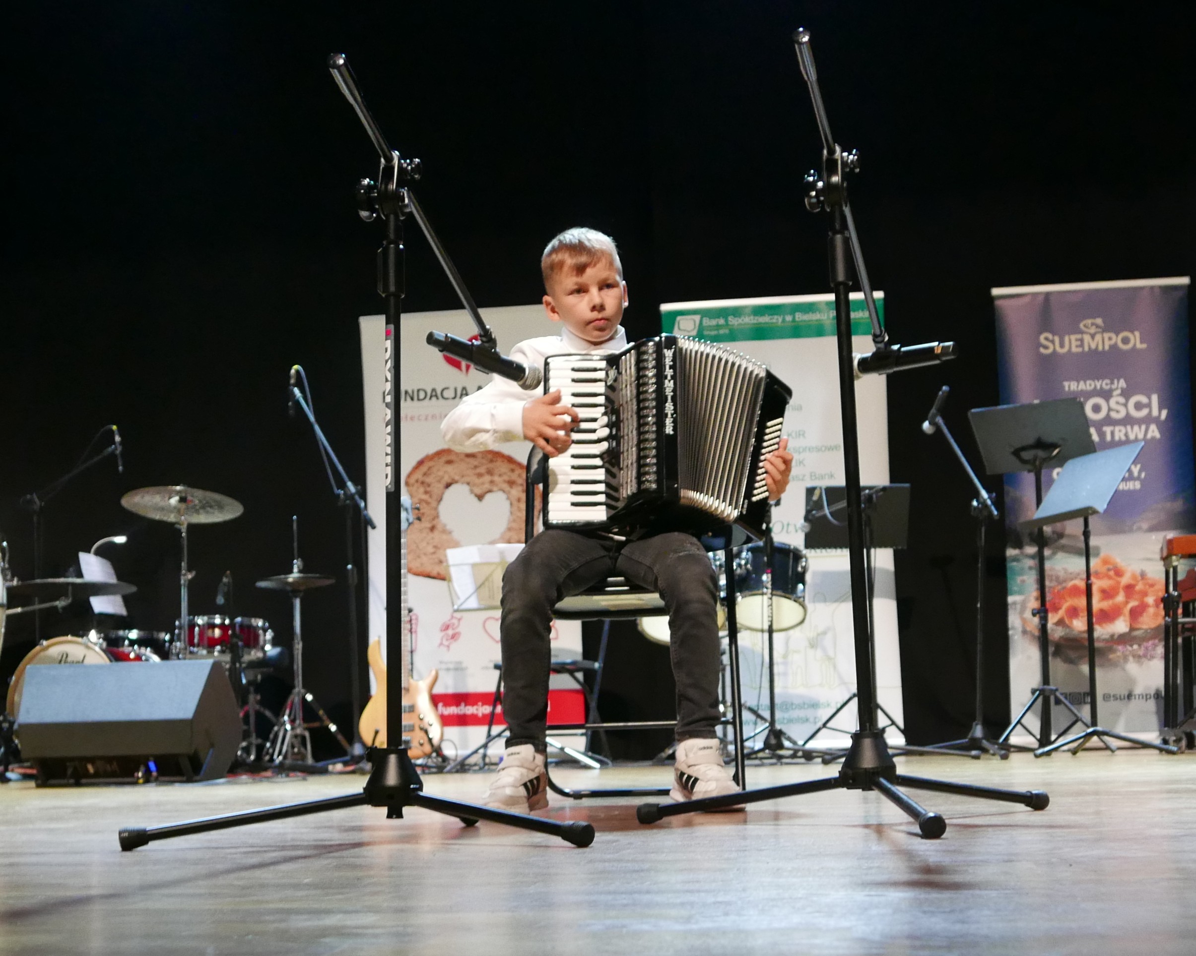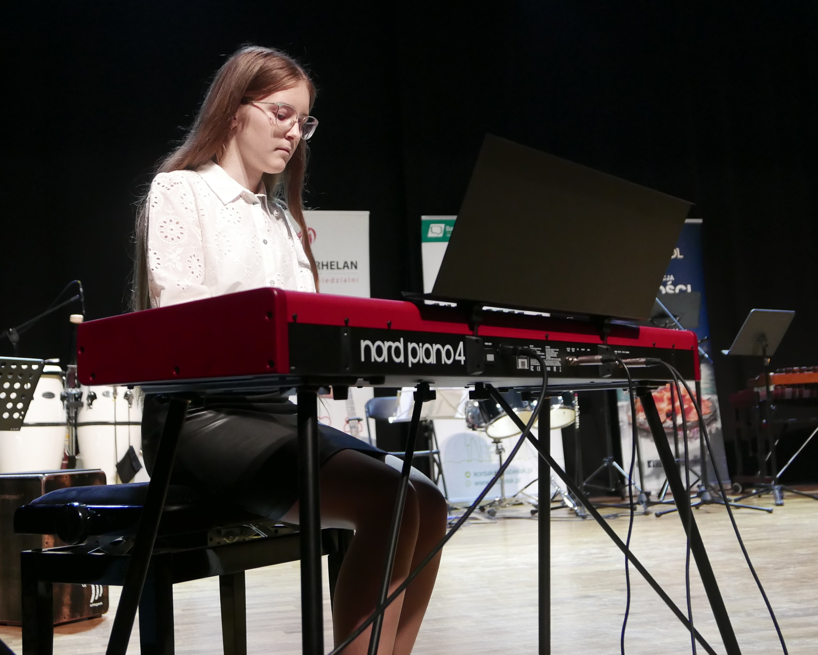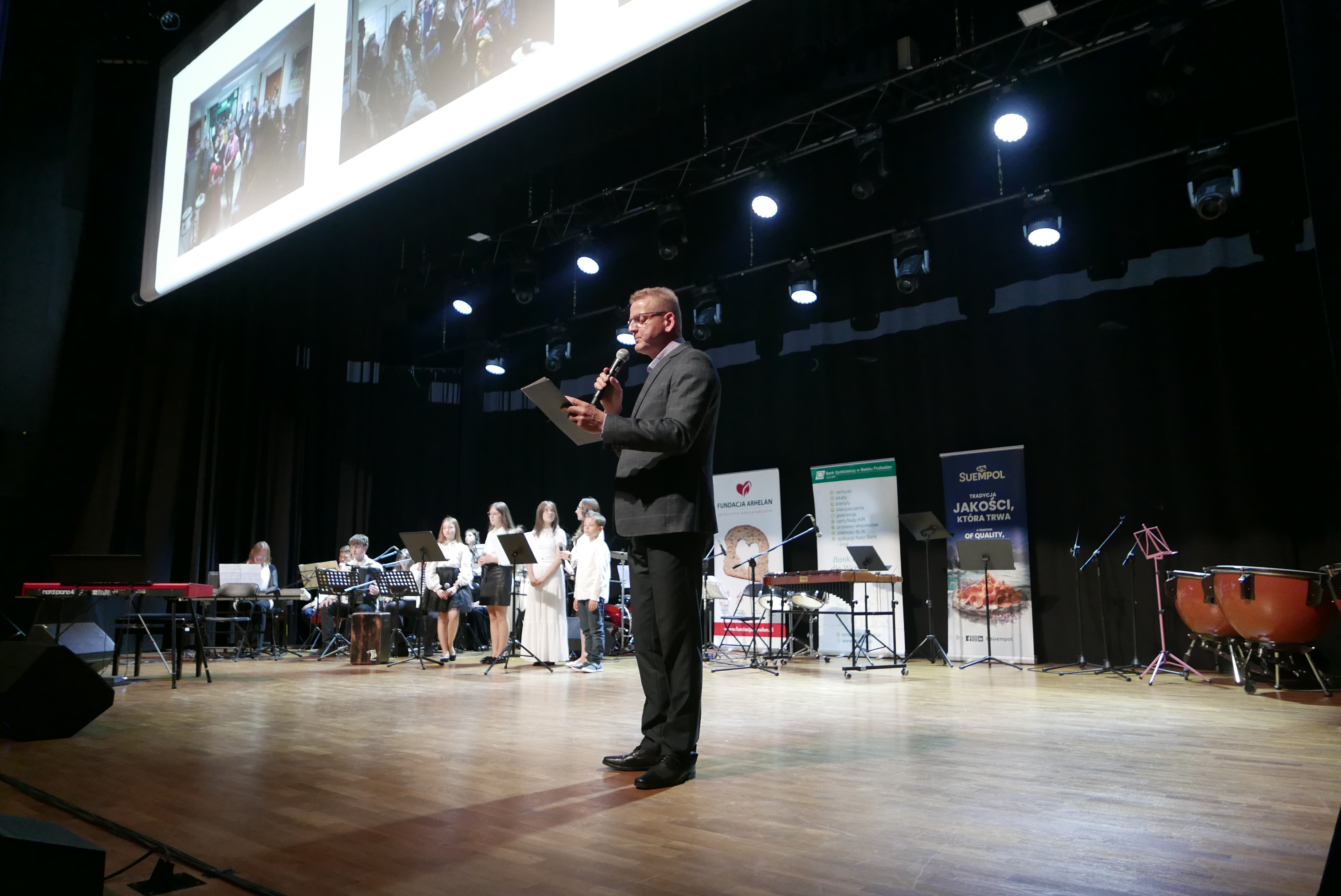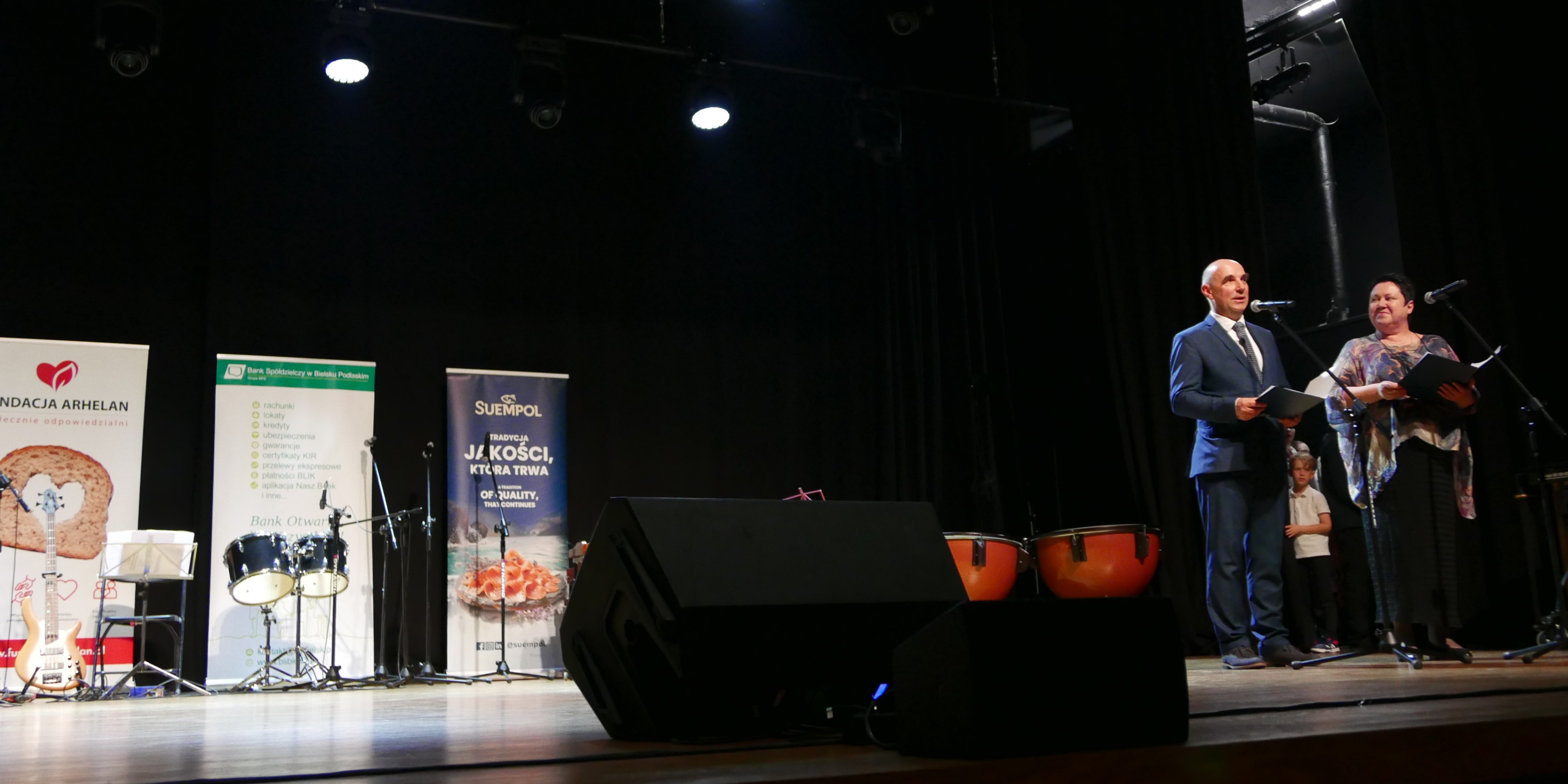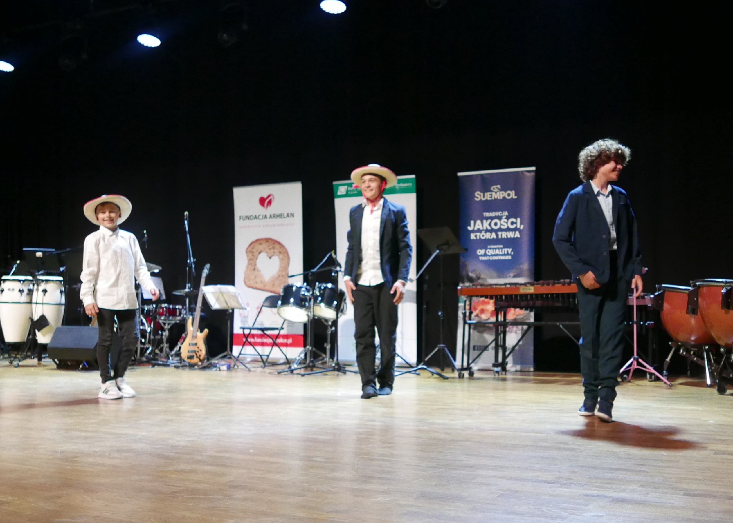 KONCERT DOROCZNY w ramach 43 Dni Miasta Bielska Podlaskiego, to doniosłe wydarzenie w kończącym się roku szkolnym. Uczestnictwo w koncercie to wielki zaszczyt i nobilitacja dla uczniów jak i pedagogów, zawsze grają ci którzy doskonale opanowali swój warsztat muzyczny. Nie inaczej było i w tym roku. Koncert otworzyła Pani Dyrektor Edyta Lebieżyńska, której towarzyszył Przewodniczący Rady Rodziców Pan Piotr Daniło. Powitano Burmistrza Miasta Pana Piotra Wawulskiego, Panią Wice Burmistrz Iwonę Kołos, Wójta Gminy Bielsk Pana Walentego Koryckiego, przedstawicieli Starostwa Bielskiego, Panią Agatę Michałowską-Dyrektor Departamętu Kultury Urzędu Marszałkowskiego, Prezesa Banku Spółdzielczego w Bielsku Podlaskim Pana Piotra Bobla, właściciela firmy „Arhelan” Pana Mirosława Burzyńskiego, przedstawicieli firmy „Suempol” oraz wielu innych zaproszonych gości i wspaniałą publiczność. Pani Dyrektor podziękowała naszemu sponsorowi strategicznemu Bankowi Spółdzielczemu za pomoc w realizacji przedsięwzięć szkolnych. Słowa podziękowania skierowane zostały do firmy „Arhelan” za pomoc przy oprawie koncertów i ognisk szkolnych. Szczególne podziękowania popłynęły do firmy „Suempol”, która przyczyniła się do zakupu ławy fortepianowej „Fazioli”. Następnie rozpoczął się koncert brawurowo poprowadzony przez trójkę konferansjerów w osobach Julii Daniło, Mikołaja Kosińskiego i Maksymiliana Kosińskiego. Część pierwszą rozpoczął Ludowy Zespół Pieśni i Tańca „Podlaskie Kukułki” w którym grają nauczyciele z naszej szkoły, następnie grali soliści, kwartety instrumentalne- fletowy i klarnetowy, zespół perkusyjny. W czasie przygotowań do drugiej części koncertu, nauczyciel naszej szkoły Pan Ireneusz Ławreszuk odczytał długą listę sukcesów odniesionych przez uczniów Państwowej Szkoły Muzycznej I stopnia w Bielsku Podlaskim. Były to konkursy instrumentalne: perkusyjne, fortepianowe, fletowe, trąbki, klarnetowe -na których uczniowie szkoły zajęli wysokie lokaty. Pan Ławreszuk poinformował o wymienione wszystkich pianin i fortepianów, a to dzięki staraniom naszej Pani Dyrektor która pozyskała na ten cel środki z Ministerstwa Kultury i Dziedzictwa Narodowego. Szczególnie dumni jesteśmy z zakupu fortepianu klasy mistrzowskiej Firmy „Fazioli”. Zakupiono wibrafon renomowanej firmy „Adams”, dużą tablicę multimedialną, instrumenty perkusyjne, skrzypce, flety i wiele innych potrzebnych akcesoriów muzycznych. Następnie były podziękowania dla wszystkich sponsorów i współpracujących z naszą szkołą jak: firmia Unibus z Bielska Podlaskiego, Nadleśnictwo Bielsk Podlaski, Bank Spółdzielczy z Brańska, Firma Kandel z Brańska, Spółdzielnia Mieszkaniowej z Bielska Podlaskiego, Zarząd Dróg z Bielska Podlaskiego, parafie rzymsko katolickim i prawosławne z miasta Bielska, przedszkola, szkoły podstawowym i średnie. W tym czasie na ekranie wyświetlane były zdjęcia z koncertów szkolnych z ostatniego roku które mieliśmy na terenie miasta i województwa( sporo ich było), dyplomy uczestników konkursów i przeglądów instrumentalnych. Drugą część Koncertu Dorocznego rozpoczął występ zespołu instrumentalnego Ad Libitum, a po nim kończący koncert Zespół Rodzinny. Na koniec była wspólna fotografia wszystkich wykonawców ze wspaniałą publicznością.