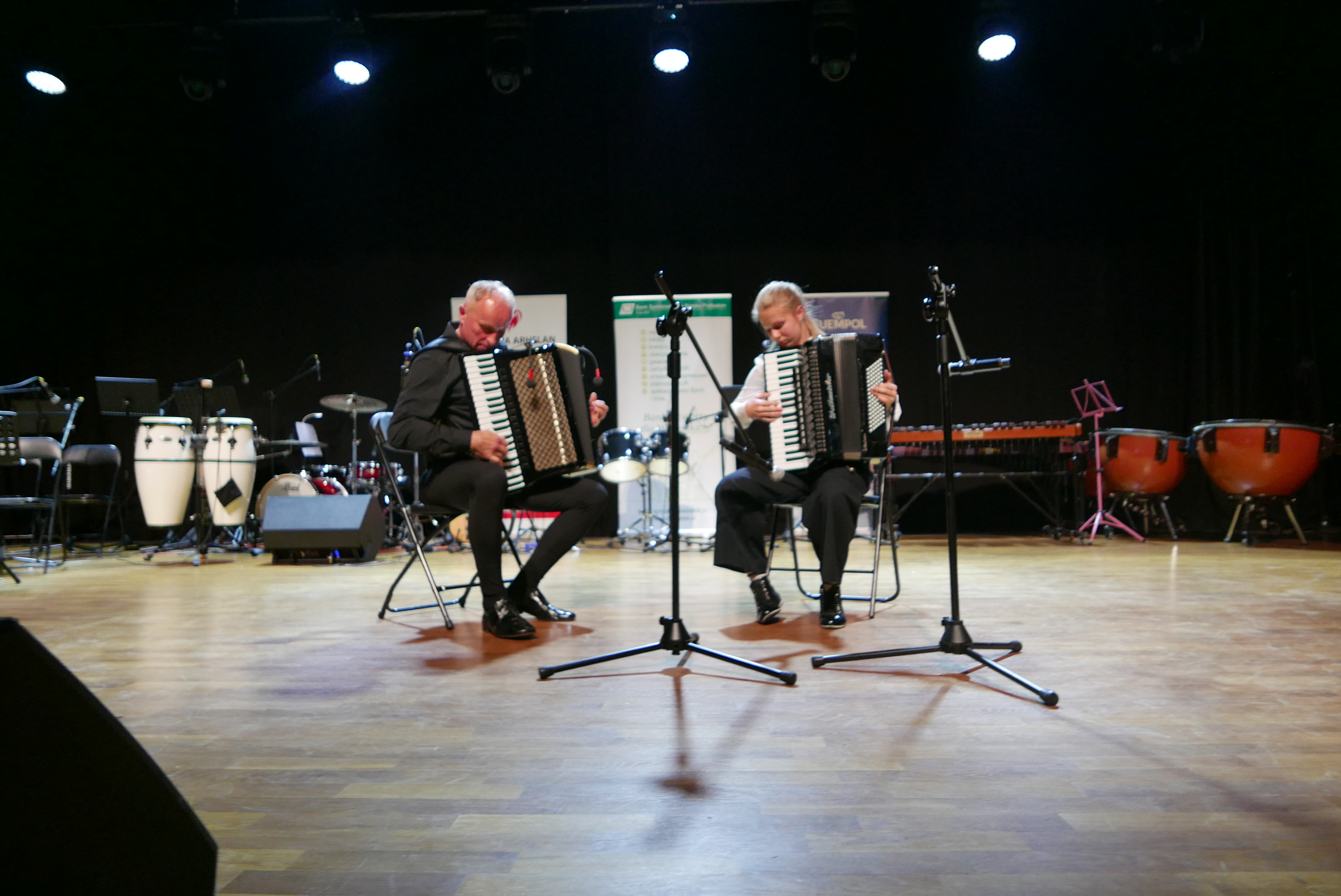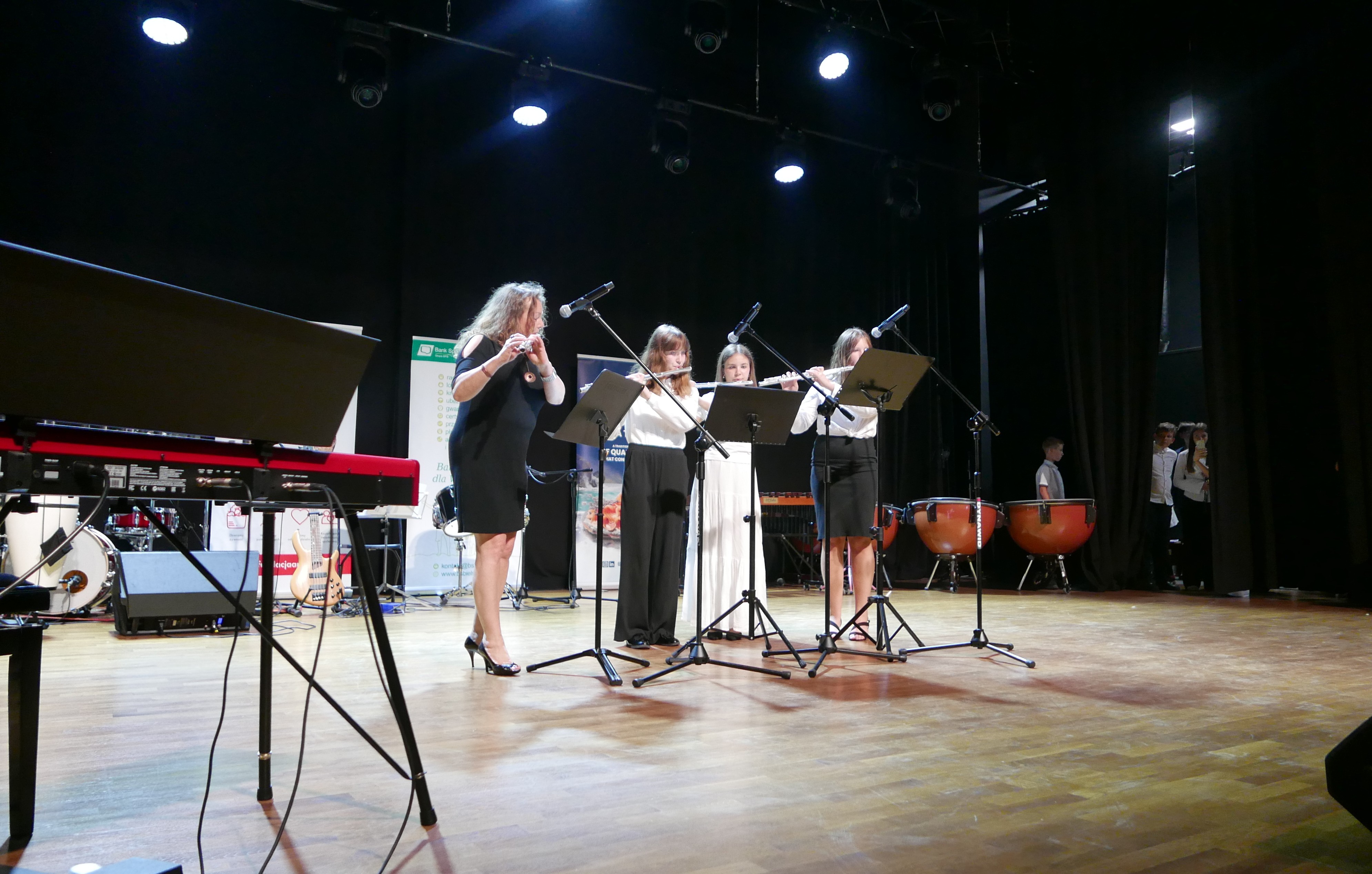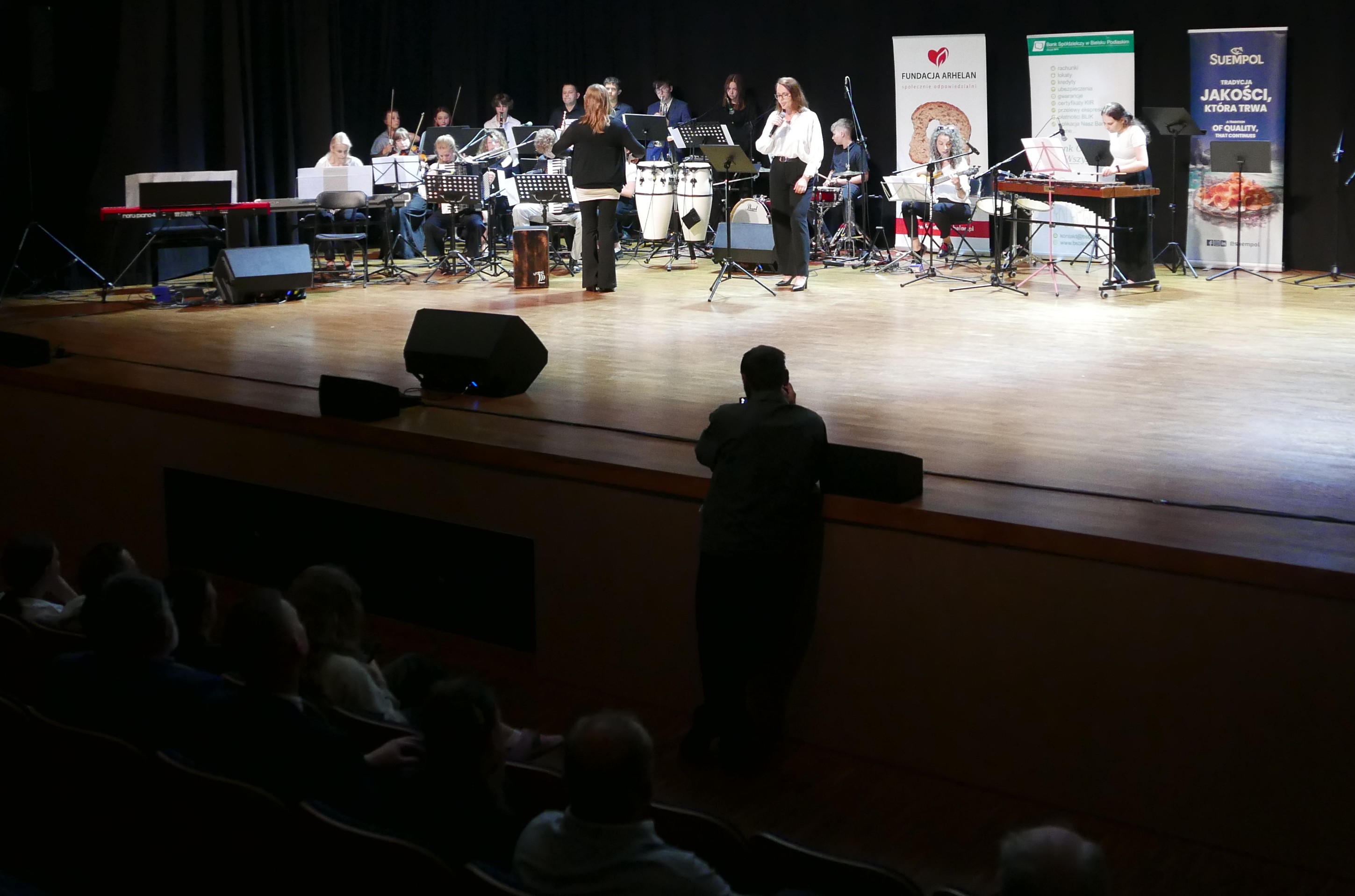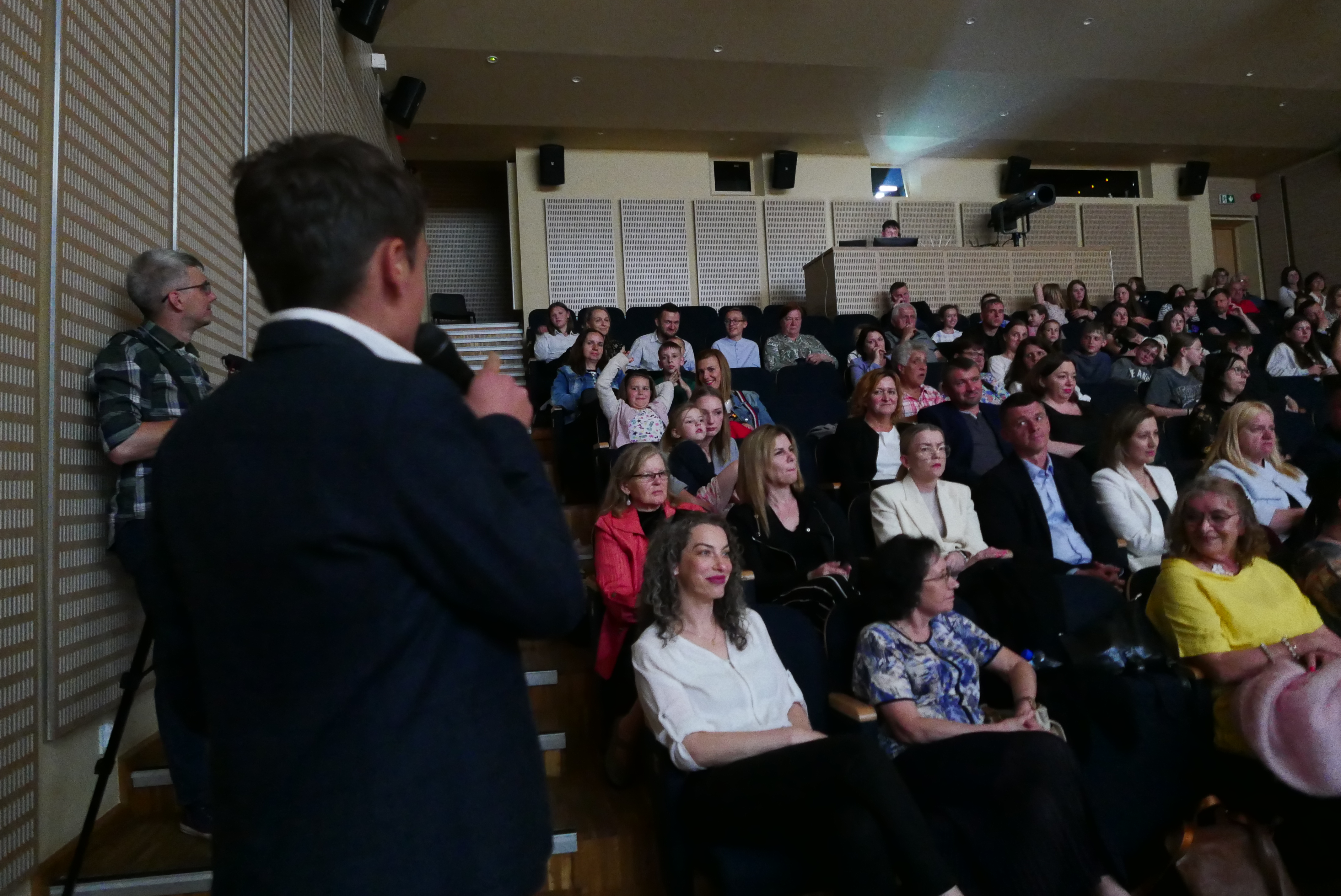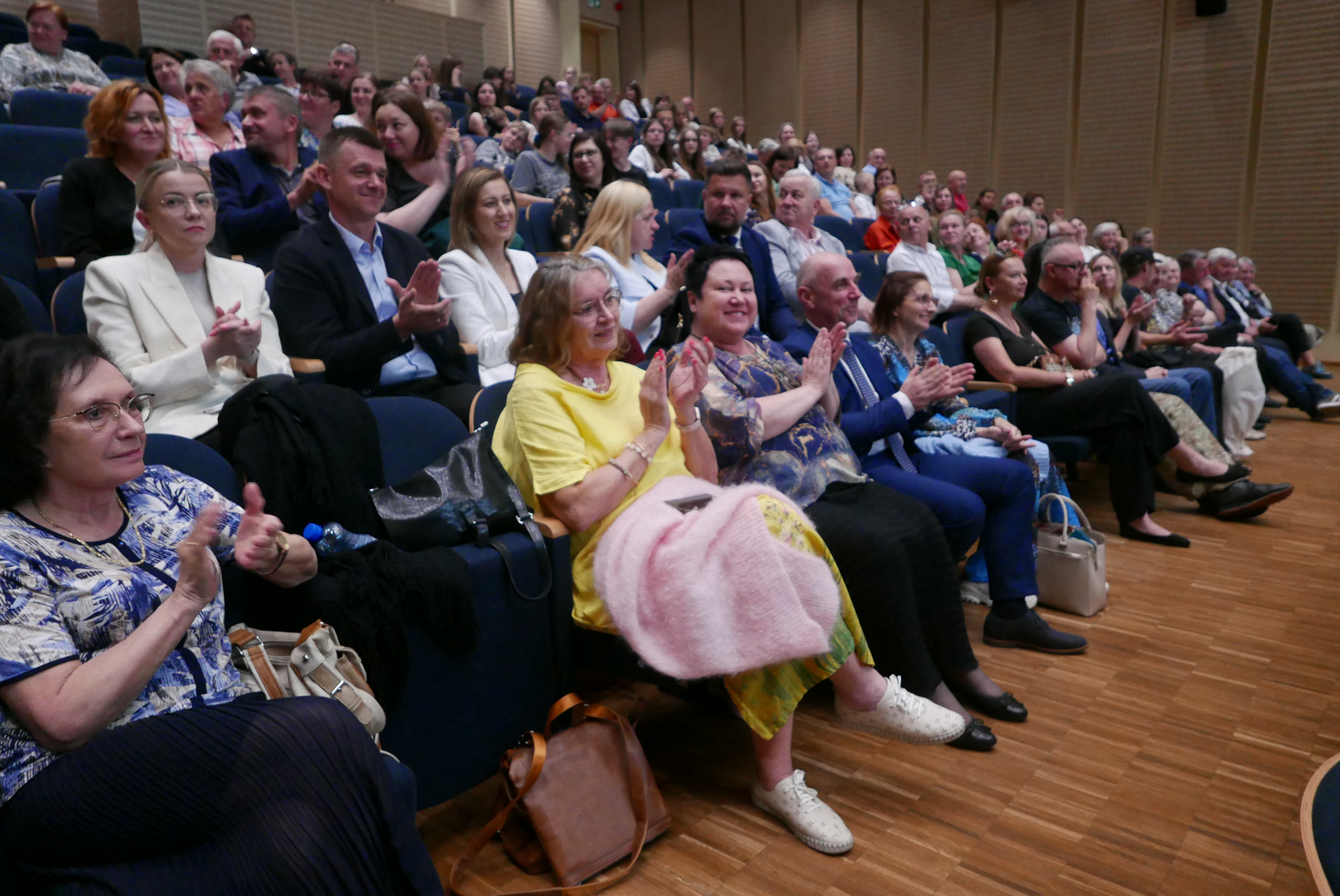 KONCERT DOROCZNY w ramach 43 Dni Miasta Bielska Podlaskiego, to doniosłe wydarzenie w kończącym się roku szkolnym. Uczestnictwo w koncercie to wielki zaszczyt i nobilitacja dla uczniów jak i pedagogów, zawsze grają ci którzy doskonale opanowali swój warsztat muzyczny. Nie inaczej było i w tym roku. Koncert otworzyła Pani Dyrektor Edyta Lebieżyńska, której towarzyszył Przewodniczący Rady Rodziców Pan Piotr Daniło. Powitano Burmistrza Miasta Pana Piotra Wawulskiego, Panią Wice Burmistrz Iwonę Kołos, Wójta Gminy Bielsk Pana Walentego Koryckiego, przedstawicieli Starostwa Bielskiego, Panią Agatę Michałowską-Dyrektor Departamętu Kultury Urzędu Marszałkowskiego, Prezesa Banku Spółdzielczego w Bielsku Podlaskim Pana Piotra Bobla, właściciela firmy „Arhelan” Pana Mirosława Burzyńskiego, przedstawicieli firmy „Suempol” oraz wielu innych zaproszonych gości i wspaniałą publiczność. Pani Dyrektor podziękowała naszemu sponsorowi strategicznemu Bankowi Spółdzielczemu za pomoc w realizacji przedsięwzięć szkolnych. Słowa podziękowania skierowane zostały do firmy „Arhelan” za pomoc przy oprawie koncertów i ognisk szkolnych. Szczególne podziękowania popłynęły do firmy „Suempol”, która przyczyniła się do zakupu ławy fortepianowej „Fazioli”. Następnie rozpoczął się koncert brawurowo poprowadzony przez trójkę konferansjerów w osobach Julii Daniło, Mikołaja Kosińskiego i Maksymiliana Kosińskiego. Część pierwszą rozpoczął Ludowy Zespół Pieśni i Tańca „Podlaskie Kukułki” w którym grają nauczyciele z naszej szkoły, następnie grali soliści, kwartety instrumentalne- fletowy i klarnetowy, zespół perkusyjny. W czasie przygotowań do drugiej części koncertu, nauczyciel naszej szkoły Pan Ireneusz Ławreszuk odczytał długą listę sukcesów odniesionych przez uczniów Państwowej Szkoły Muzycznej I stopnia w Bielsku Podlaskim. Były to konkursy instrumentalne: perkusyjne, fortepianowe, fletowe, trąbki, klarnetowe -na których uczniowie szkoły zajęli wysokie lokaty. Pan Ławreszuk poinformował o wymienione wszystkich pianin i fortepianów, a to dzięki staraniom naszej Pani Dyrektor która pozyskała na ten cel środki z Ministerstwa Kultury i Dziedzictwa Narodowego. Szczególnie dumni jesteśmy z zakupu fortepianu klasy mistrzowskiej Firmy „Fazioli”. Zakupiono wibrafon renomowanej firmy „Adams”, dużą tablicę multimedialną, instrumenty perkusyjne, skrzypce, flety i wiele innych potrzebnych akcesoriów muzycznych. Następnie były podziękowania dla wszystkich sponsorów i współpracujących z naszą szkołą jak: firmia Unibus z Bielska Podlaskiego, Nadleśnictwo Bielsk Podlaski, Bank Spółdzielczy z Brańska, Firma Kandel z Brańska, Spółdzielnia Mieszkaniowej z Bielska Podlaskiego, Zarząd Dróg z Bielska Podlaskiego, parafie rzymsko katolickim i prawosławne z miasta Bielska, przedszkola, szkoły podstawowym i średnie. W tym czasie na ekranie wyświetlane były zdjęcia z koncertów szkolnych z ostatniego roku które mieliśmy na terenie miasta i województwa( sporo ich było), dyplomy uczestników konkursów i przeglądów instrumentalnych. Drugą część Koncertu Dorocznego rozpoczął występ zespołu instrumentalnego Ad Libitum, a po nim kończący koncert Zespół Rodzinny. Na koniec była wspólna fotografia wszystkich wykonawców ze wspaniałą publicznością.