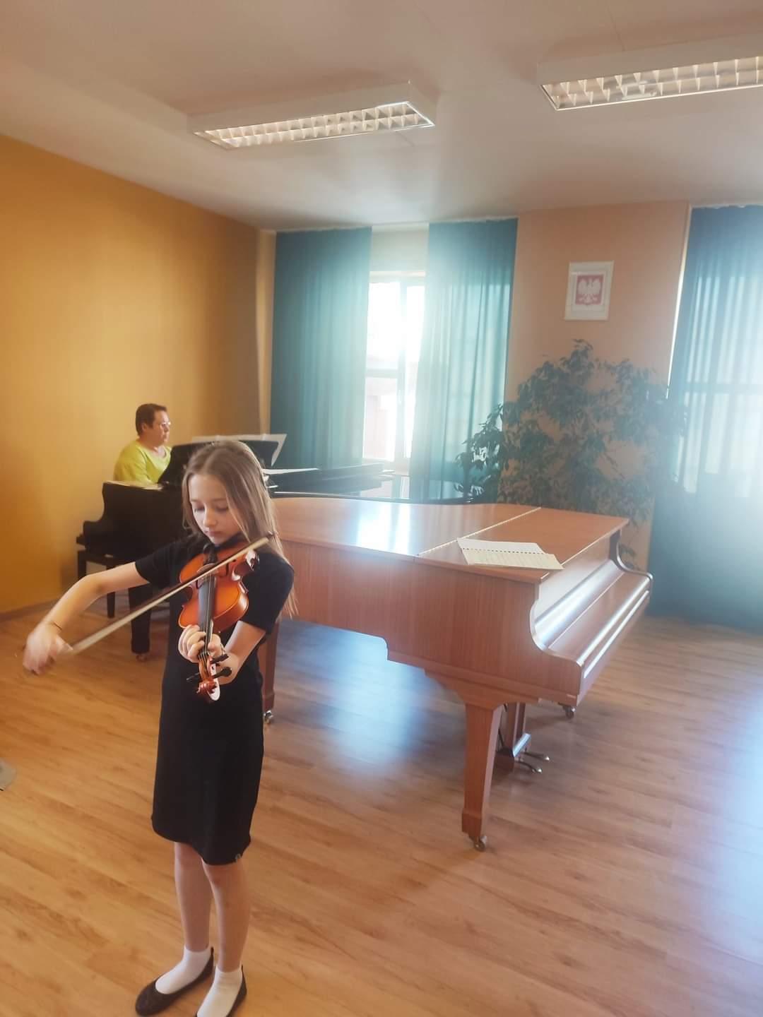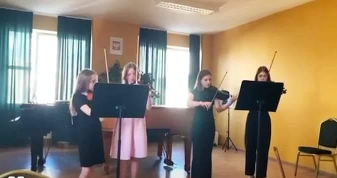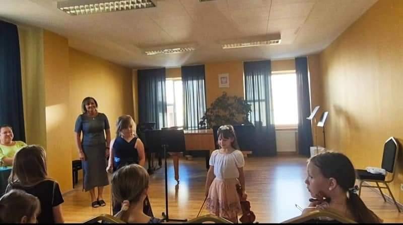 Dnia 12.06.2024 r. odbył się w naszej szkole koncert w wykonaniu uczniów kl.skrzypiec Pani Bogumiły Kisiel. Były występy indywidualne i w duetach. Uczniom akompaniowała Pani Dyrektor Edyta Lebieżyńska i Bogumiła Kisiel. Koncert zakończył występ zespołu skrzypcowego,który wykonał ,,Menuet'' L.Boccheriniego. Licznie zgromadzona publiczność nagrodziła gromkimi brawami wszystkich wykonawców
