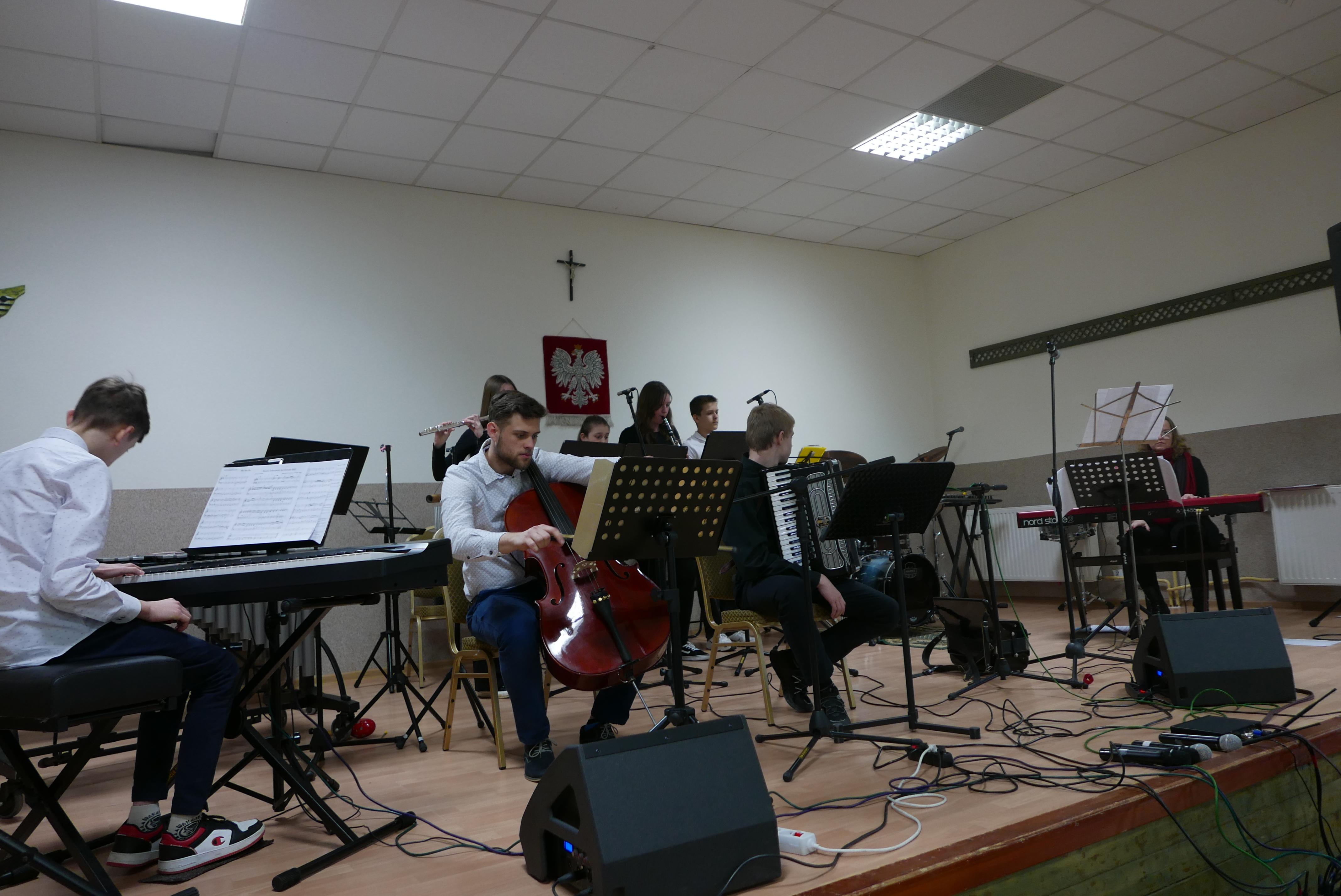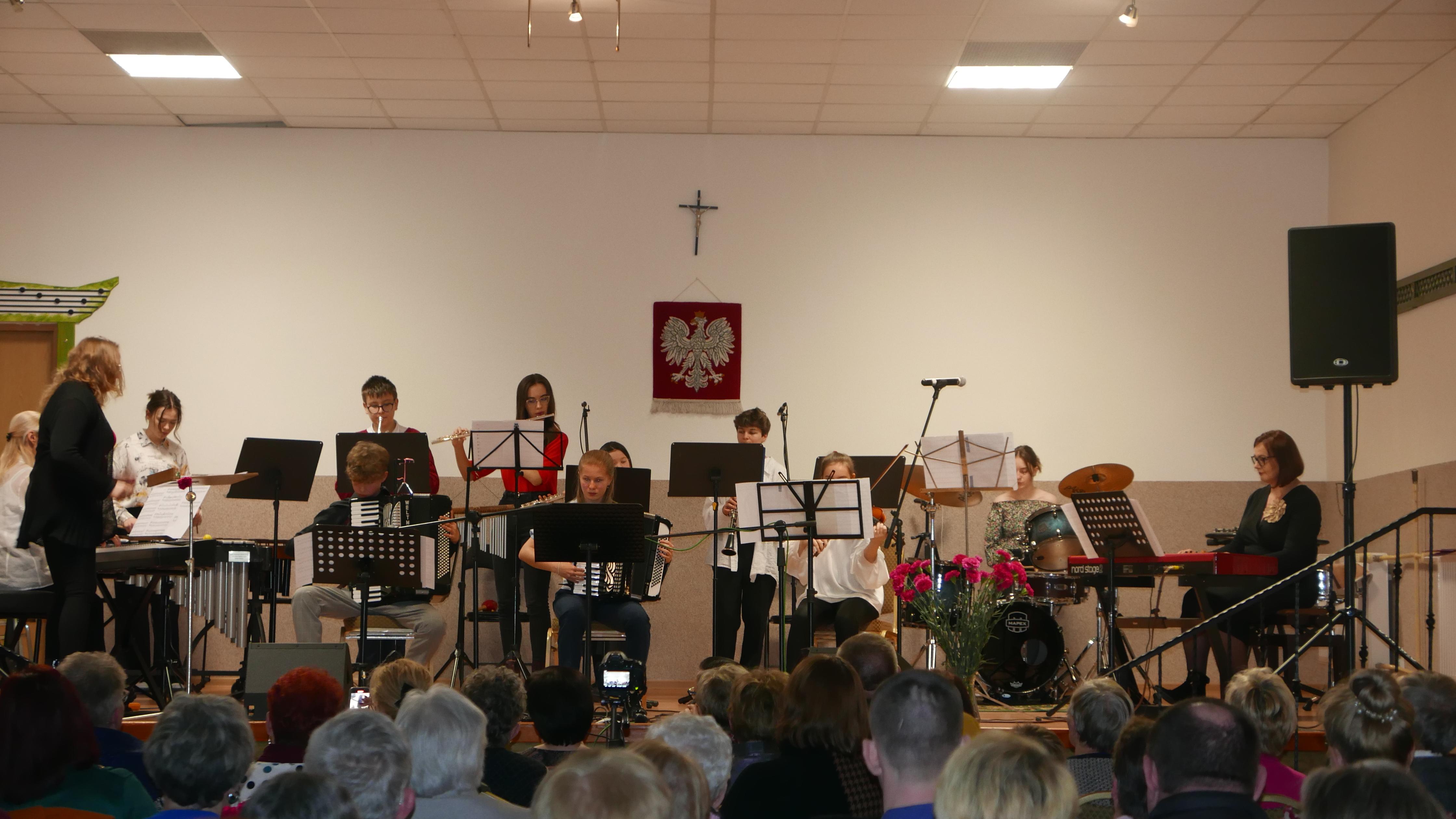 9 marca 2024 roku, uczniowie PSM I st. w Bielsku Podlaskim grający w zespołach: „Poco a poco„, „Ad Libitum„ oraz w Zespole Rodzinnym pod kier. p. Agnieszki Glińskiej wyjechali na koncert z okazji Dnia Kobiet do Suraża. Na facebooku szkoły zostały zamieszczone nagrania z tego koncertu, a teraz mamy okazję „pochwalić się„ naszymi uczniami w formie fotorelacji oraz podziękować p. Markowi Jaroszowi - dyrektorowi Miejsko-Gminnego Ośrodka Kultury w Surażu za zaproszenie nas na wspaniały koncert. Kłaniamy się nisko cudownym rodzicom naszych uczniów, którzy bardzo nas wspierają i pomagają w tego typu przedsięwzięciach. Dziękujemy naszym uczniom, którzy swój wolny czas poświęcają na wyjazd na koncerty.