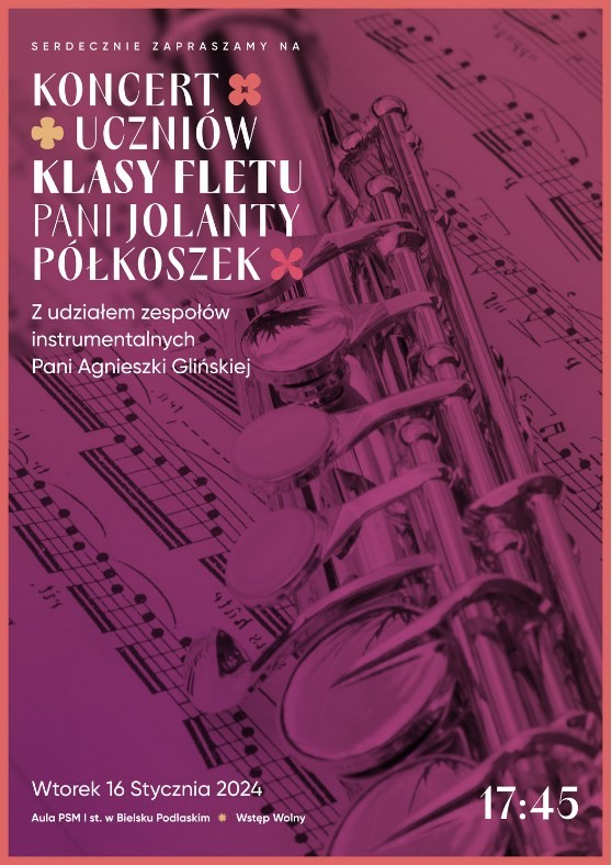 16 stycznia 2024 r. w auli naszej szkoły, odbył się już drugi koncert w tym roku. Tym razem zaprezentowali uczniowie klasy fletu Pani Jolanty Półkoszek