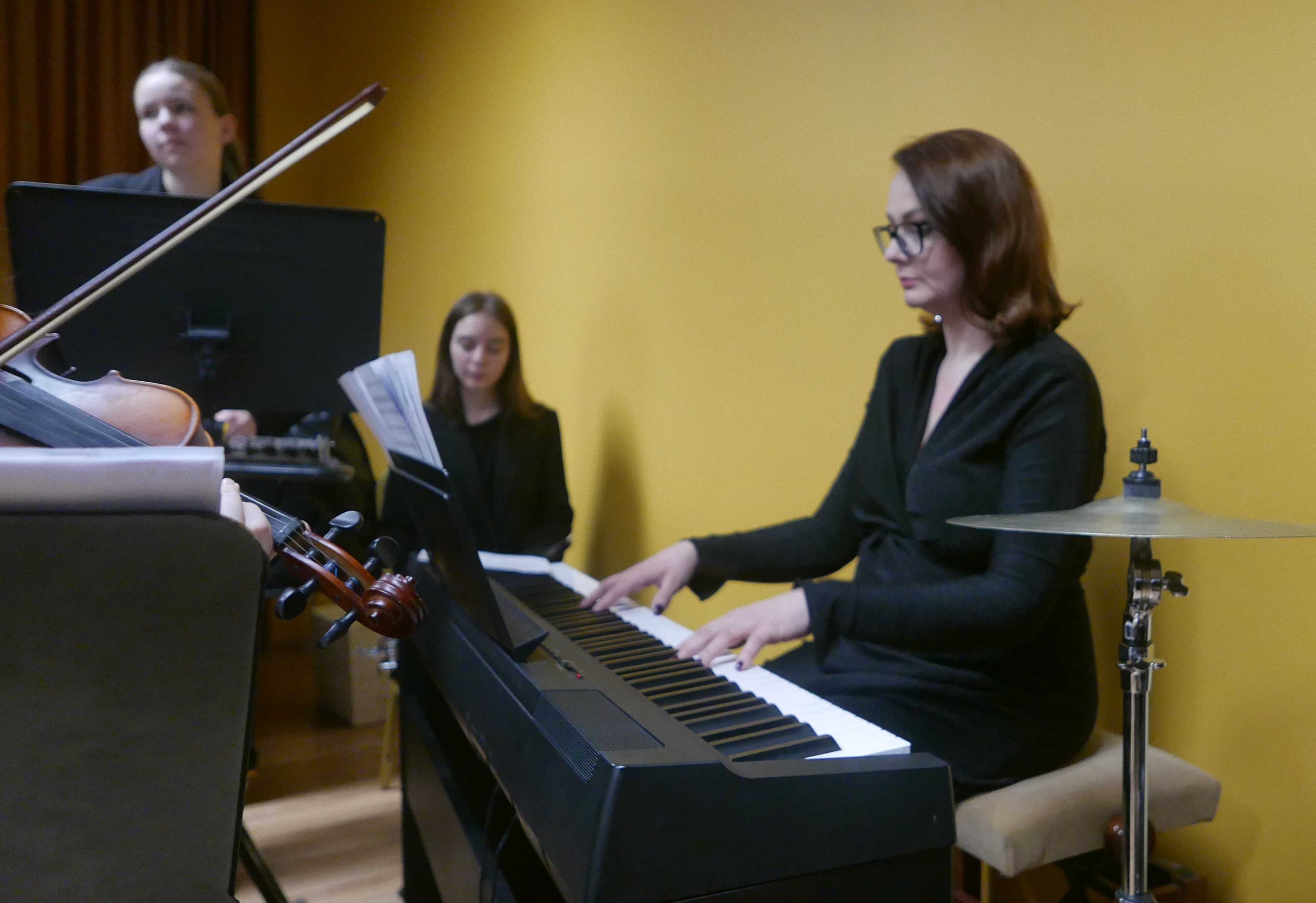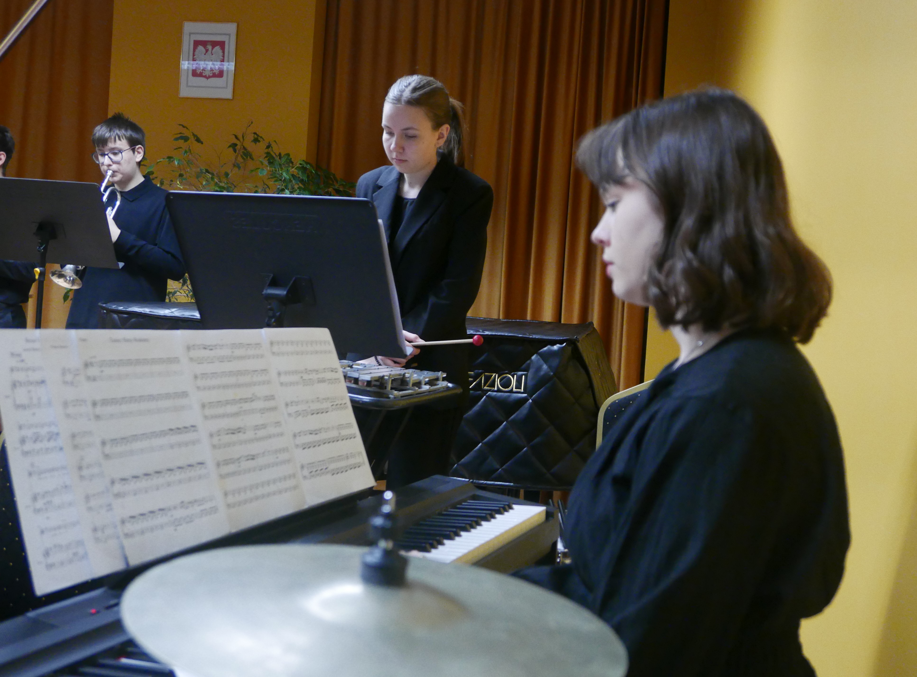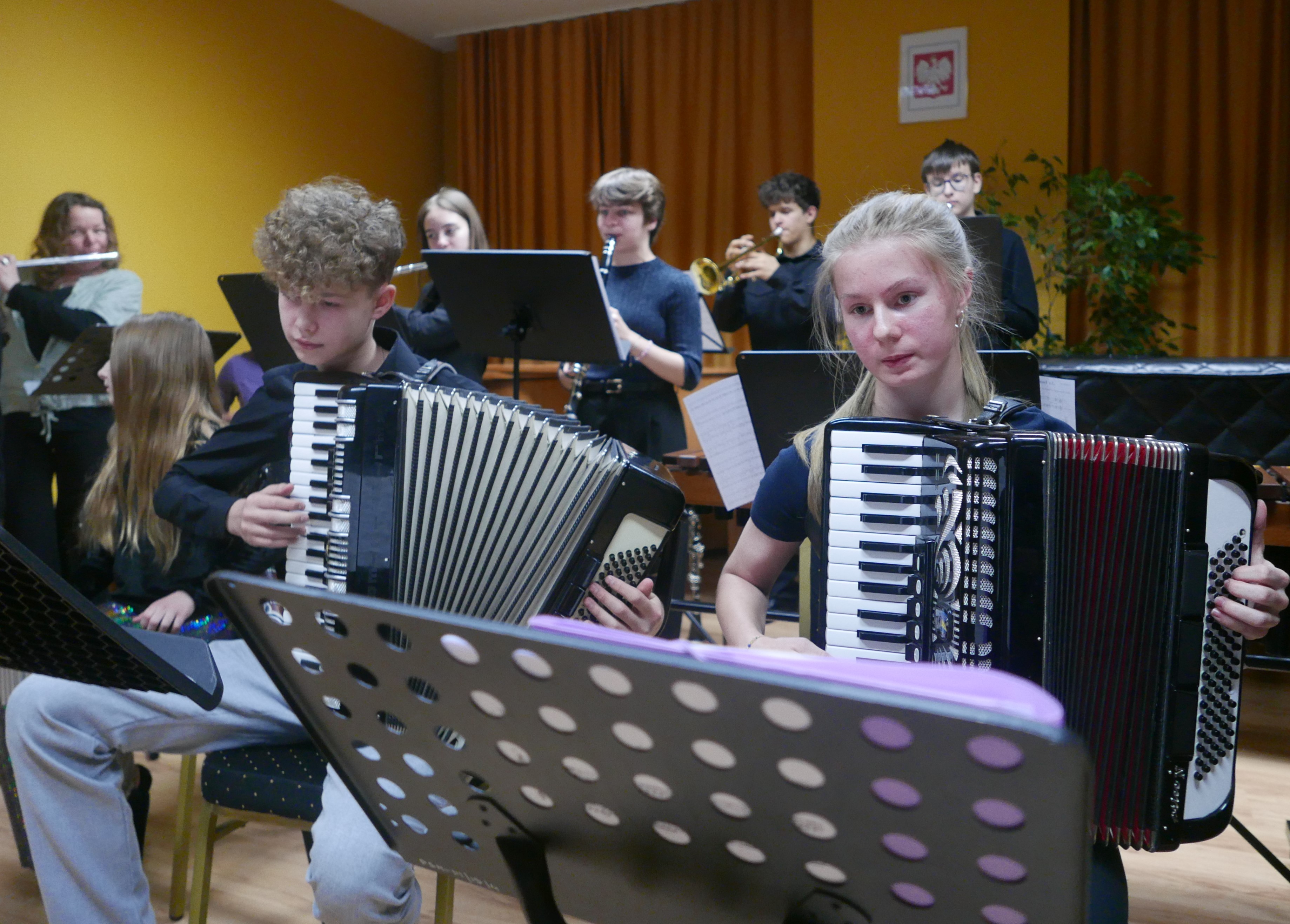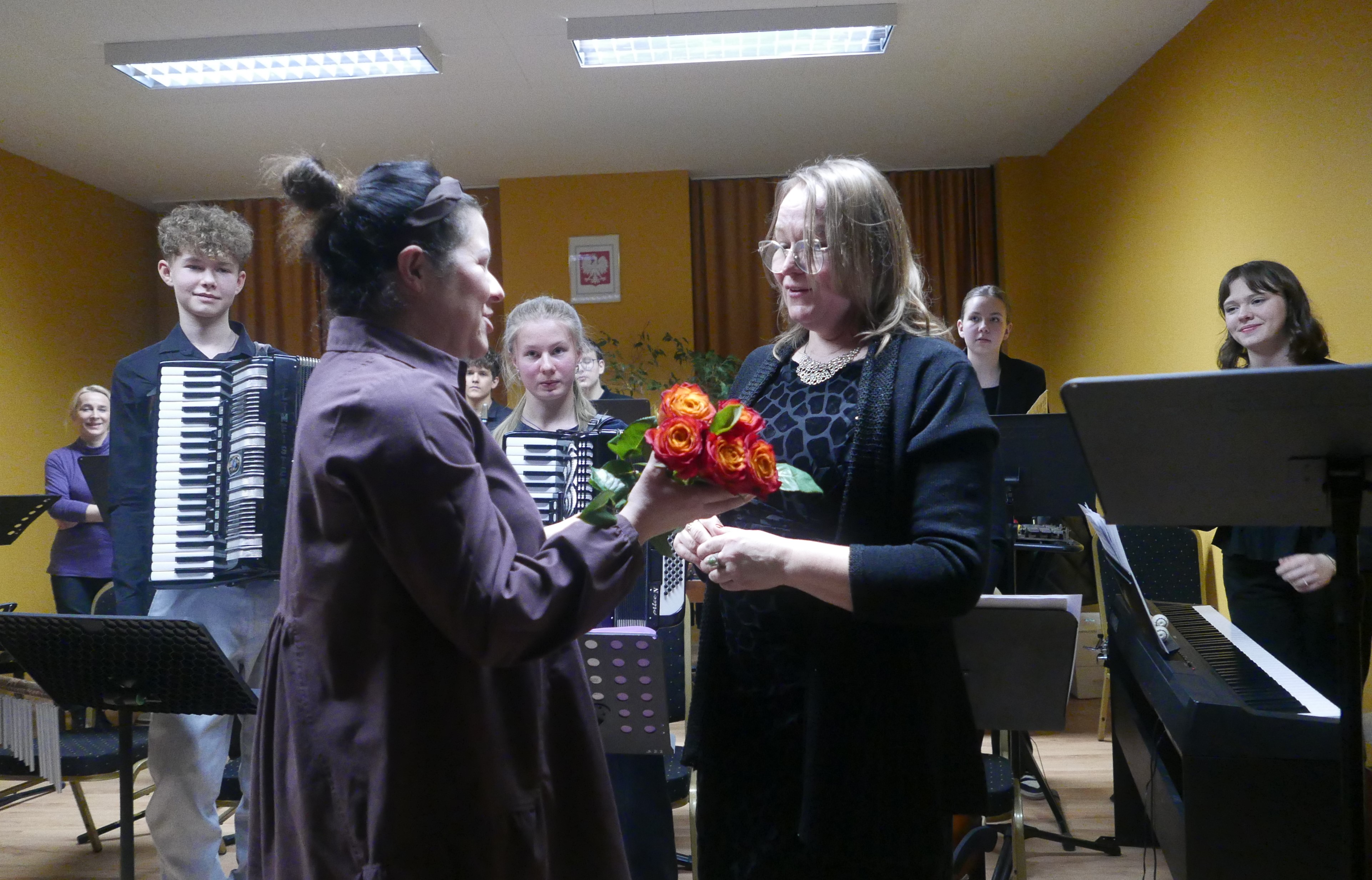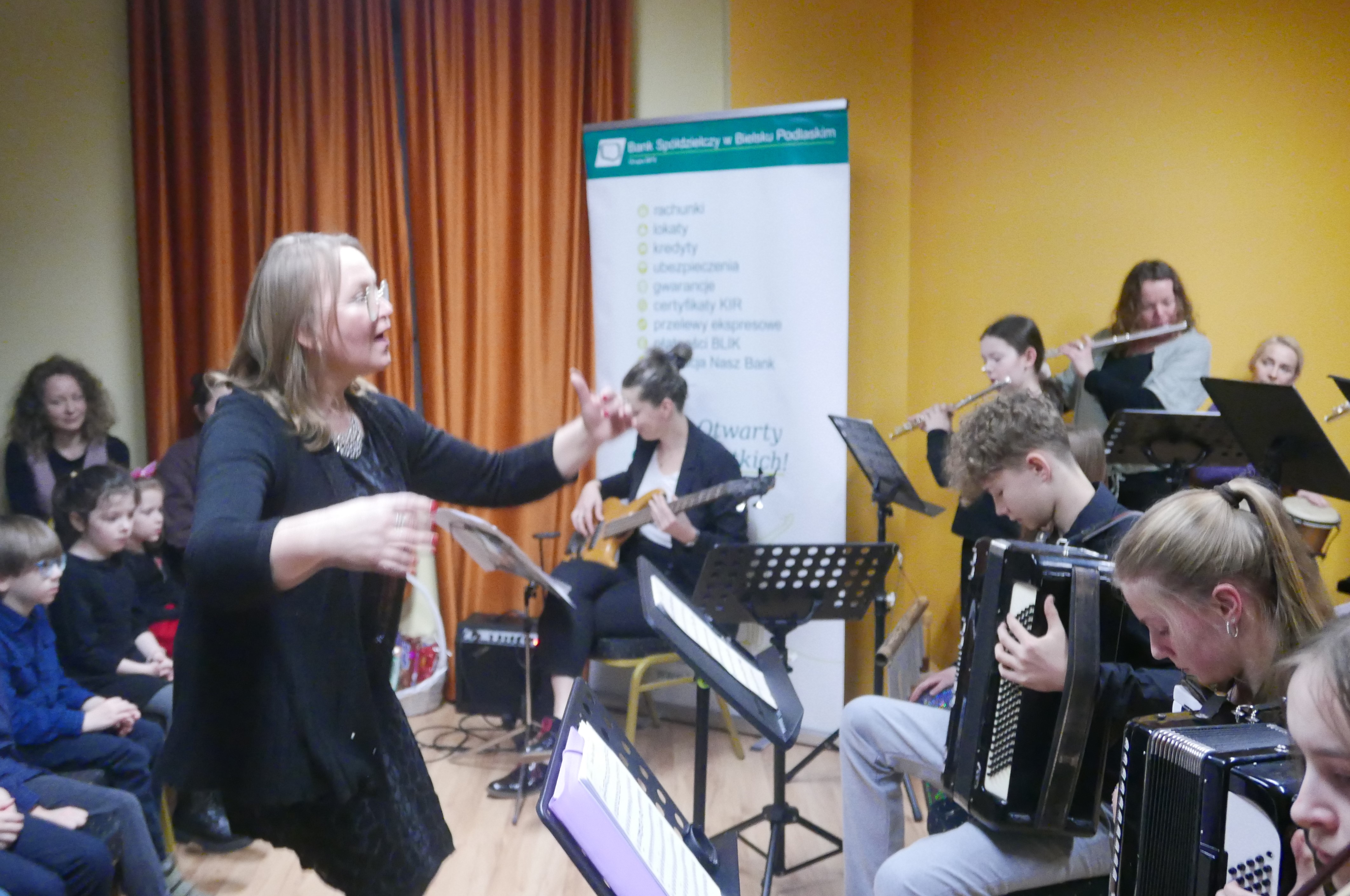 Wieczorem 25 lutego w ostatnim tygodniu karnawału na auli koncertowej naszej szkoły odbył się wyjątkowy koncert "Zespołu rodzinnego" pod dyrekcją pani Agnieszki Glińskiej. Tego wieczoru do szkoły przybyła publiczność przedszkolna - dzieci z najstarszej grupy z Przedszkola Niepublicznego Nr 1 im. św. Młodzieńca Gabriela wraz z rodzicami. Obecna była też pani dyrektor Walentyna Mielnik-Nikołajuk oraz pracownicy przedszkola. Koncert był okazją do promocji szkoły i zapoznania z ofertą edukacyjną placówki. Zabrzmiały największe hity zespołu m.in. "Taniec Eleny", piosenka francuska "Pod niebem Paryża" czy "Taniec węgierski" Brahmsa. Koncert odbył się w miłej, rodzinnej atmosferze. Publiczność poznała nowe instrumenty, a na koniec wzięła udział w zabawie rytmicznej przy muzyce jazzowej granej przez zespół. Przedszkolaki po koncercie zostały zaproszone na słodki poczęstunek. Publiczność wyraziła ogromne zadowolenie z koncertu. Wielu z przedszkolaków zadeklarowało chęć nauki w naszej szkole.