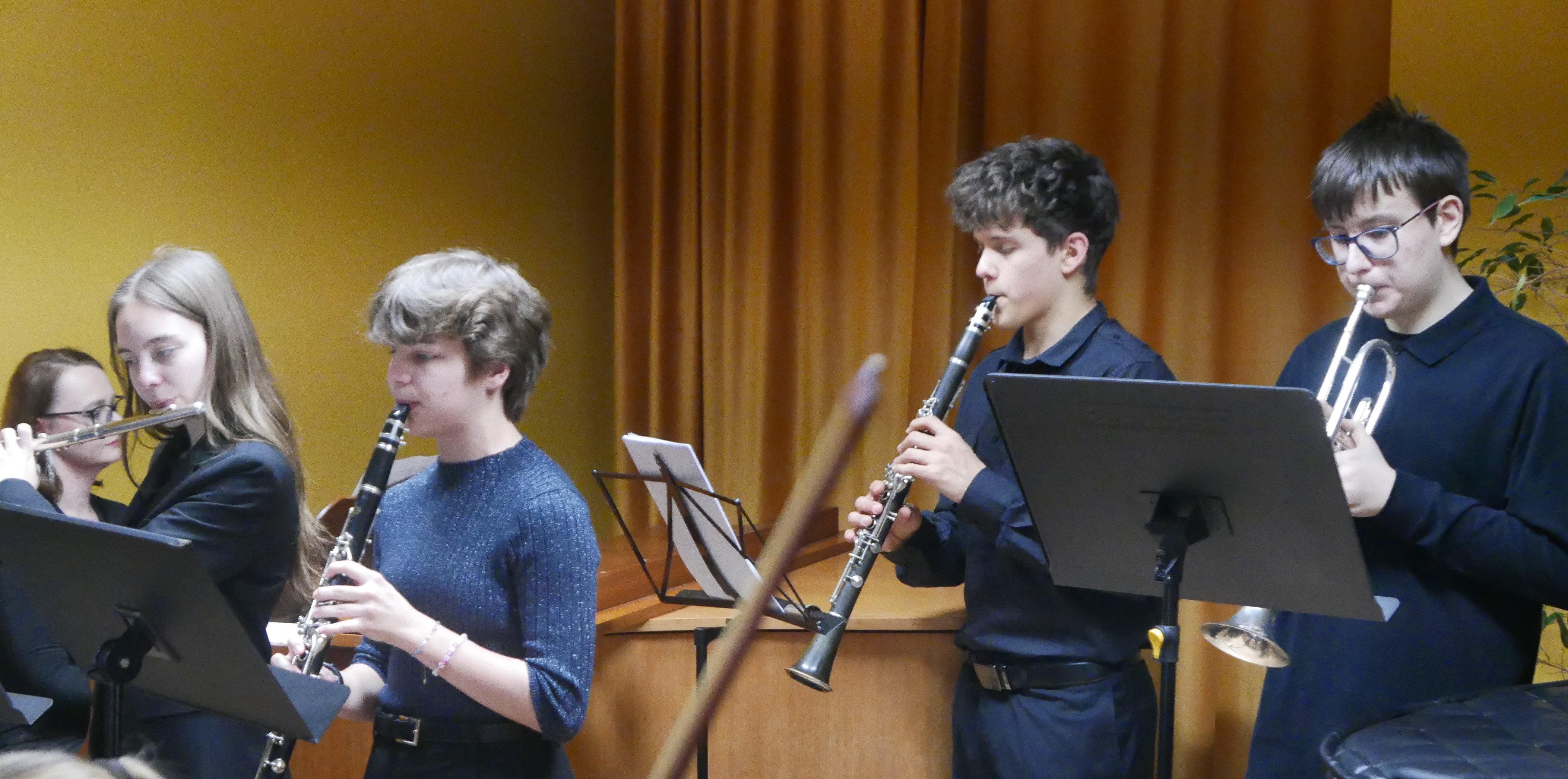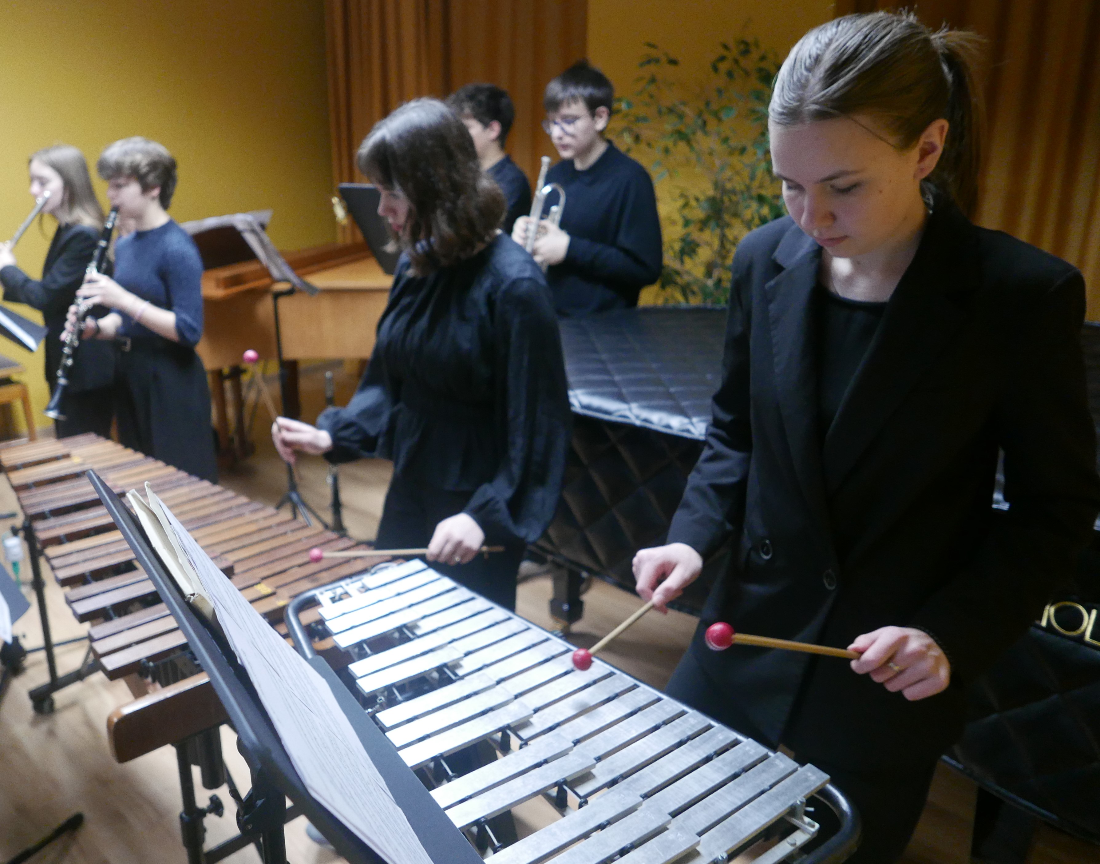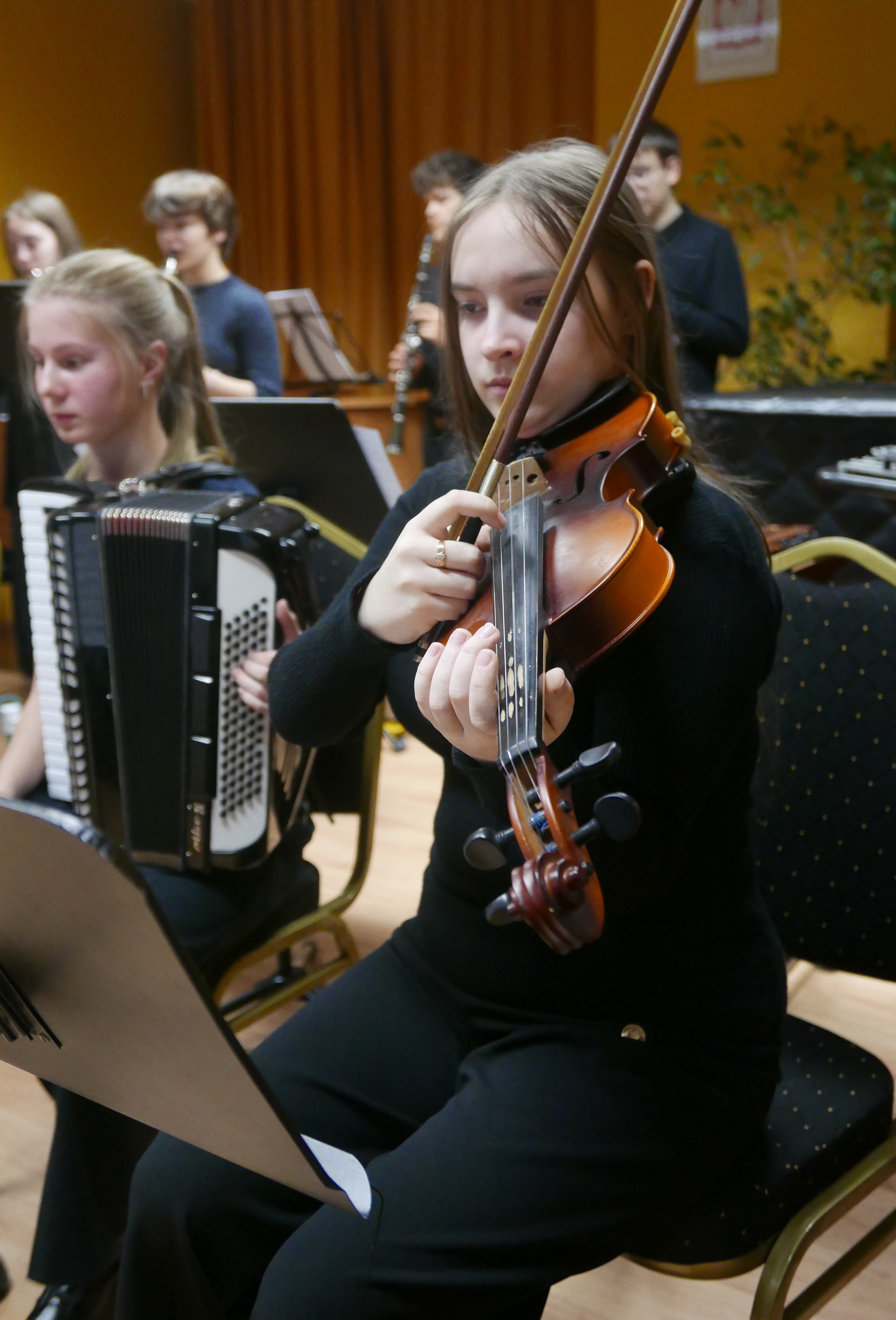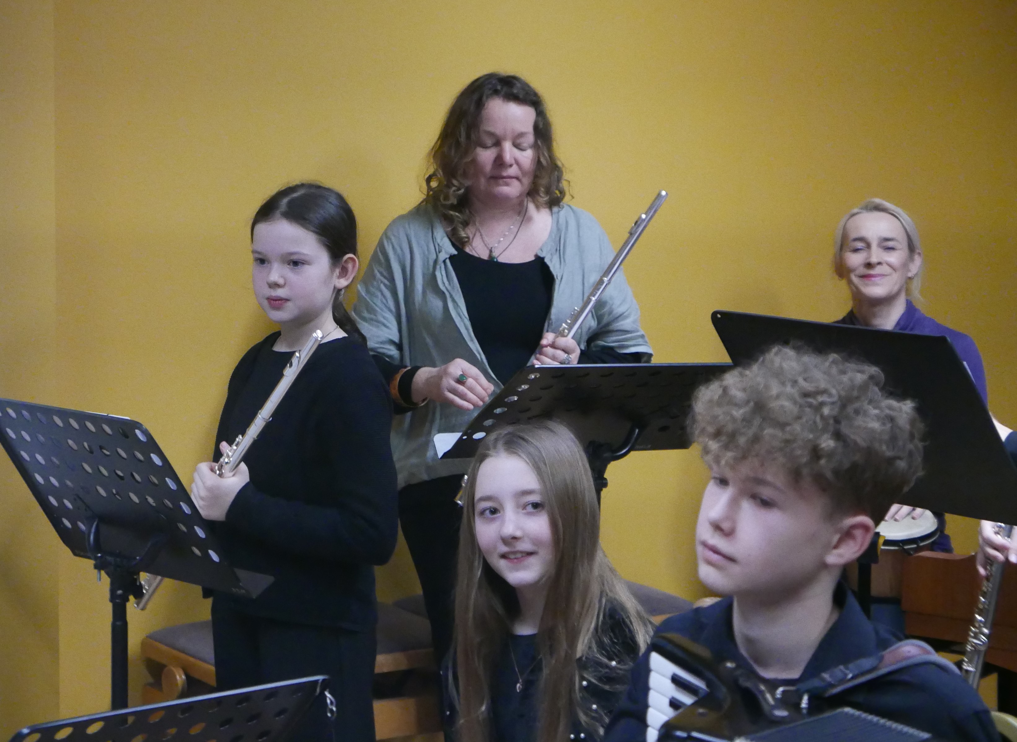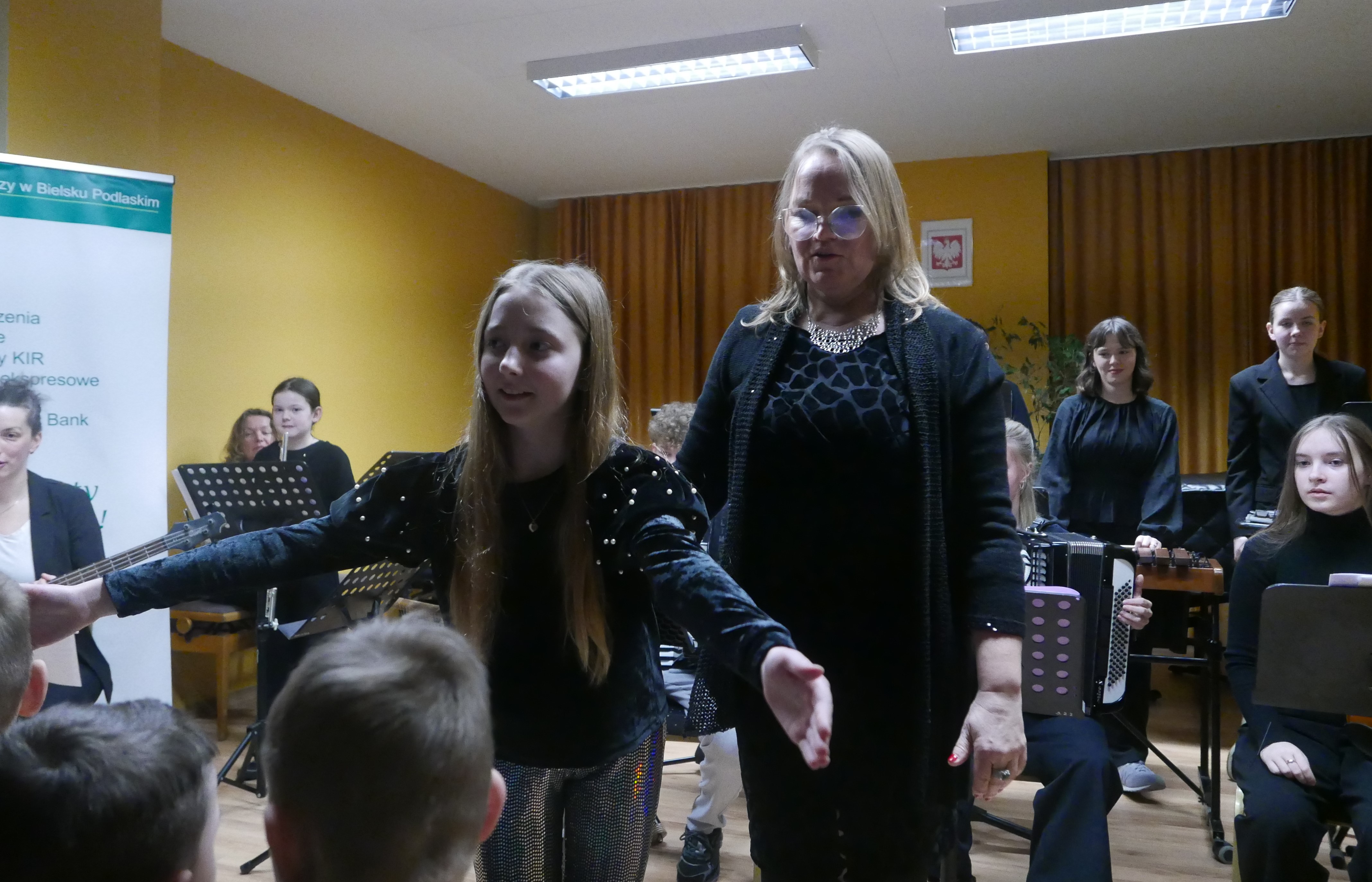 Wieczorem 25 lutego w ostatnim tygodniu karnawału na auli koncertowej naszej szkoły odbył się wyjątkowy koncert "Zespołu rodzinnego" pod dyrekcją pani Agnieszki Glińskiej. Tego wieczoru do szkoły przybyła publiczność przedszkolna - dzieci z najstarszej grupy z Przedszkola Niepublicznego Nr 1 im. św. Młodzieńca Gabriela wraz z rodzicami. Obecna była też pani dyrektor Walentyna Mielnik-Nikołajuk oraz pracownicy przedszkola. Koncert był okazją do promocji szkoły i zapoznania z ofertą edukacyjną placówki. Zabrzmiały największe hity zespołu m.in. "Taniec Eleny", piosenka francuska "Pod niebem Paryża" czy "Taniec węgierski" Brahmsa. Koncert odbył się w miłej, rodzinnej atmosferze. Publiczność poznała nowe instrumenty, a na koniec wzięła udział w zabawie rytmicznej przy muzyce jazzowej granej przez zespół. Przedszkolaki po koncercie zostały zaproszone na słodki poczęstunek. Publiczność wyraziła ogromne zadowolenie z koncertu. Wielu z przedszkolaków zadeklarowało chęć nauki w naszej szkole.