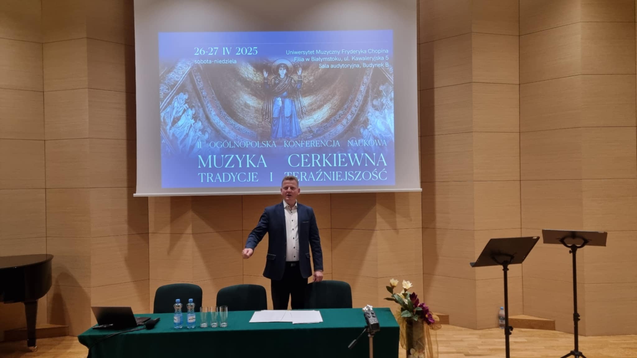 W dniach 26-27 kwietnia 2025 w budynku Uniwersytetu Muzycznego Fryderyka Chopina w Białymstoku przy ul. Kawaleryjskiej 5 odbyła się II Ogólnopolska Konferencja Naukowa „MUZYKA CERKIEWNA TRADYCJE I TERAŹNIEJSZOŚĆ”, zorganizowana przez Katedrę Chóralistyki i Edukacji Artystycznej Uniwersytetu Muzycznego, Filia w Białymstoku. Na zaproszenie organizatorów w ramach konferencji wykład wygłosił m.in. nauczyciel naszej szkoły – mgr Ireneusz Ławreszuk i dr hab. Jan Połowianiuk absolwent PSM I st. w Bielsku Podlaskim. Oba referaty spotkały się z dużym zainteresowaniem licznie zgromadzonego audytorium. Będą one wkrótce opublikowane w zeszytach naukowych Uniwersytetu.