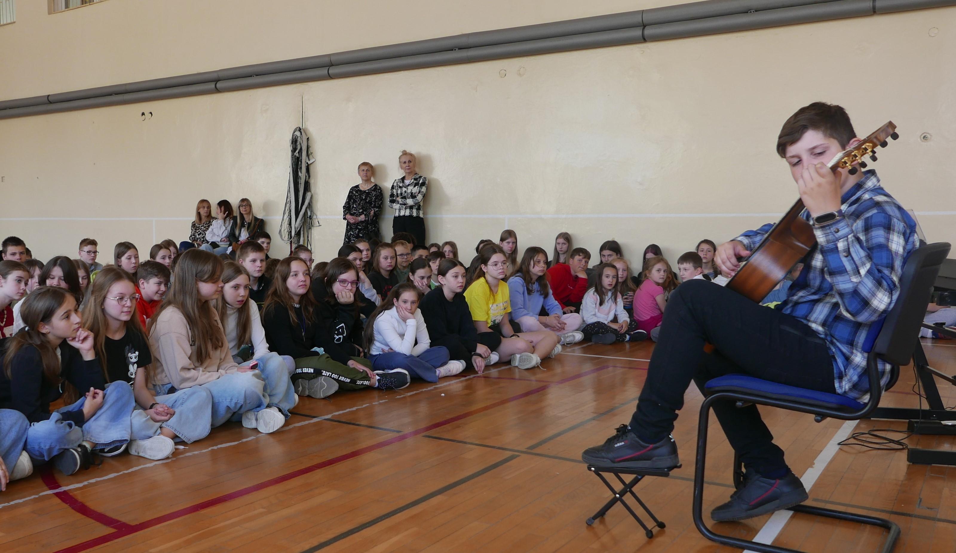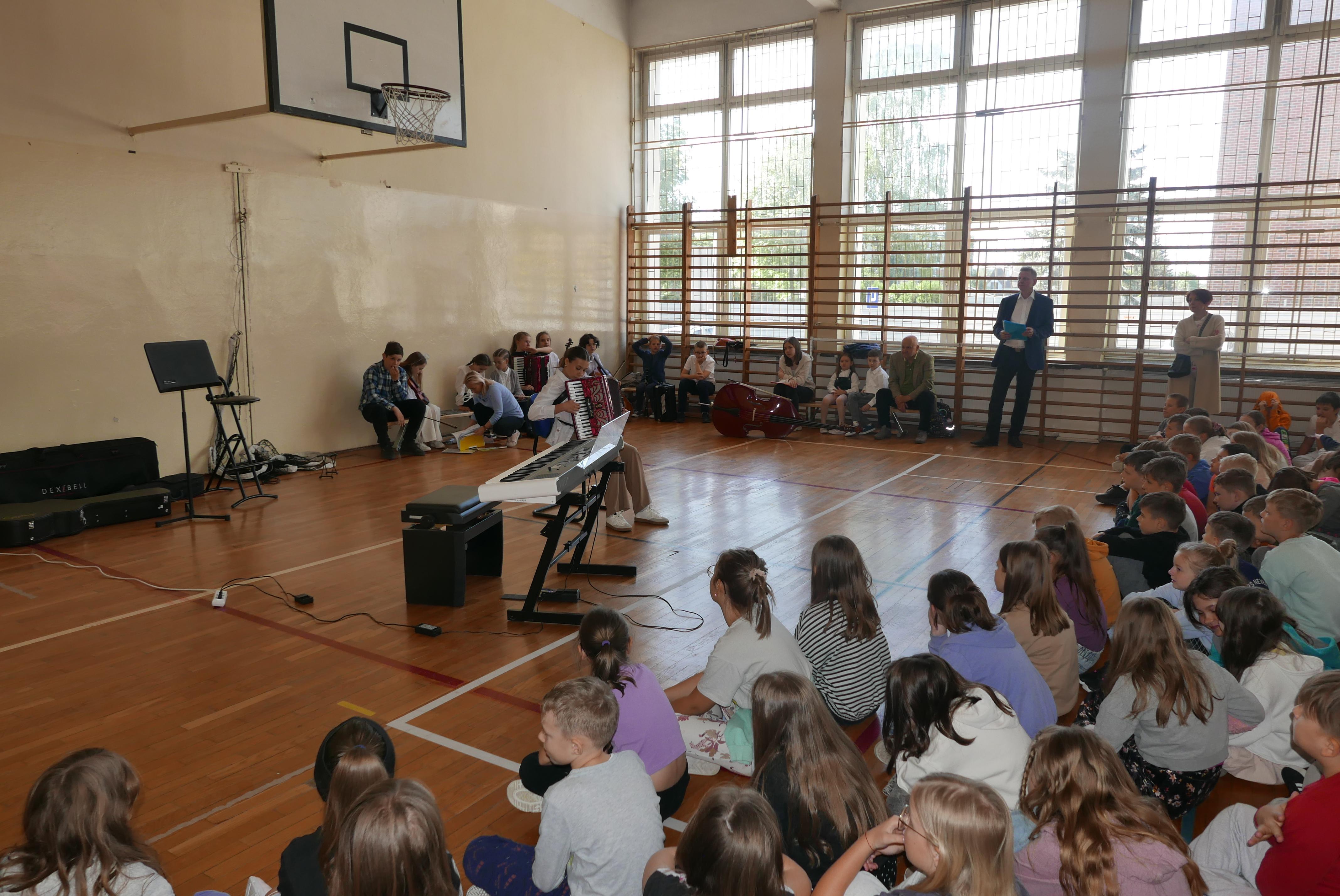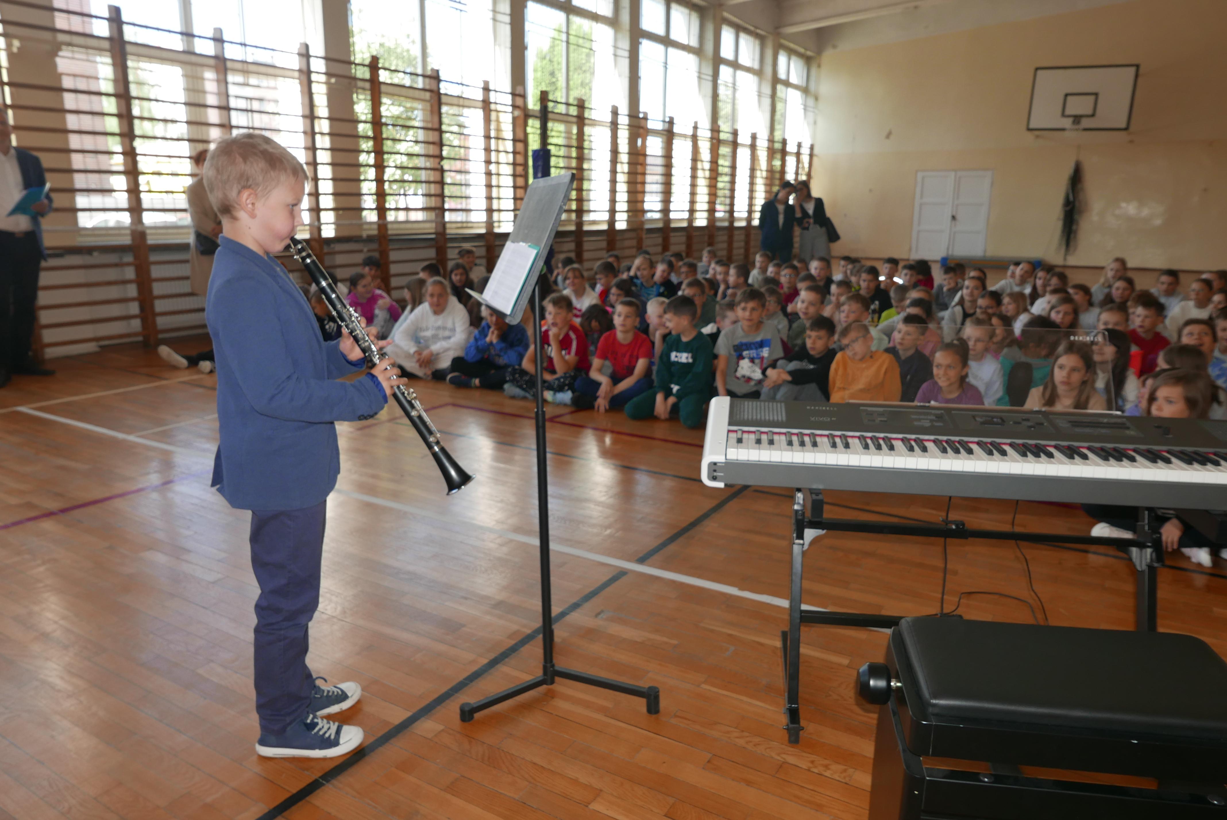 9 maja 2024r uczniowie mieli przyjemność koncertować w Szkole Podstawowej nr 4 im. A. Mickiewicza w Bielsku Podlaskim dla klas I-III oraz IV-VI. Nasi „młodzi muzycy" zostali bardzo gorąco przyjęci przez uczniów SP. Pan Ireneusz Ławreszuk opowiadał słuchaczom o instrumentach, a uczniowie prezentowali radosne utwory. Nasi uczniowie zachwycili wszystkich słuchaczy ponieważ otrzymali owacje i gorące brawa! Dziękujemy p. Dyrektor i gronu pedagogicznemu SP nr 4 oraz publiczności za wspaniałe przyjęcie! Dziękujemy naszym wykonawcom oraz pedagogom za wspaniałe przygotowanie do prezentacji
