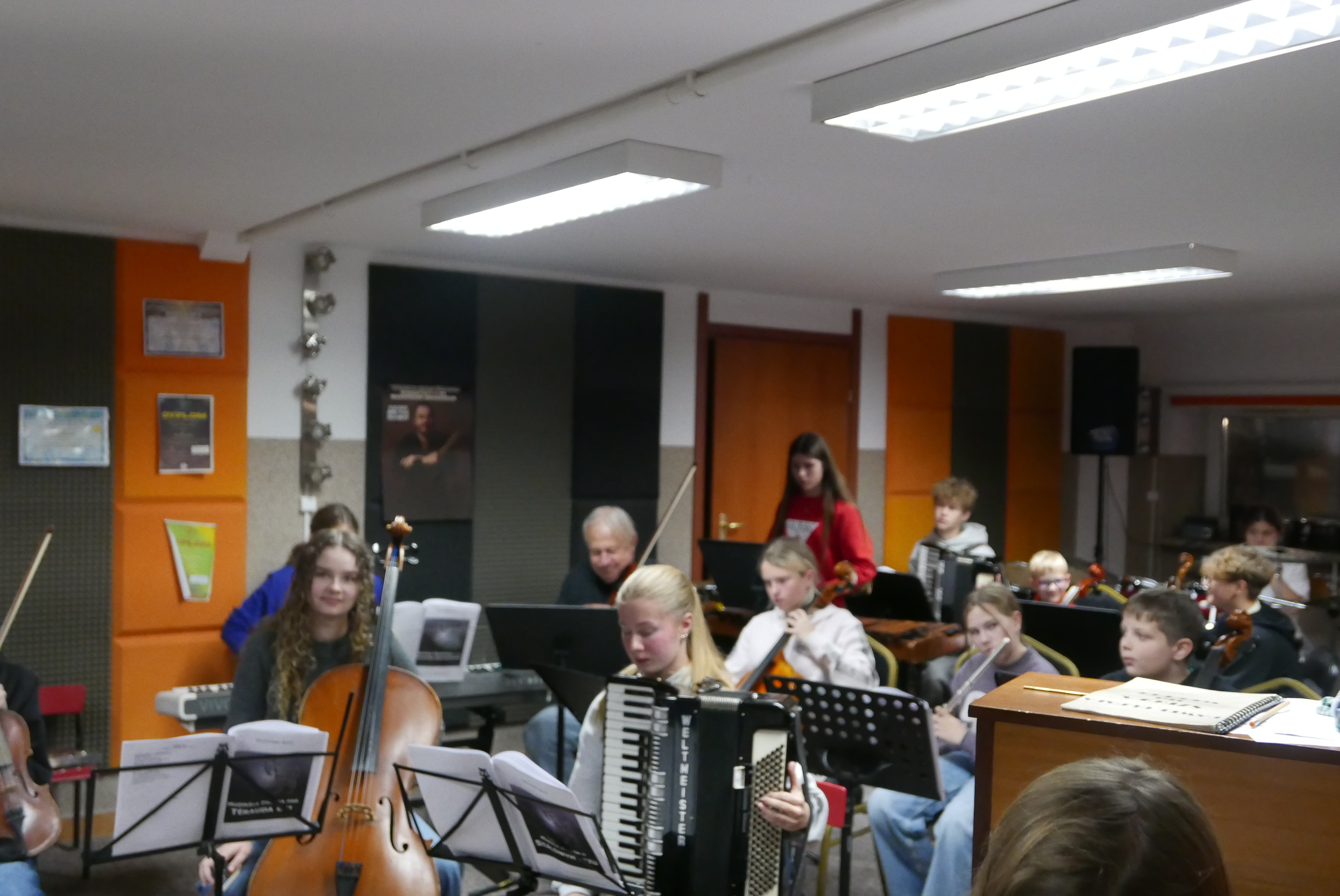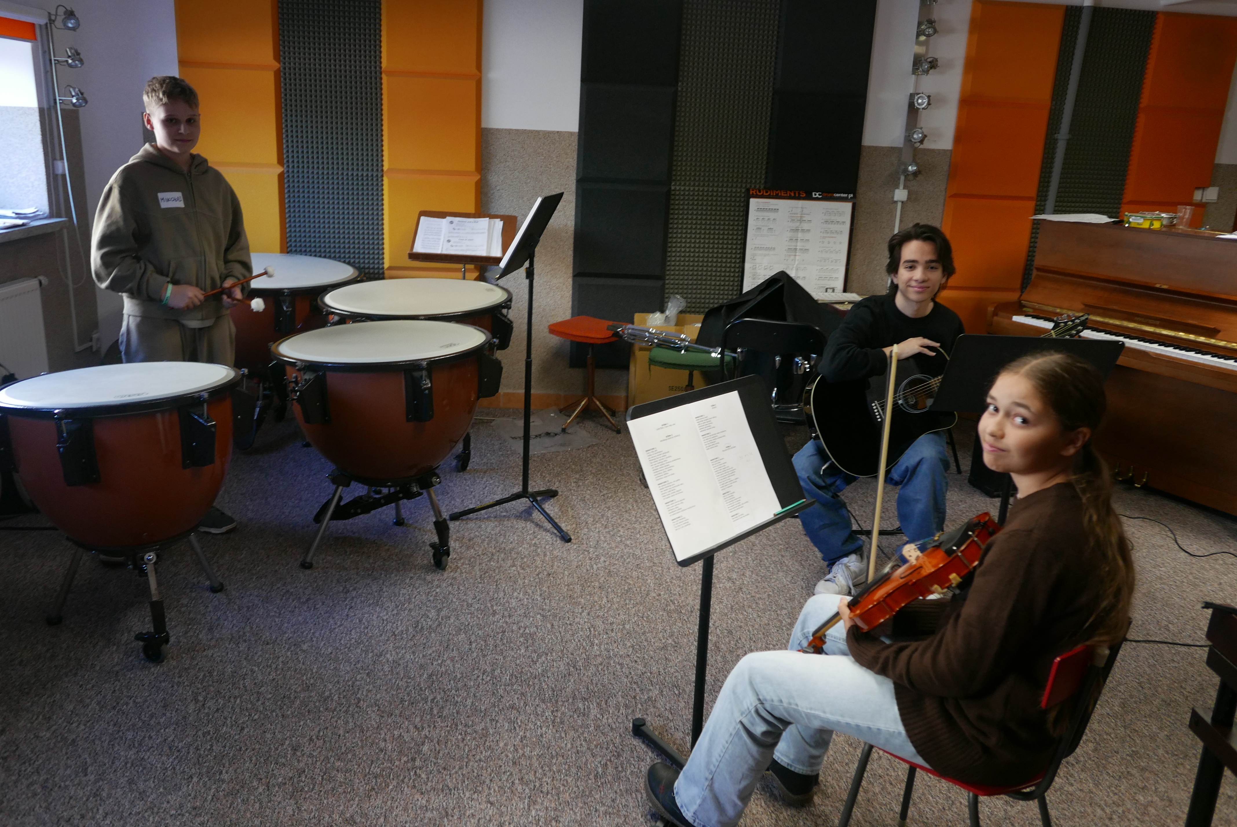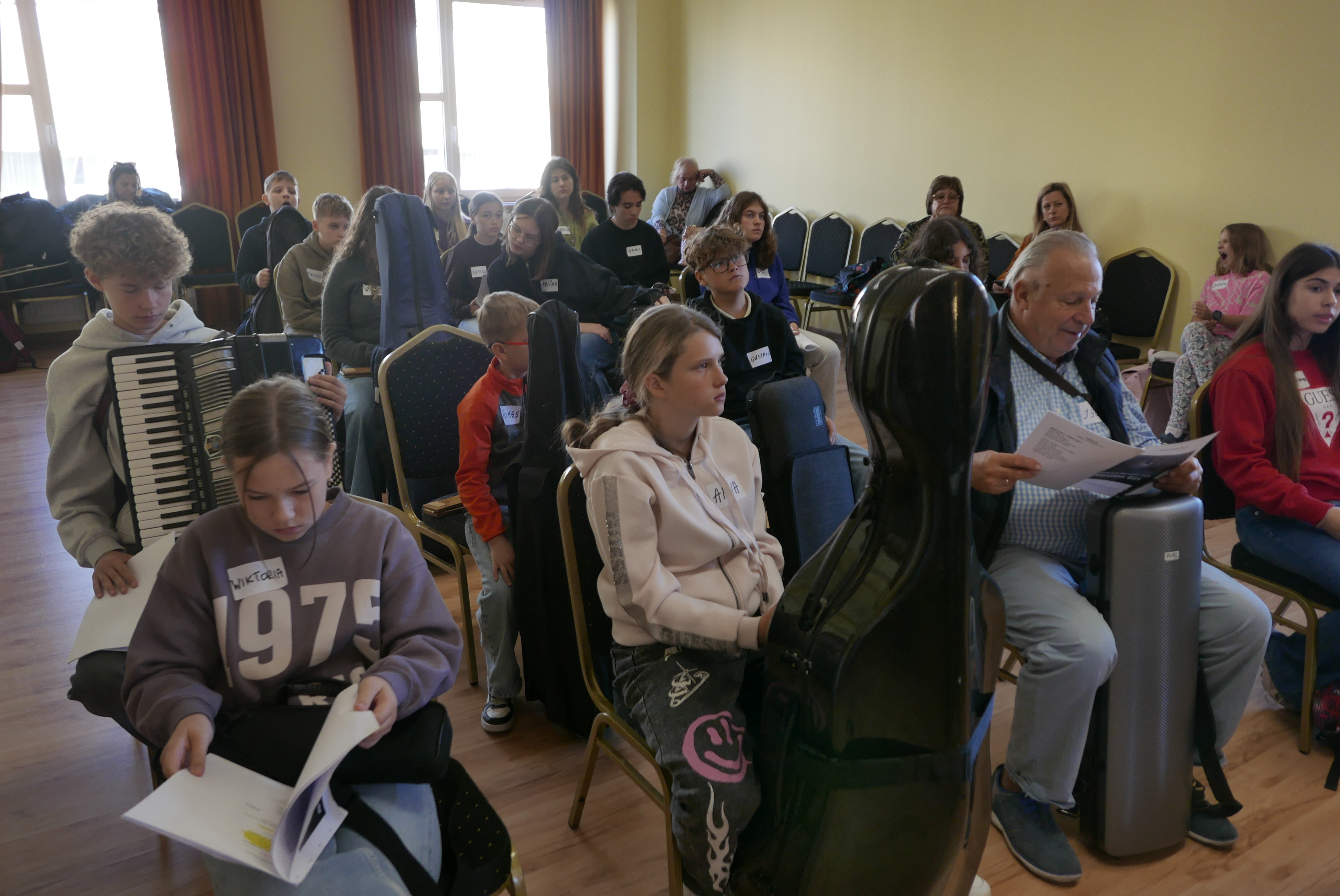 "MUZYCZNE MOSTY"z inicjatywy Pani Dyrektor Edyty Lebieżyńskiej drugi raz zagościły w murach naszej szkoły. Całe przedsięwzięcie rozpoczęło się wyjazdem do parku linowego. Po emocjonujących i relaksujących zajęciach w Doktorcach, które zintegrowały uczestników-wszyscy byli gotowi do właściwych warsztatów muzycznych. Od rana wszyscy uczestnicy ze szkół muzycznych z Łotwy, Grecji i naszej szkoły z niecierpliwością oczekiwali na wspólne zajęcia, które rozpoczęły się zebraniem wszystkich w auli szkolnej. Pan Krzysztof Baka wprowadził młodych muzyków w tematykę warsztatów. Następnie podzieleni na kilkuosobowe grupy rozpoczęliśmy pracę nad muzyką do „Bajki o żelaznym jeżu” Jana Brzechwy. Równolegle w Sali rytmiki odbywały się zajęcia z grupą rytmiczną prowadzoną przez Panią Gabrielę Podleską. Pod koniec dnia w sali perkusyjnej odbyła się próba generalna z udziałem narratorów. Teraz czas na koncert.