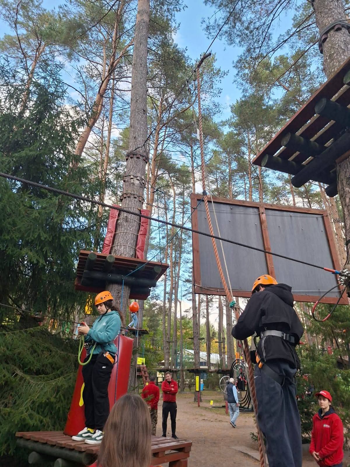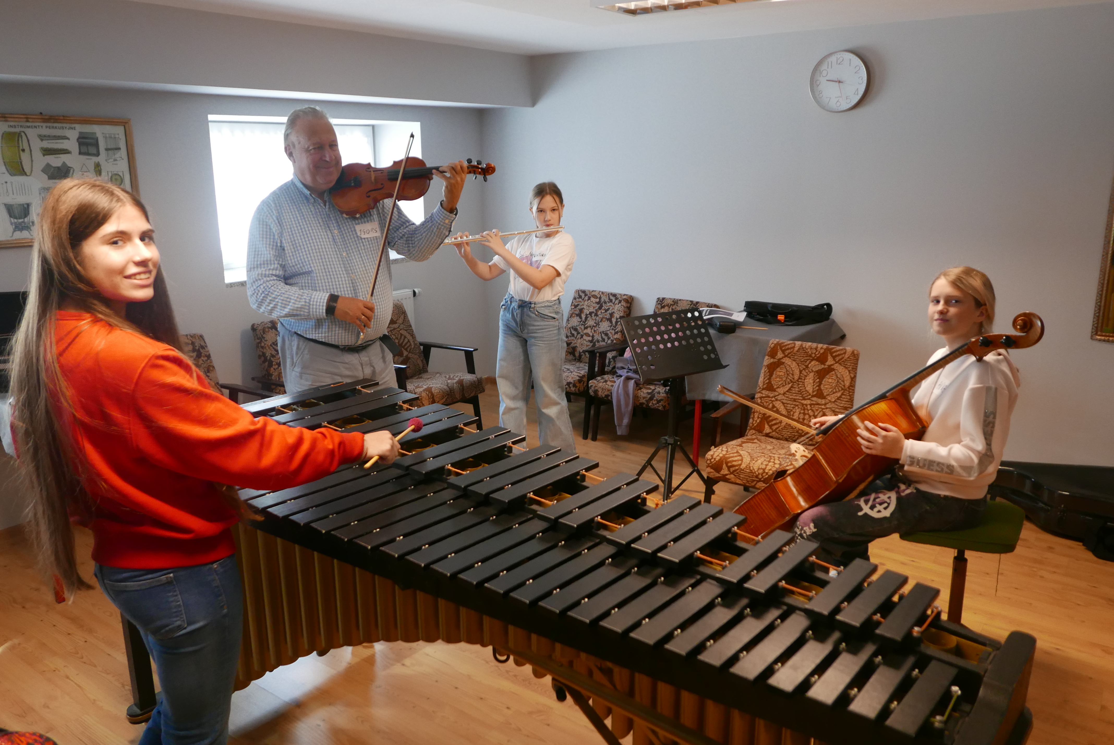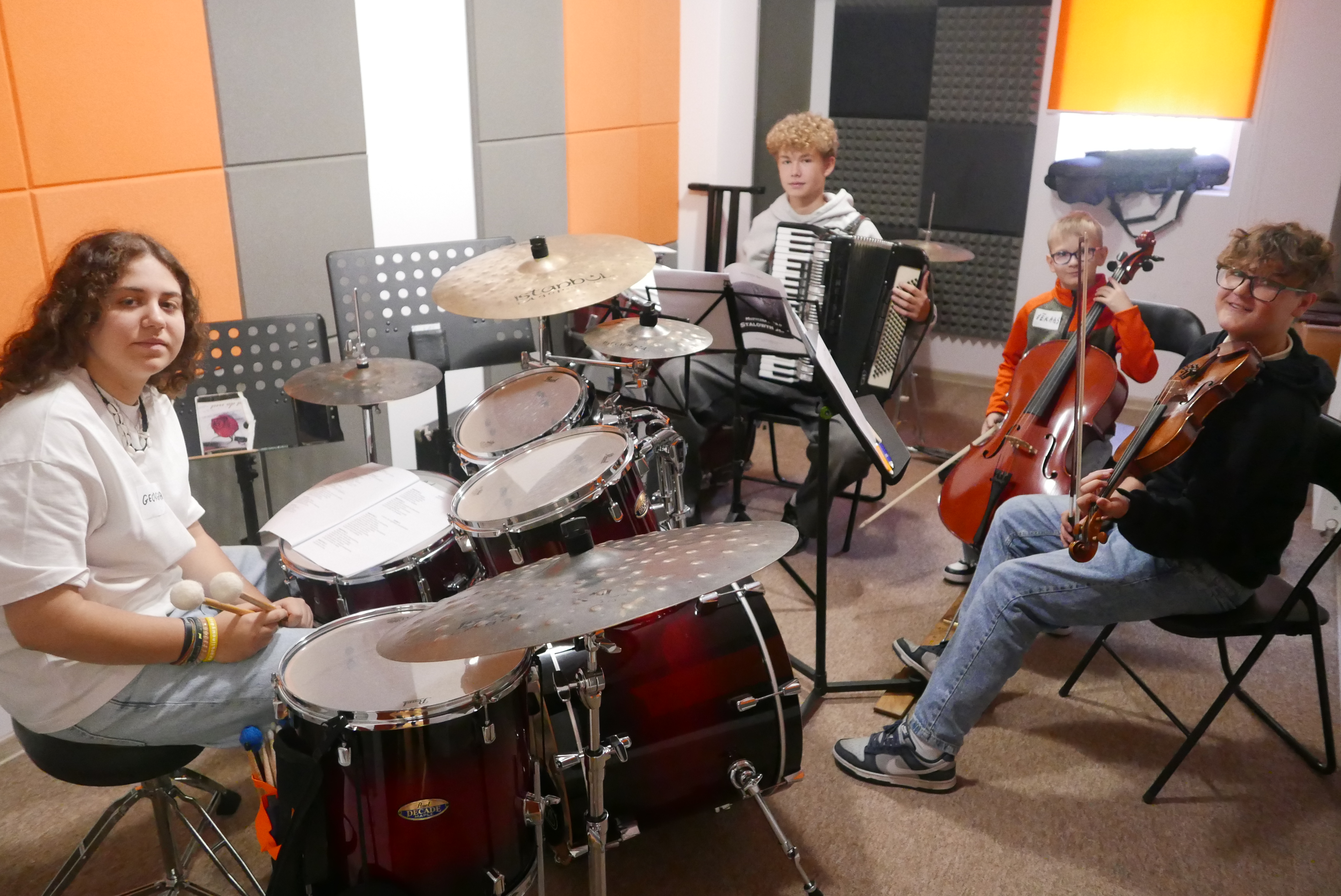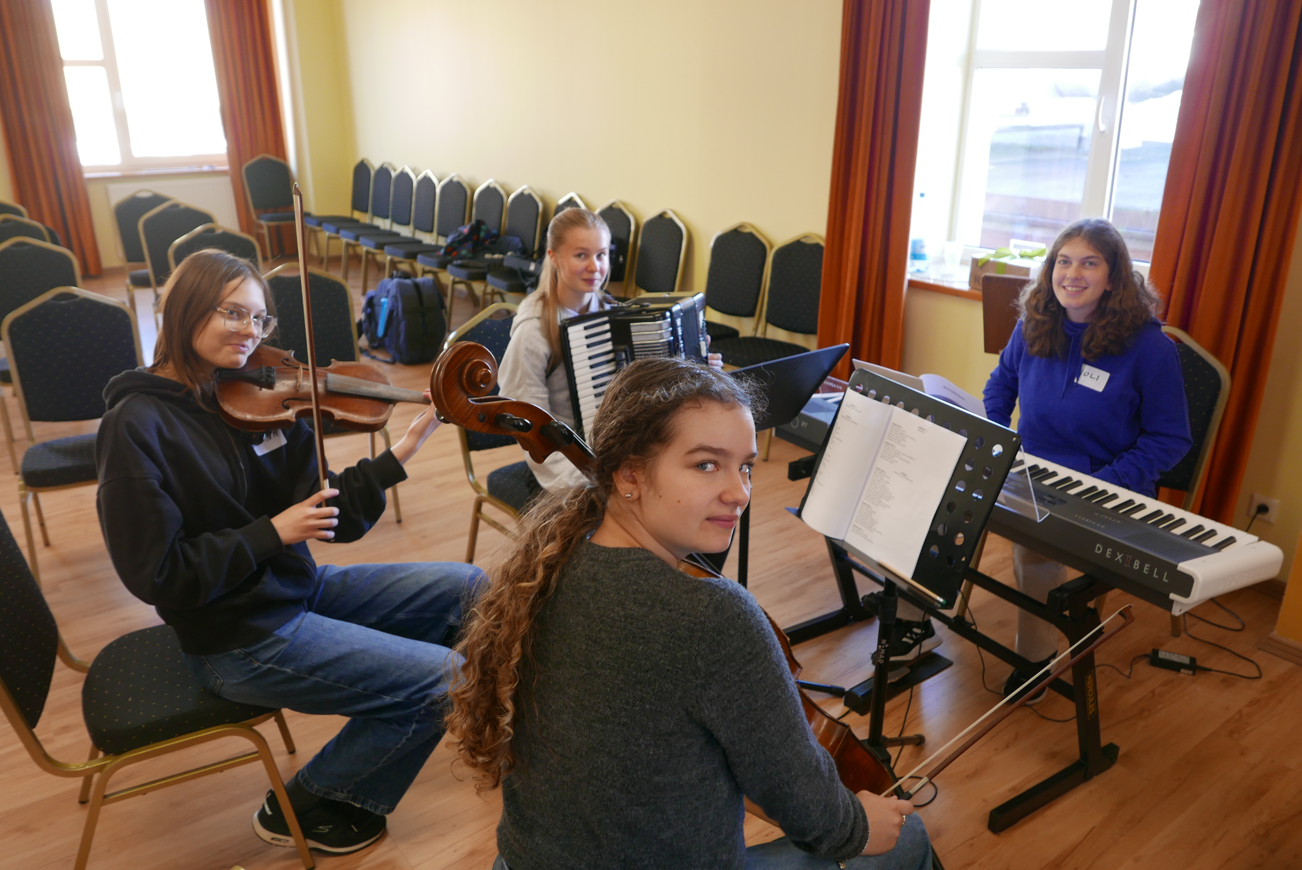 "MUZYCZNE MOSTY"z inicjatywy Pani Dyrektor Edyty Lebieżyńskiej drugi raz zagościły w murach naszej szkoły. Całe przedsięwzięcie rozpoczęło się wyjazdem do parku linowego. Po emocjonujących i relaksujących zajęciach w Doktorcach, które zintegrowały uczestników-wszyscy byli gotowi do właściwych warsztatów muzycznych. Od rana wszyscy uczestnicy ze szkół muzycznych z Łotwy, Grecji i naszej szkoły z niecierpliwością oczekiwali na wspólne zajęcia, które rozpoczęły się zebraniem wszystkich w auli szkolnej. Pan Krzysztof Baka wprowadził młodych muzyków w tematykę warsztatów. Następnie podzieleni na kilkuosobowe grupy rozpoczęliśmy pracę nad muzyką do „Bajki o żelaznym jeżu” Jana Brzechwy. Równolegle w Sali rytmiki odbywały się zajęcia z grupą rytmiczną prowadzoną przez Panią Gabrielę Podleską. Pod koniec dnia w sali perkusyjnej odbyła się próba generalna z udziałem narratorów. Teraz czas na koncert.