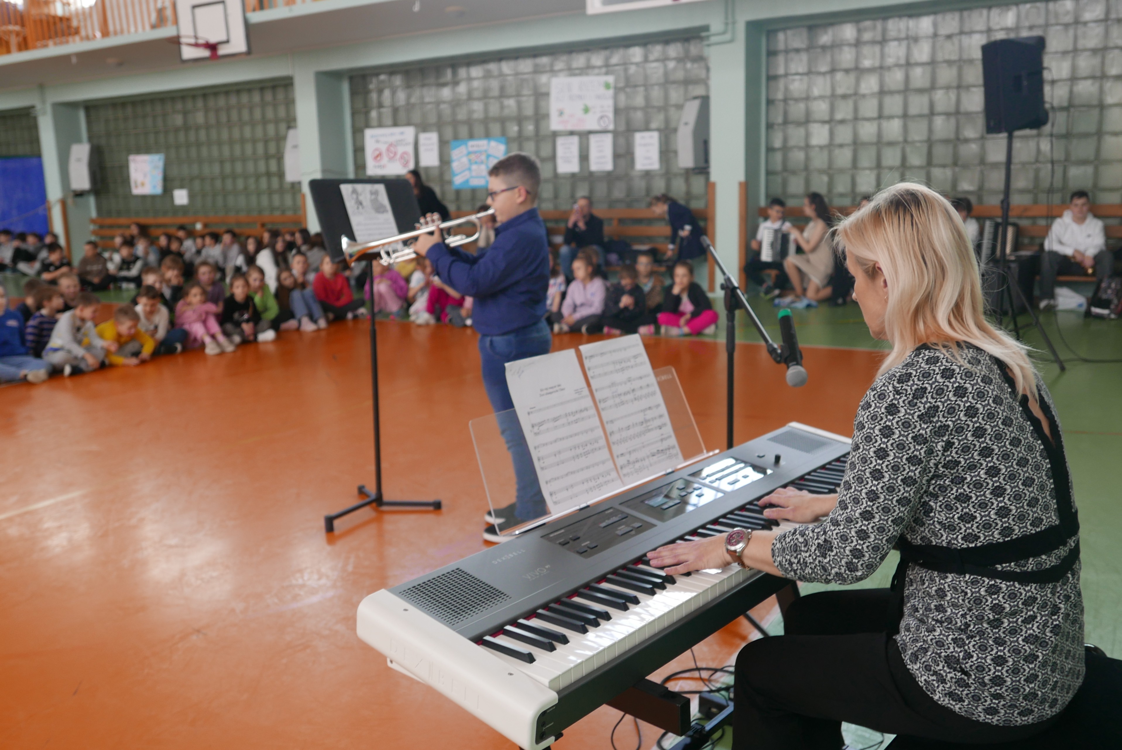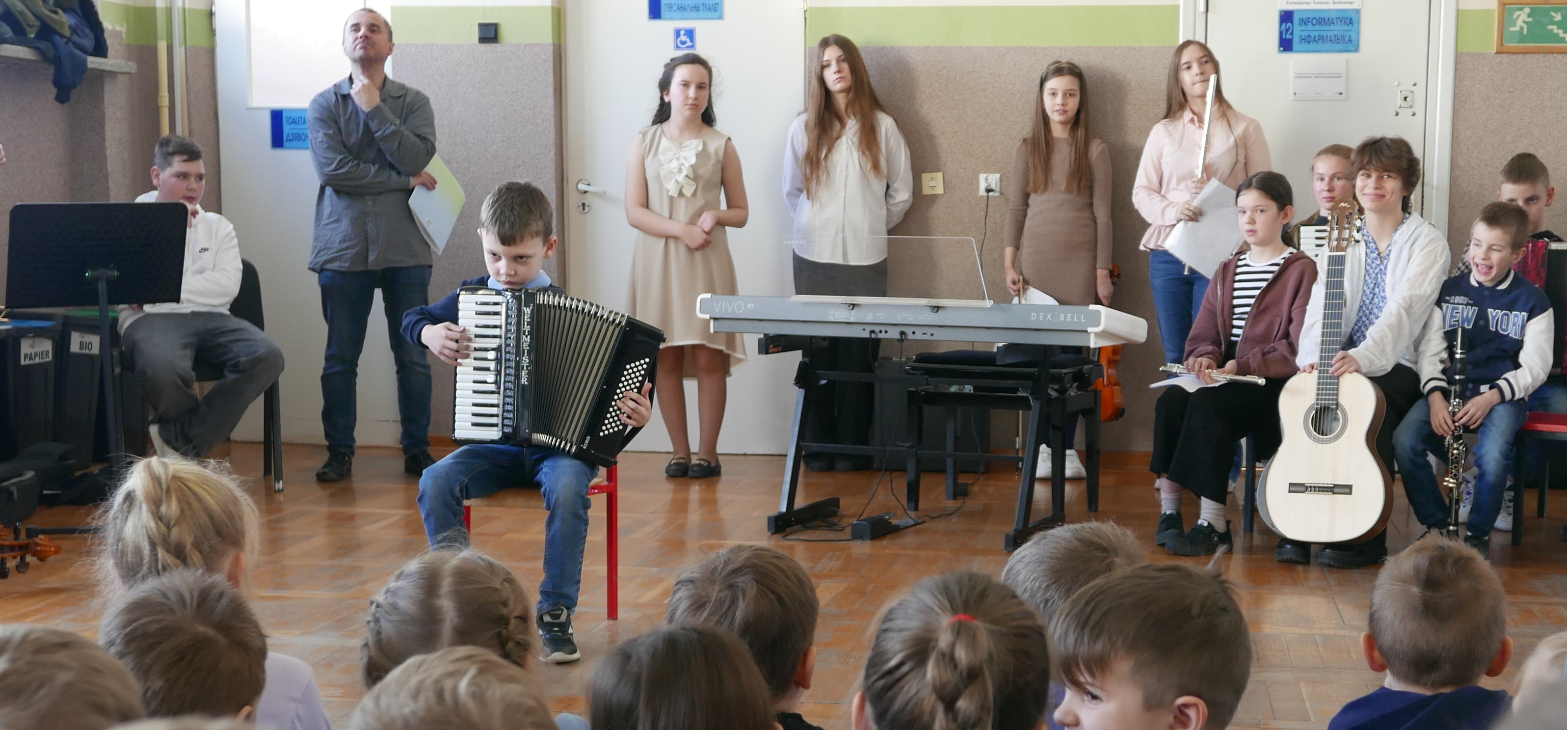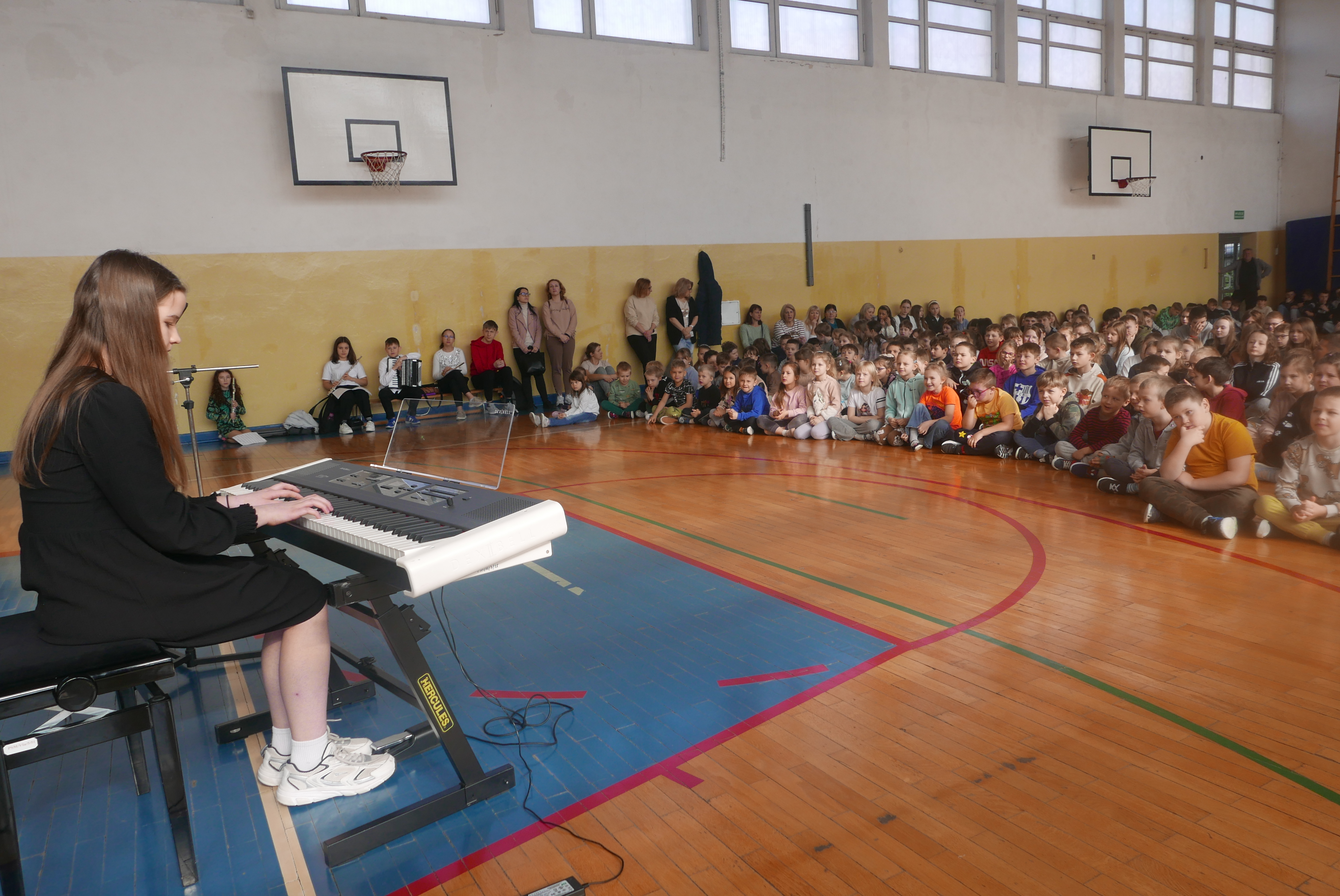 Właśnie rozpoczęliśmy cykl koncertów w bielskich podstawówkach, by zachęcić dzieci i młodzież do nauki w szkole muzycznej. I tak, 8 kwietnia 2025r uczniowie PSM I stopnia mieli bardzo pracowite przedpołudnie. Już o godz. 8.55, w Szkole Podstawowej nr 5 im. "Szarych Szeregów" prezentowali swoje instrumenty oraz ich możliwości brzmieniowe swoim kolegom i koleżankom ze szkoły. Następnie, o 10.45 rozpoczęliśmy koncert w Szkole Podstawowej nr 3 im. Jarosława Kostycewicza, gdzie uczniowie byli podziwiani przez swoich kolegów i koleżanki oraz nauczycieli. Ostatni koncert odbył się w Szkole Podstawowej nr 2 im. Kpt. Wł. Wysockiego. W tejże Szkole również uczniowie z zachwytem wysłuchali prezentacji uczniów szkoły muzycznej. Wszystkie koncerty poprowadził p. Wiesław Doliński, który w bajeczny sposób opowiadał o szkole muzycznej, instrumentach a nawet o samej muzyce. „Smyczkowcom oraz dęciakom” akompaniowała p. Magdalena Włodarczyk i p.Jan Mlejnek. O wizerunek w postaci fotografii zadbał p. Bogdan Drozdowski.