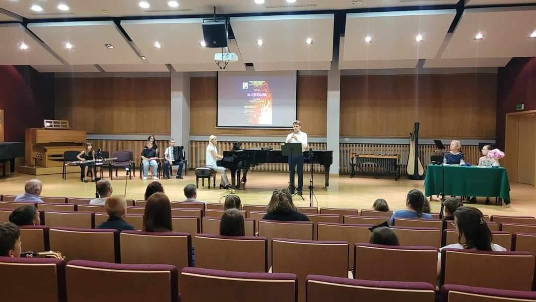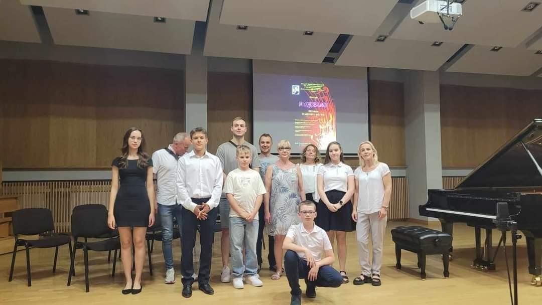 28 maja 2024r, w Zespole Szkół Muzycznych w Białymstoku odbyło się Muzykobranie. Na scenie reprezentowali naszą szkołę: Ksenia Kobzar - skrzypce, Maciej Klinicki-trąbka, Mikołaj Kostiuczuk - perkusja, Paweł Bahatsel - akordeon oraz Zofia Dudar - flet poprzeczny. Przy fortepianie p. Magdalena Włodarczyk. Nasi uczniowie tym razem prezentowali się przed uczniami z innych szkół muzycznych I st - z Zambrowa, Grajewa, Sokółki oraz z Białegostoku. Po swoich występach zasiedli na widowni i słuchali, jak grają ich rówieśnicy z innych szkół. Grali uczniowie najlepsi i bardzo nas cieszy, że poziom był wyrównany!