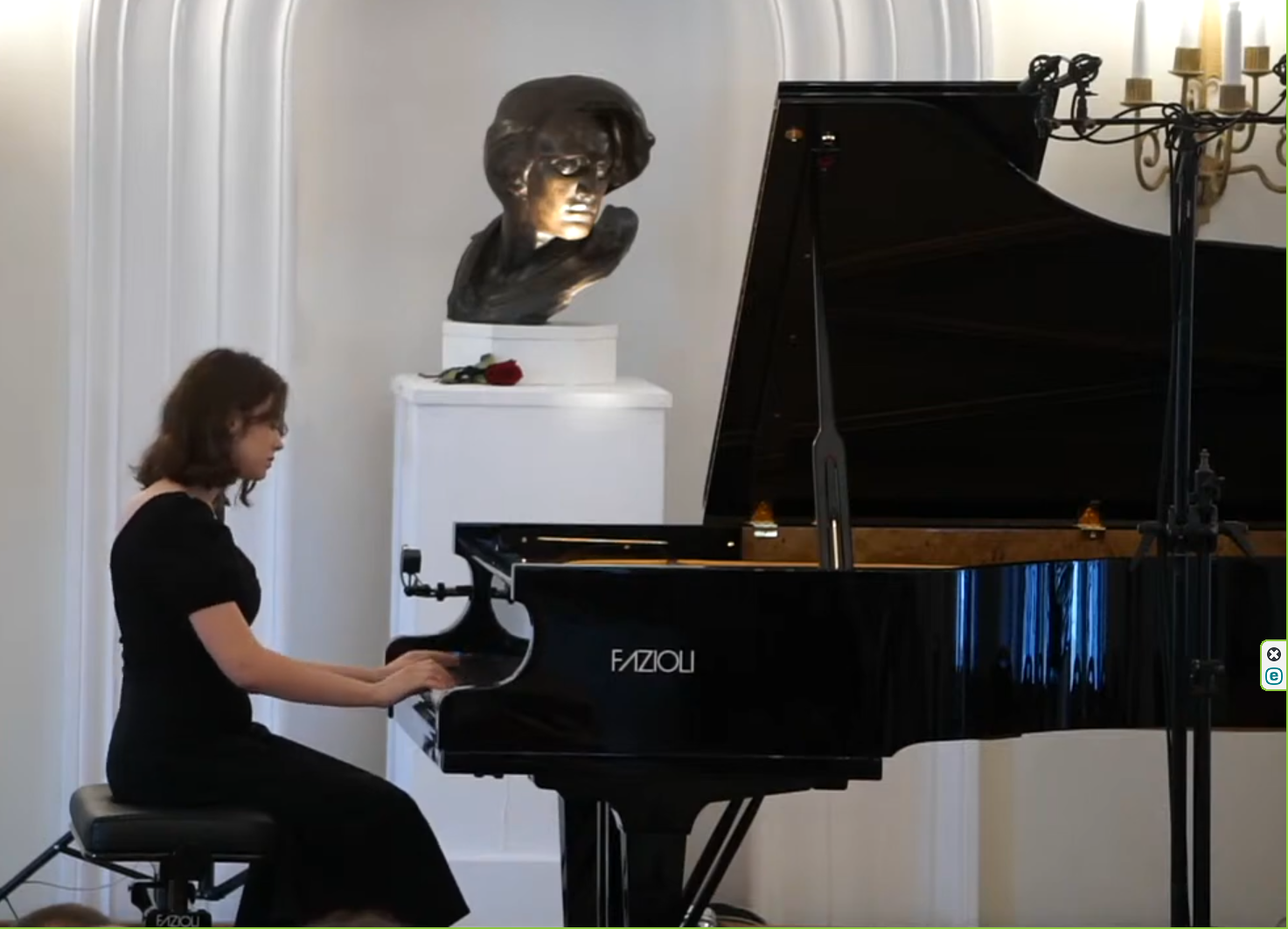 Uczennica naszej szkoły Ksenia Zinkiewicz miała zaszczyt uczestniczyć w tym wydarzeniu. W jej wykonaniu zabrzmiał chopinowski "Mazurek g-moll op. 67 nr 2". Brawa dla Kseni za to że wytąpiła w tak renomowanym miejscu i w zacnym towarzystwie młodych pianistów.