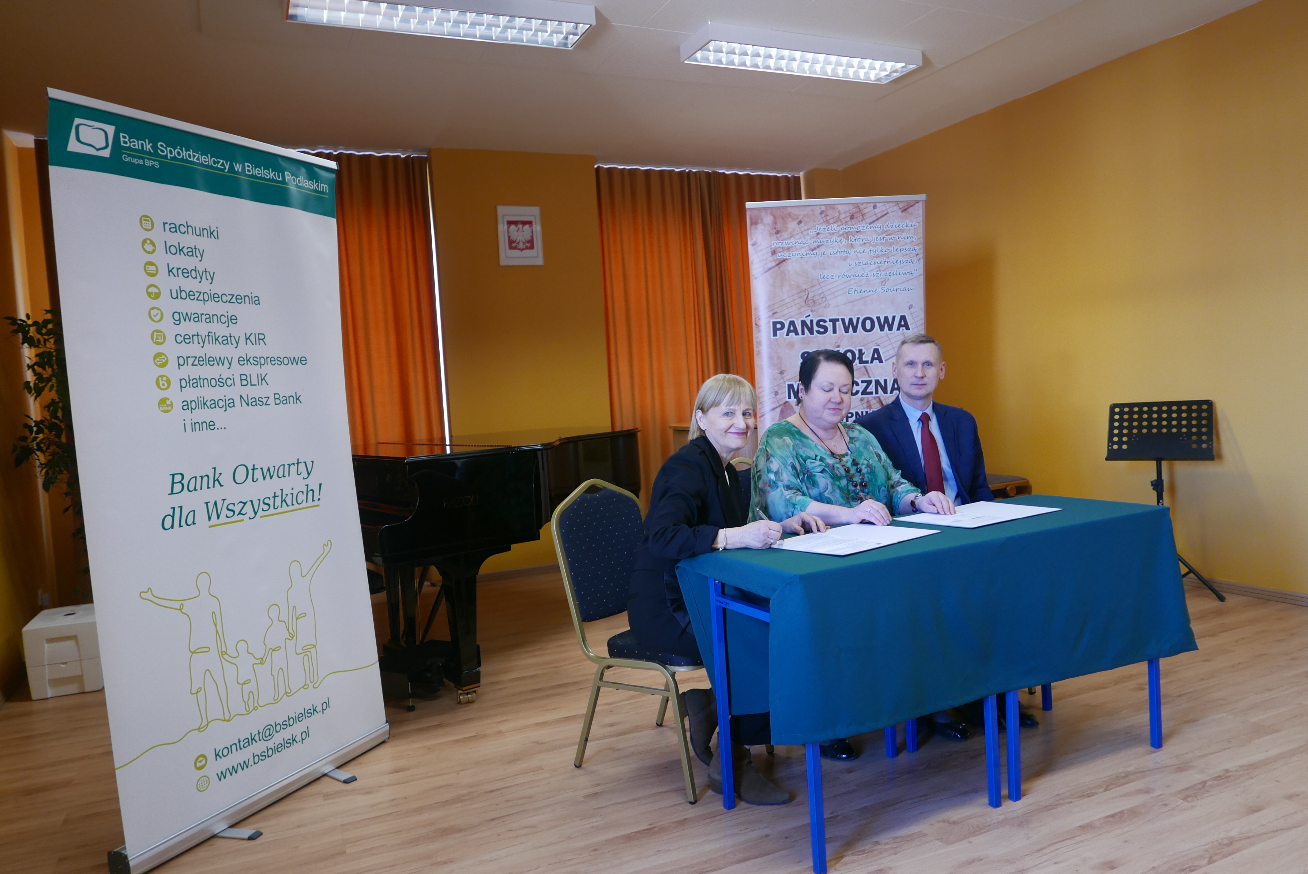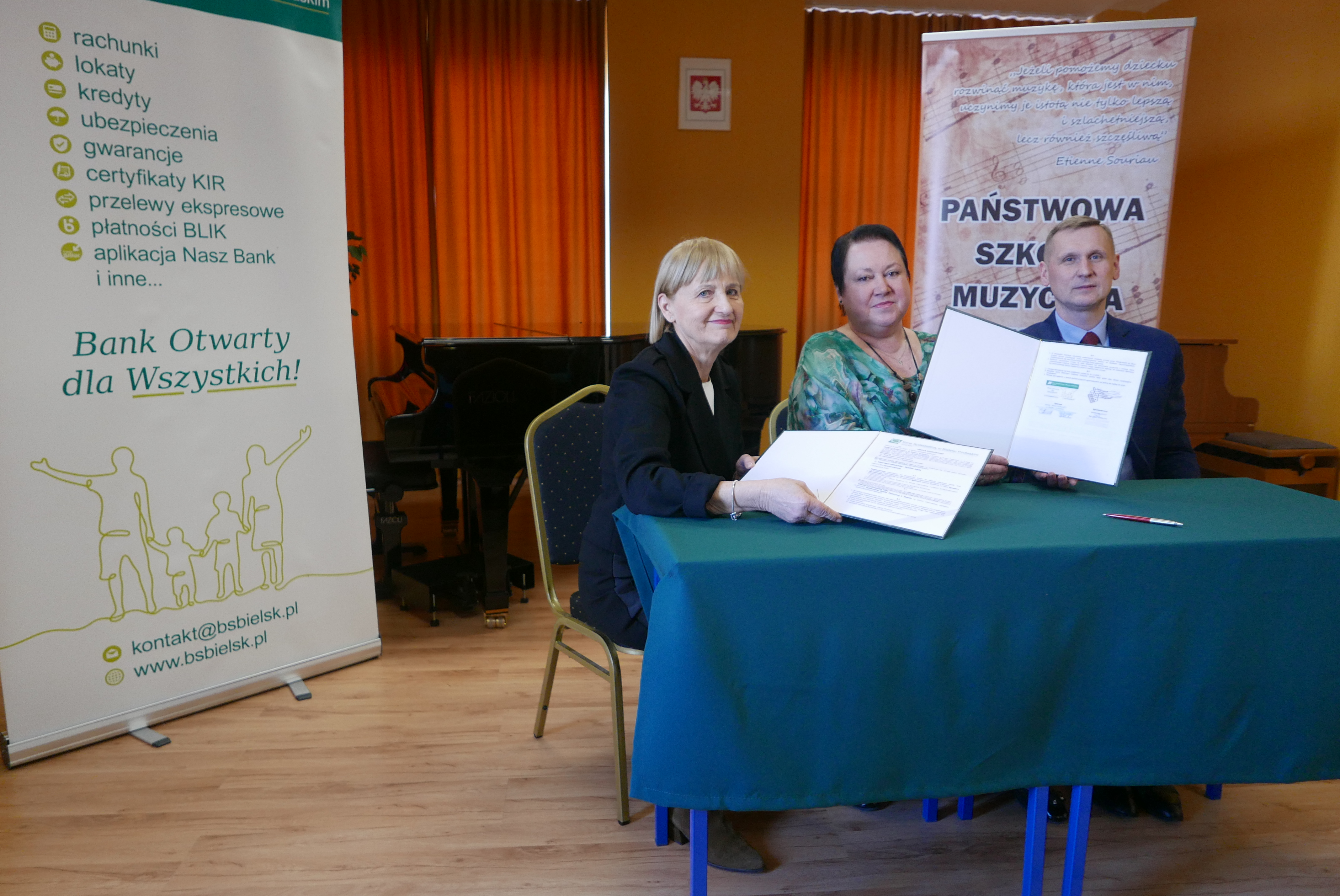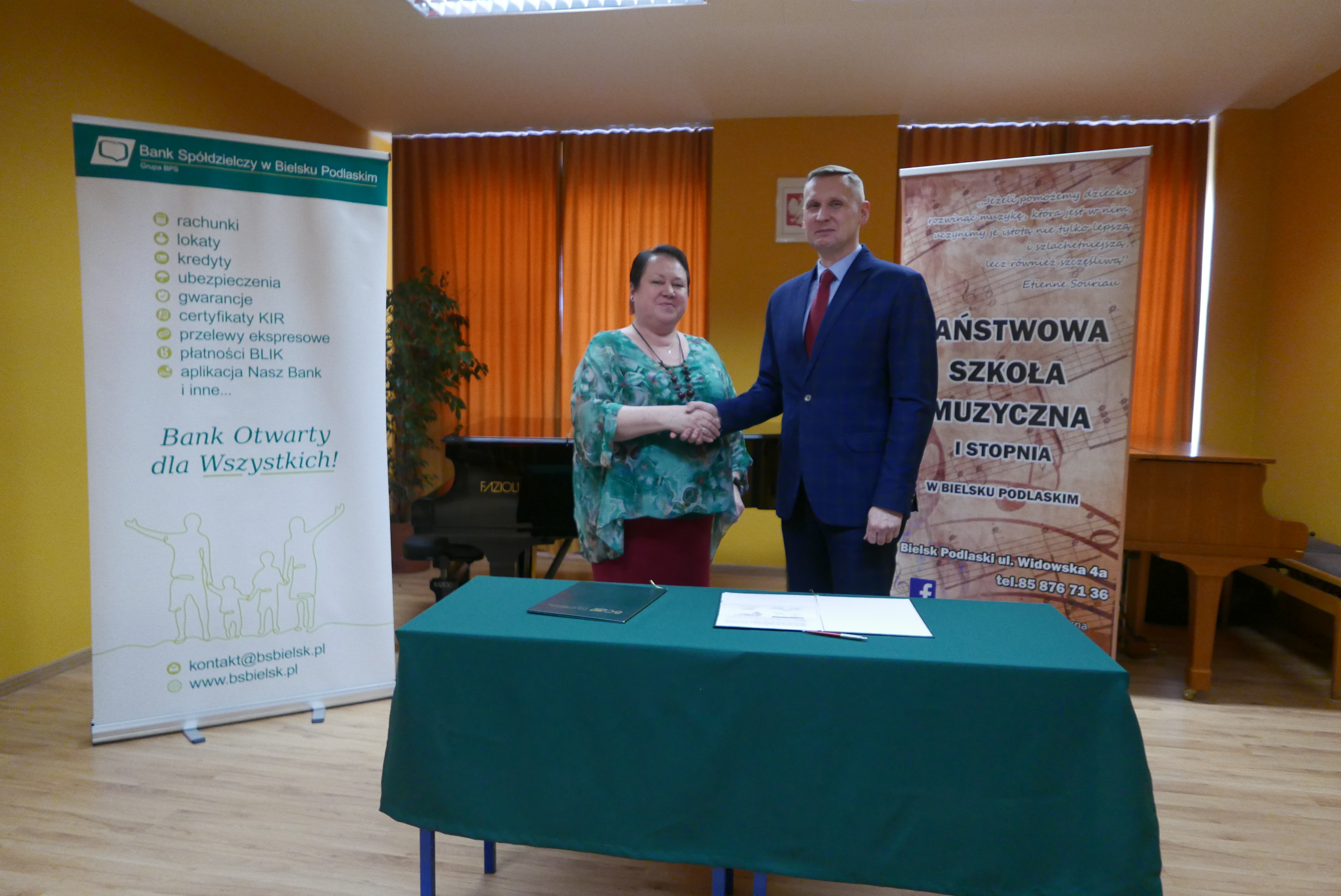 To już kolejny rok, kiedy nasz Partner Strategiczny - Bank Spółdzielczy w Bielsku Podlaskim wspiera finansowo naszą szkołę. W dniu 26.02.2026 r. została podpisana umowa sponsorska w obecności Pani Dyrektor Szkoły Edyty Lebieżyńskiej, Prezesa Banku Spółdzielczego Pana Piotra Bobla i Wiceprezes Banku Pani Mirosławy Łysiuk. Dziękujemy w imieniu społeczności szkoły za szczodrość i okazane wsparcie.