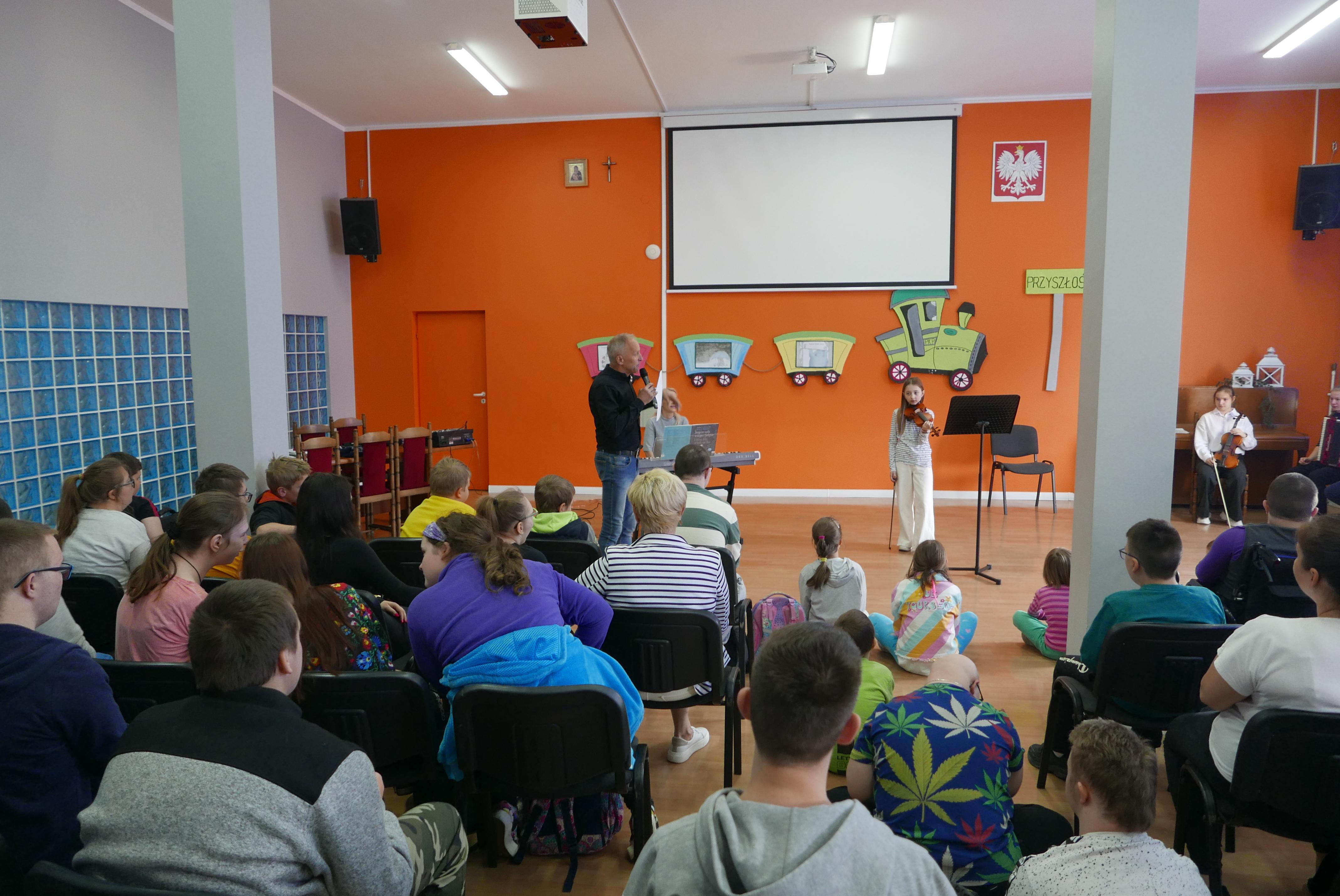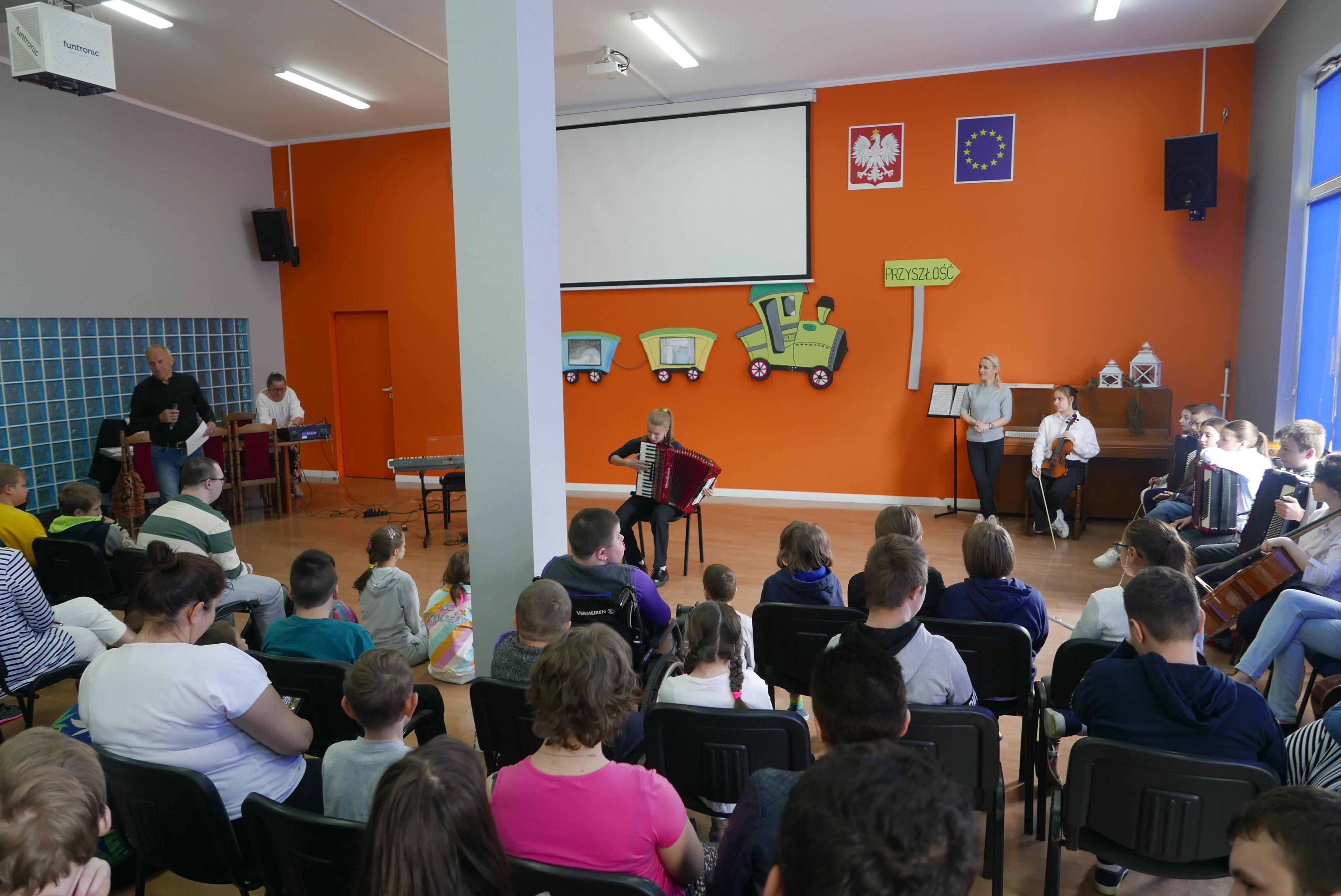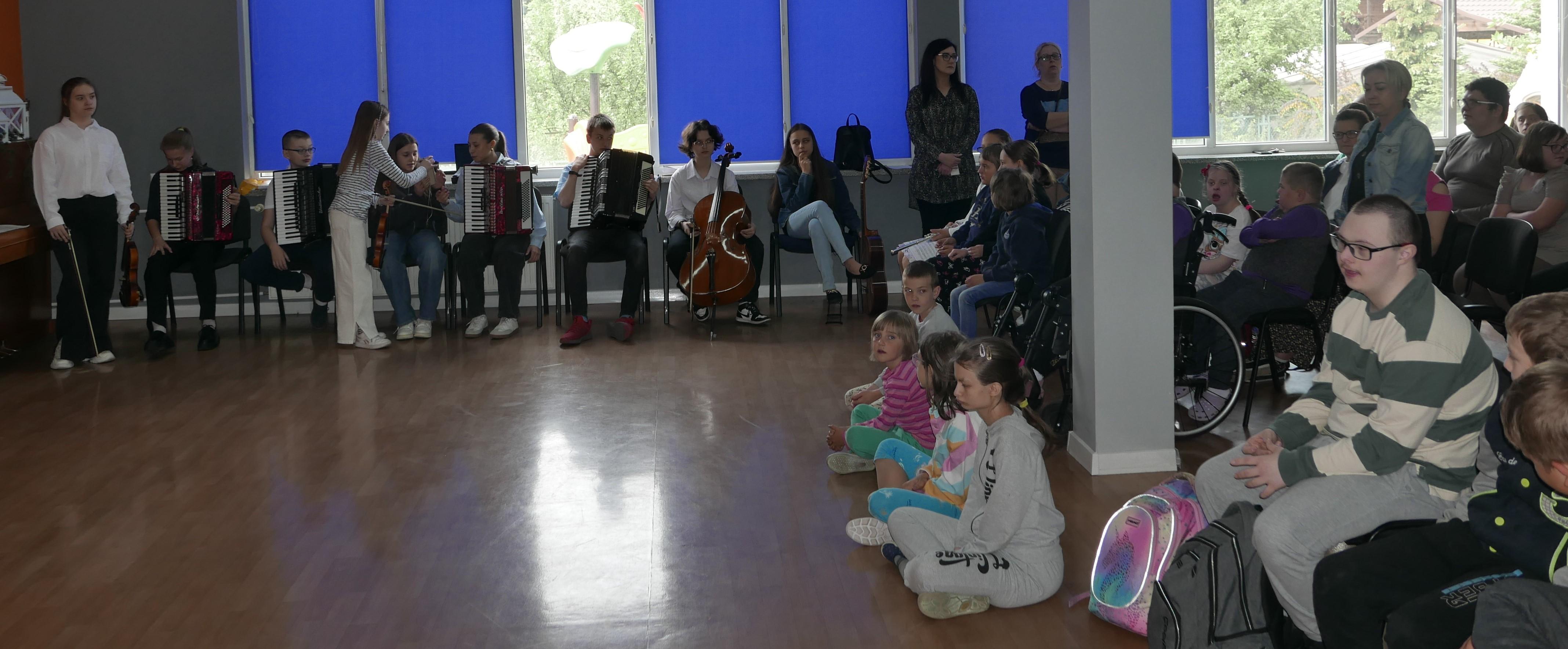 10 maja 2024r. uczniowie PSM I st. mieli bardzo koncertowy poranek. Już o godz. 9.00 zawitaliśmy do uczniów i nauczycieli Zespołu Szkół Specjalnych im. Jana Pawła II. Słuchacze byli bardzo zafascynowani muzyką klasyczną wykonywaną przez naszych "młodych muzyków”. Z ogromnym zainteresowaniem słuchali również opowieści o instrumentach oraz utworach, które rozbrzmiewały w Zespole Szkół Specjalnych. Prowadzący koncert- p. Wiesław Doliński urozmaicał swoje muzyczne opowieści rozmaitymi ciekawostkami. Na twarzach słuchaczy promieniowały cudowne uśmiechy! Dziękujemy Dyrekcji oraz gronu pedagogicznemu za tak ciepłe przyjęcie nas w swoich murach!