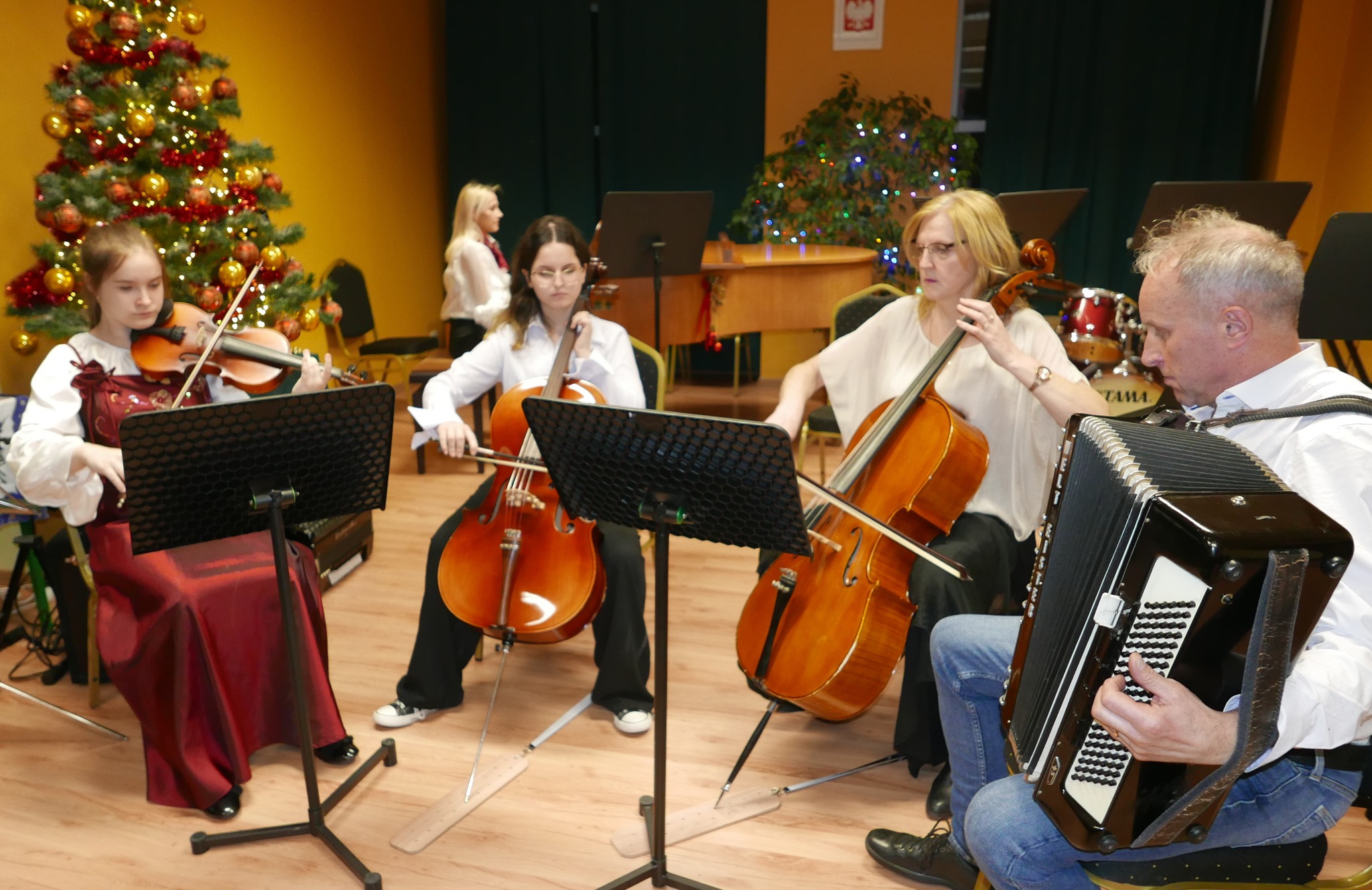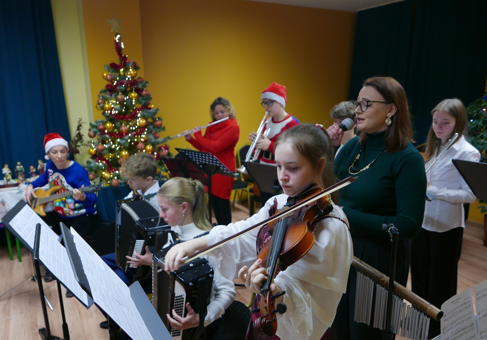 Podzielmy się opłatkiem i prosforą przy wigilijnym stole, obdarzy się radością wielką i dobrym, ciepłym słowem"! 21 grudnia 2023 roku, w Państwowej Szkole Muzycznej I stopnia w Bielsku Podlaskim odbył się KONCERT BOŻONARODZENIOWY.