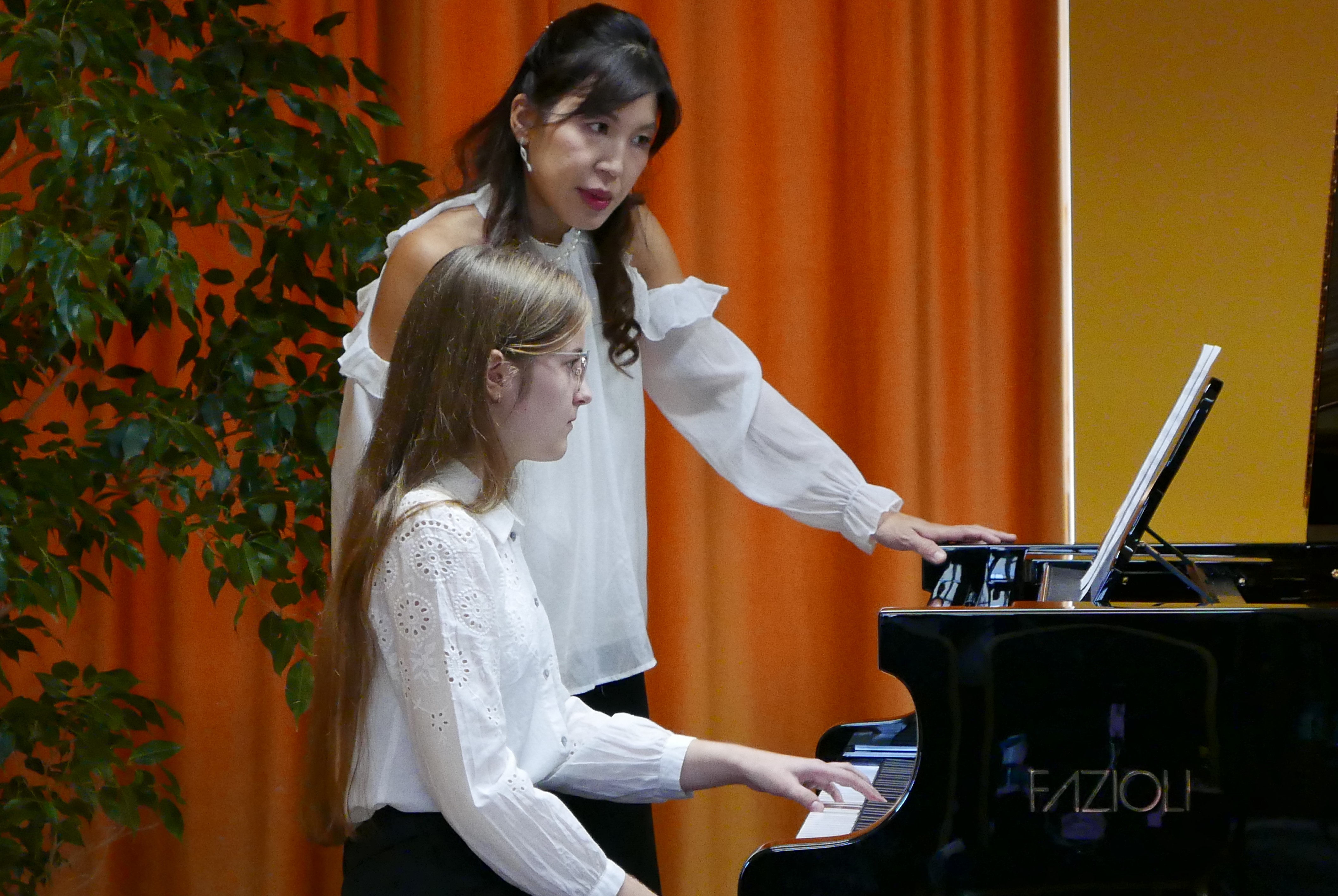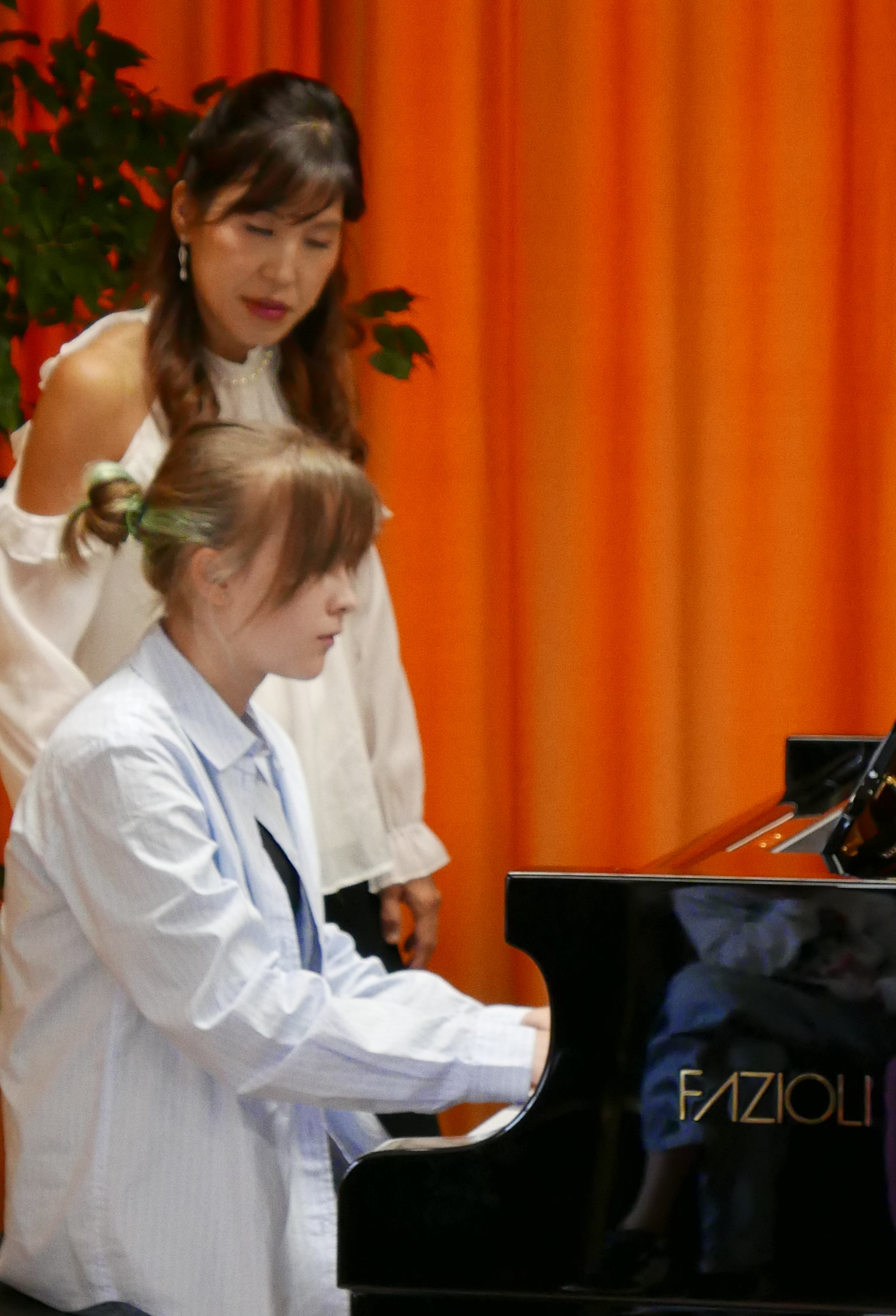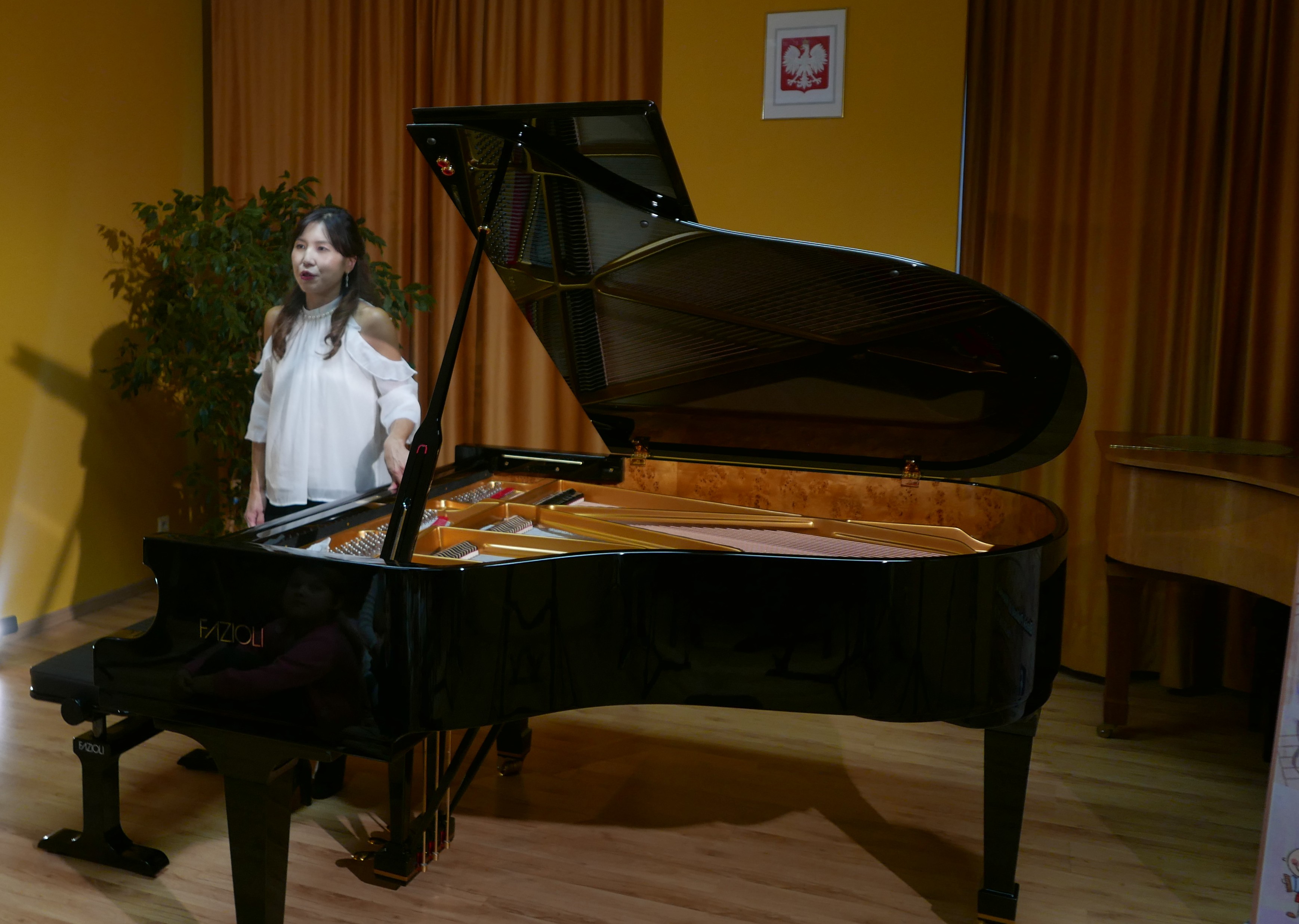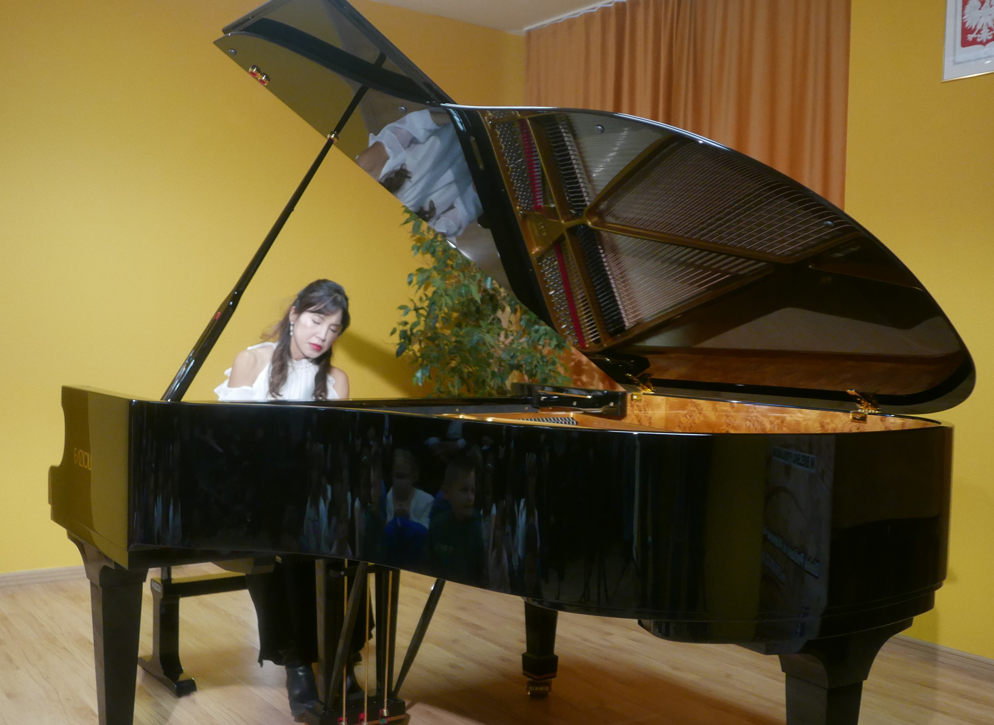 17 października 2025r. przeżyliśmy wielkie wydarzenie w ponad pięćdziesięcioletniej historii naszej szkoły. Tego dnia zawitał do nas wybitny gość, światowej sławy pianistka - Pani Rachel Naomi Kudo, która poprowadziła trzygodzinne warsztaty fortepianowe dla uczniów i nauczycieli szkół muzycznych. W warsztatach wzięli udział uczniowie: PSM I st. w Bielsku Podlaskim, PSM I st. im. Wojciecha Kilara w Siemiatyczach, Samorządowej Szkoły Muzycznej I st. w Wysokiem Mazowieckiem, a także uczestniczka I-go roku DIMK. Pani Rachel Naomi Kudo pracowała z uczniami nad utworami takich kompozytorów jak: J.S.Bach, P. Dylewski, B. Martinu, W. Lutosławski, J. Haydn oraz F. Chopin. Wszyscy uczestnicy mieli możliwość zagrania utworów w swojej interpretacji, nastepnie pod okiem wybitnej pianistki rozwinąć indywidualne zdolności, pogłębić technikę gry oraz aktywnie zaangażować się w ćwiczenia, wymianę wiedzy i doświadczeń między pianistami o różnym poziomie zaawansowania. Pracowano również nad wydobyciem pełnego i czystego dźwięku w interpretacji utworów. Zarówno uczniowie jak i nauczyciele byli pod ogromnym wrażeniem zaangażowania Pani Rachel Naomi Kudo, która z wielką precyzją pokazała, jak zdobyte umiejętności można wykorzystać w praktyce, a nad jakimi aspektami warto jeszcze popracować.