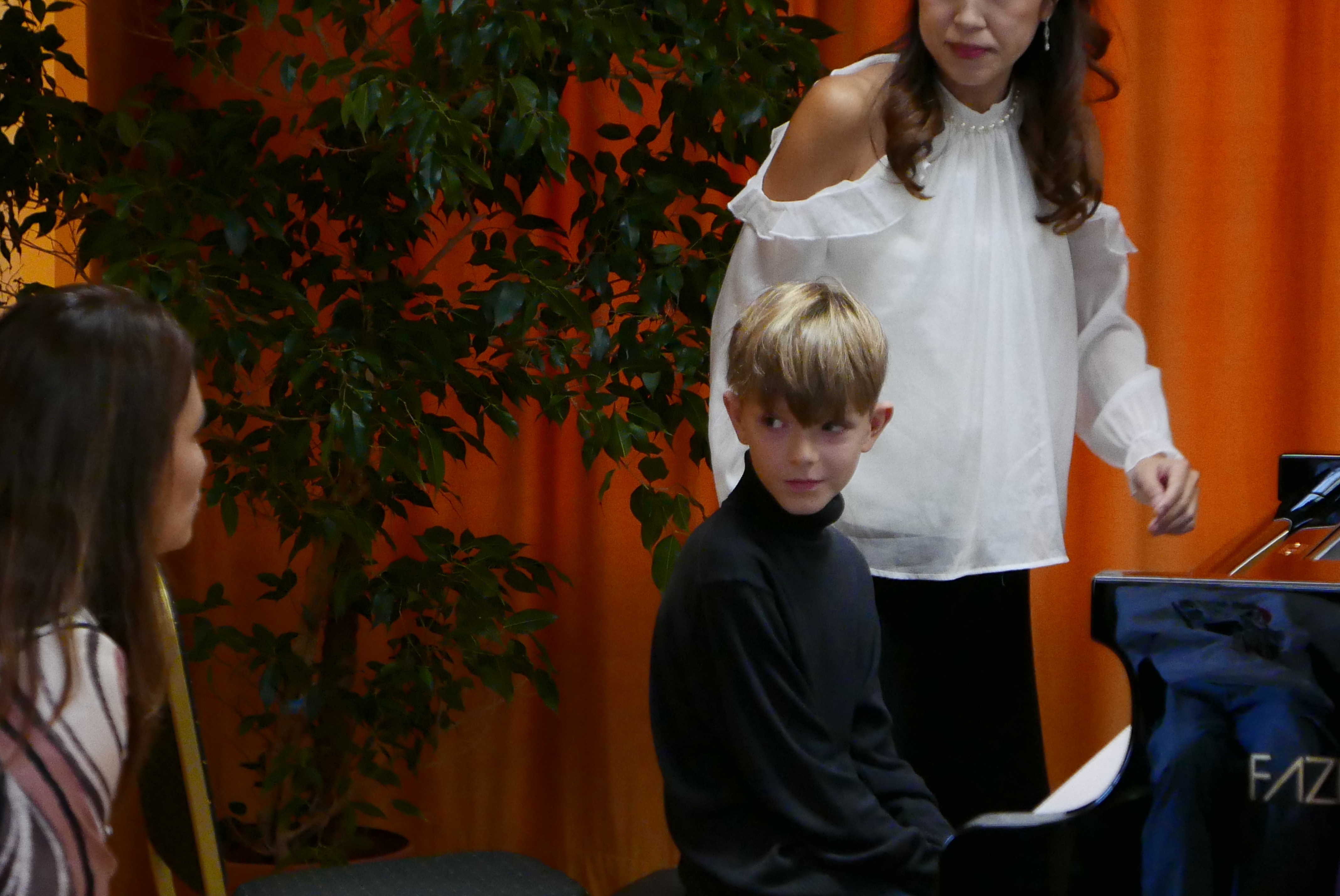 Po warsztatach i krótkim odpoczynku, pod wieczór w auli szkoły mogliśmy wysłuchać recitalu Pani Rachel Naomi Kudo. Towarzyszył jej mąż Luca Fazioli- Dyrektor firmy FAZIOLI-czołowego światowego producenta fortepianów na których grają uczestnicy XIX Międzynarodowego Konkursu Pianistycznego im. Fryderyka Chopina. Na recital przybyła nie tylko społeczność szkolna ale i zaproszeni goście: Burmistrz Miasta - Piotr Wawulski, sekretarz gminy Bielska Podlaskiego- Monika Leszczyńska, przewodniczący Rady Miasta BP - Jarosław Borowski, v-ce przewodniczący Rady Miasta - Piotr Daniło, Dyrektor Bielskiego Domu Kultury - Elżbieta Fionik, Prezes zarządu firmy Suempol - Monika Siecińska-Jaworowska, właściciel Podlaskiej Sieci Sklepów Arhelan- Mirosław Burzyński, Prezes Banku Spółdzielczego w Bielsku Podlaskim- Piotr Bobel, przedstawicielka firmy SILESIA-Gabriela Piotrowska, właścicielka Hotelu „Unibus„- Grażyna Tarasiuk, przewodniczący Rady Rodziców - Andrzej Waszkiewicz, p.Tadeusz Zalewski - rodzic naszych absolwentów oraz przyjaciel szkoły. Przybylych Gości i publiczność bardzo serdecznie powitała Dyrektor szkoły Pani Edyta Lebieżyńska. Cała aula do ostatniego miejsca zapełniona była publicznością, a część słuchaczy z braku miejsc wysłuchała recitalu na stojąco w korytarzu szkolnym, niestety obecna aula może pomieścić maksymalnie do 95 melomanów. Wysłuchaliśmy utwory takich kompozytorów, jak: J.S.Bach, F.Schubert oraz F.Chopin. Występ Pani Rachel Naomi Kudo przyciągnął uwagę wszystkich słuchaczy swoją precyzją, wrażliwością i dojrzałością interpretacyjną wybranych utworów.