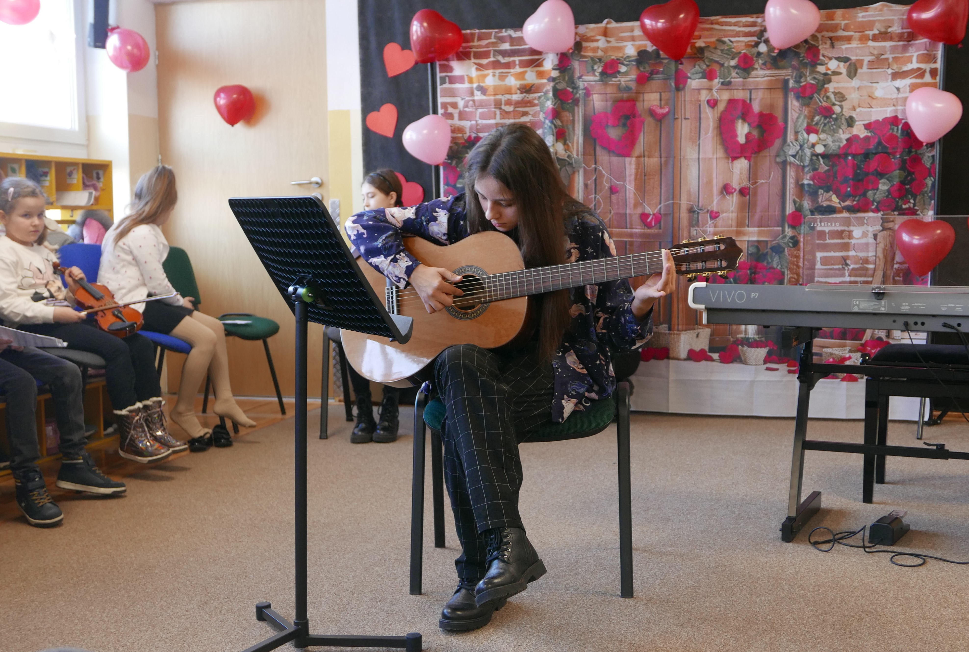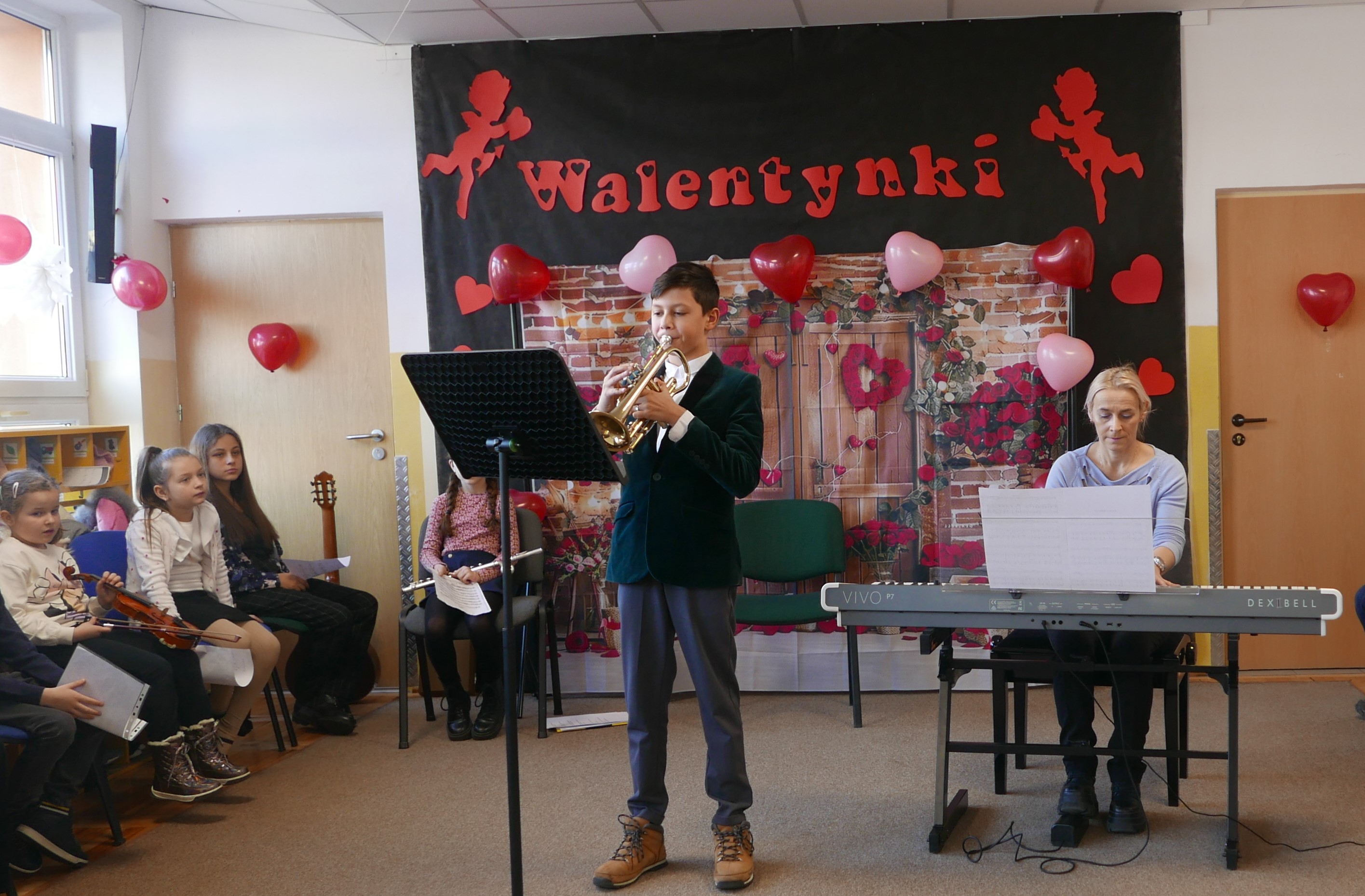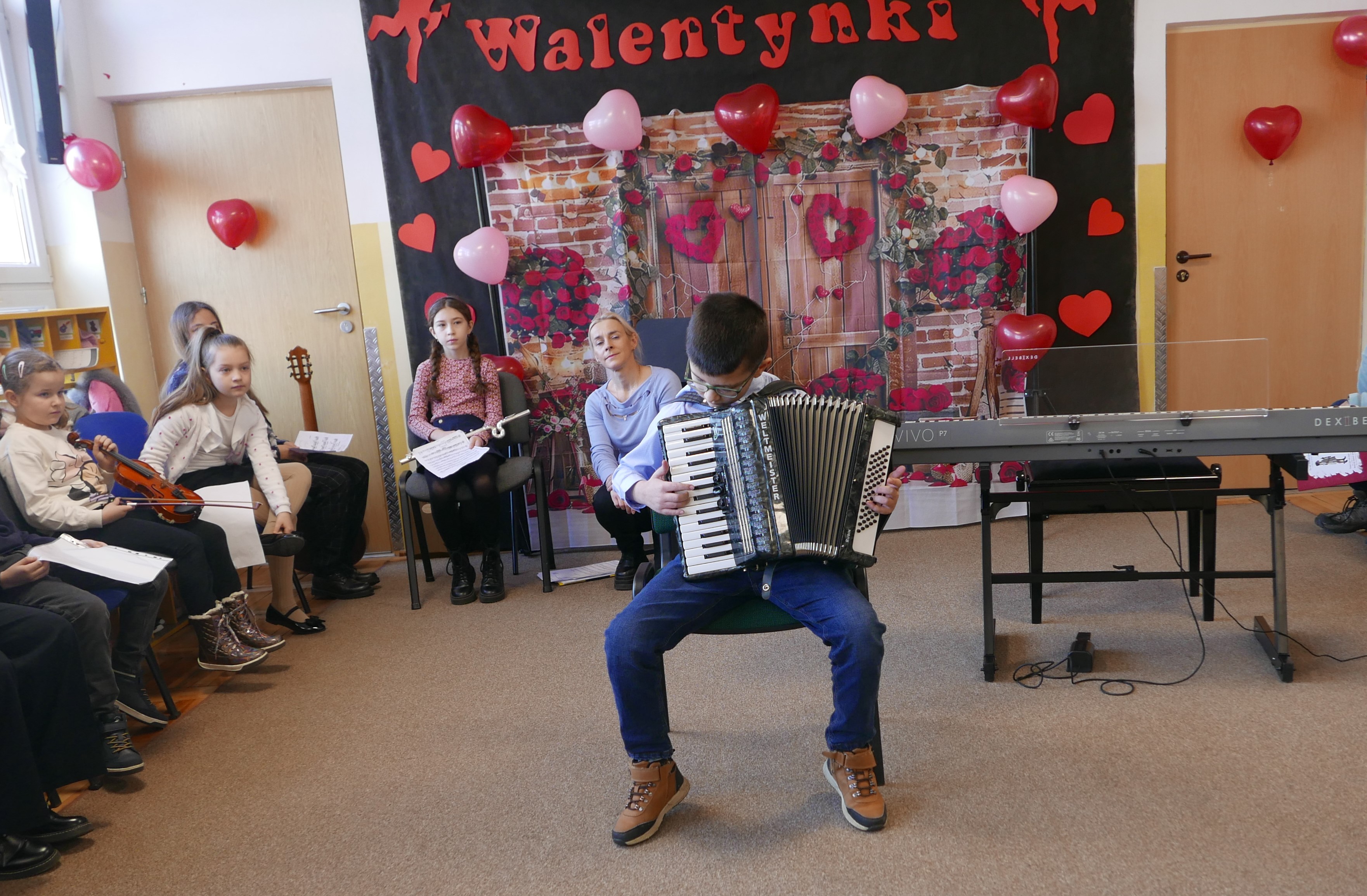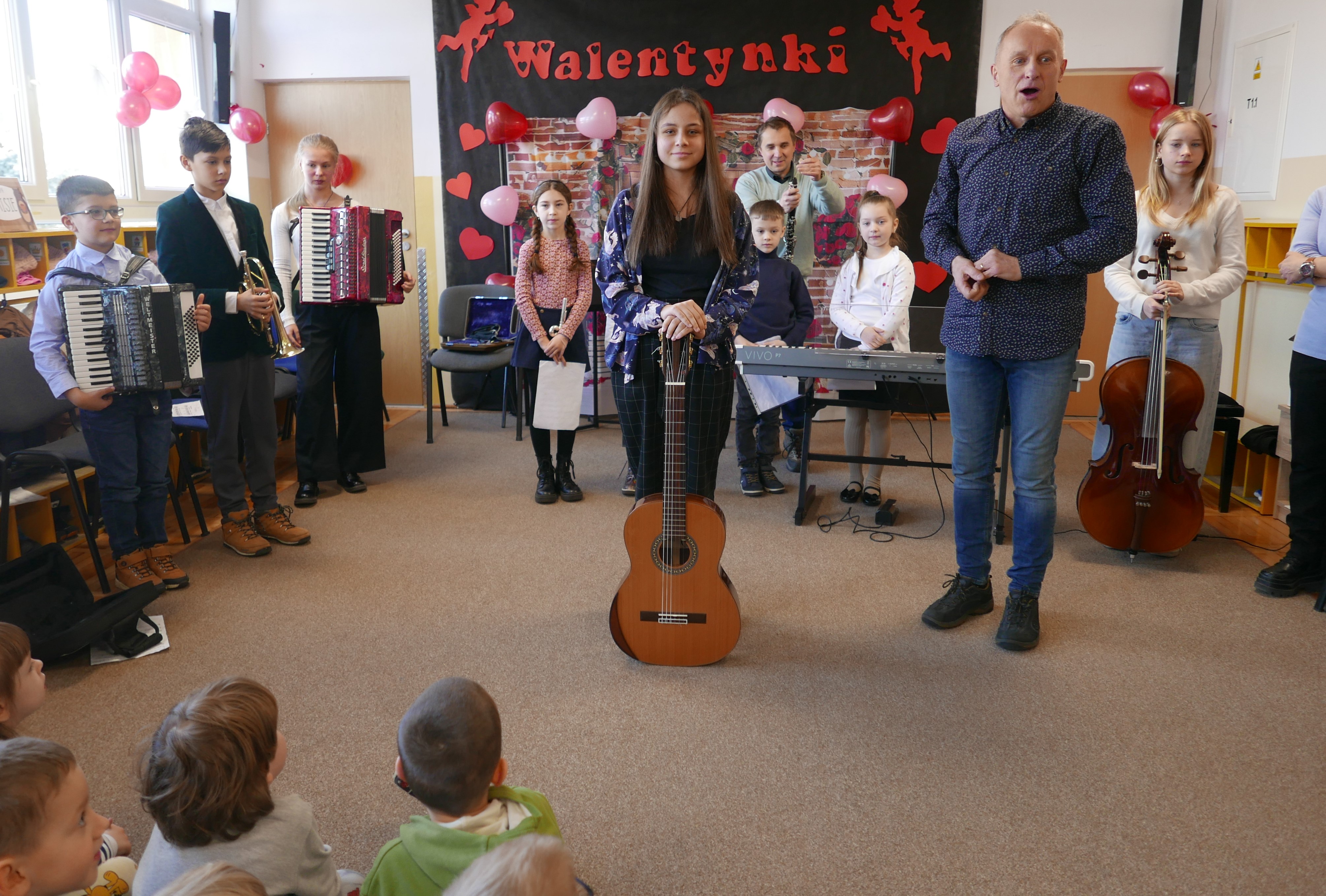 13 lutego 2025r. uczniowie PSM I stopnia w Bielsku Podlaskim koncertowali "WALENTYNKOWO" w Przedszkolu nr 3 z Oddz. Integracyjnymi w Bielsku Podlaskim. Prezentacja utworów oraz instrumentów odbywała się w bardzo romantycznej atmosferze przy dekoracji w kształcie serc!