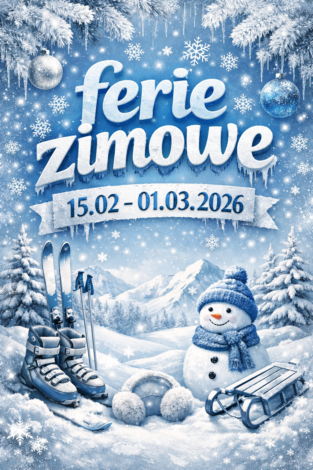 Ferie zimowe 16.02.2026 Ferie zimowe w roku szkolnym 2025/2026 trwają od 16 lutego do 1 marca 2026 r. Zdjęcia (1) Pokaż zdjęcie 1 z galerii.