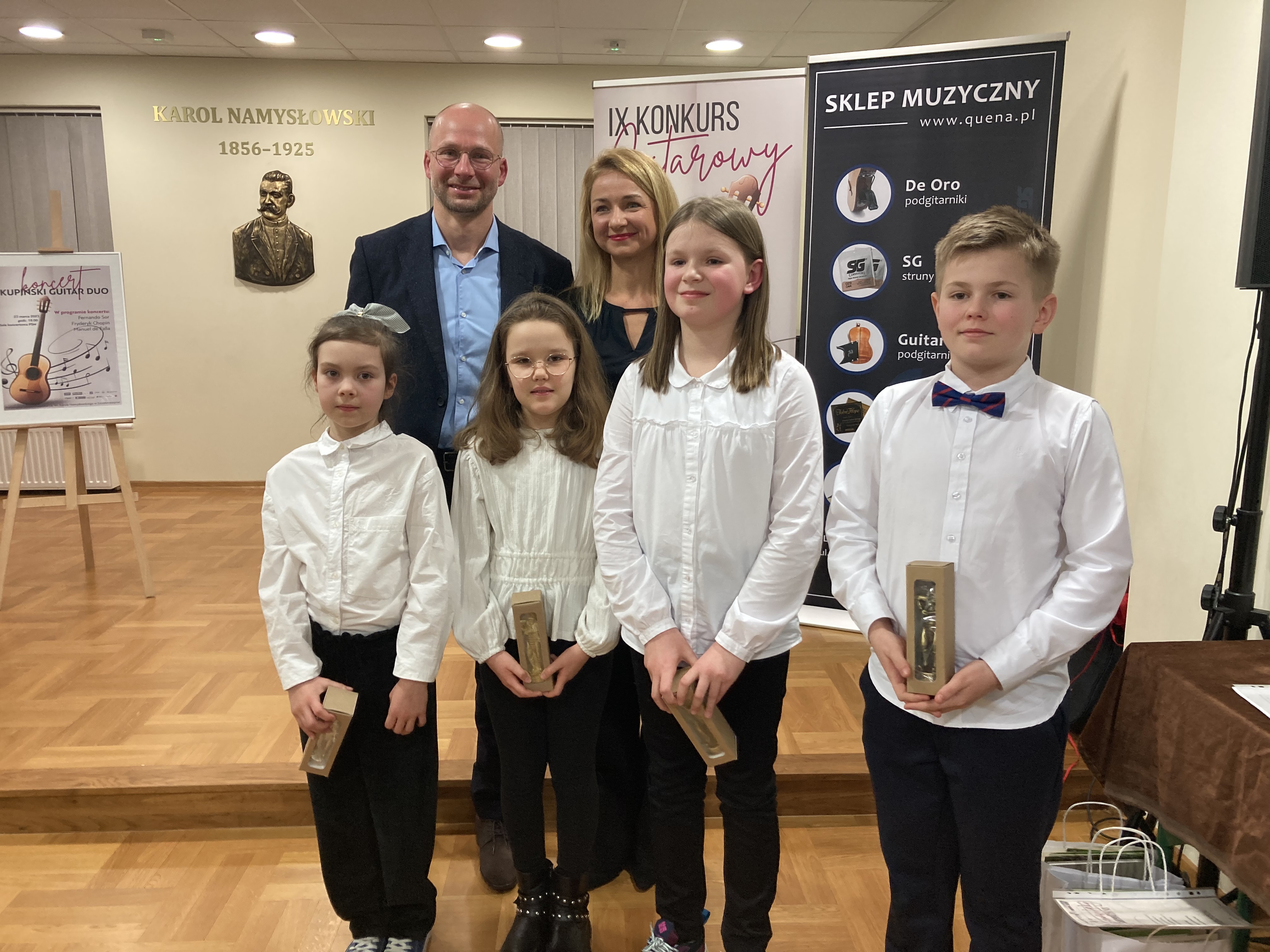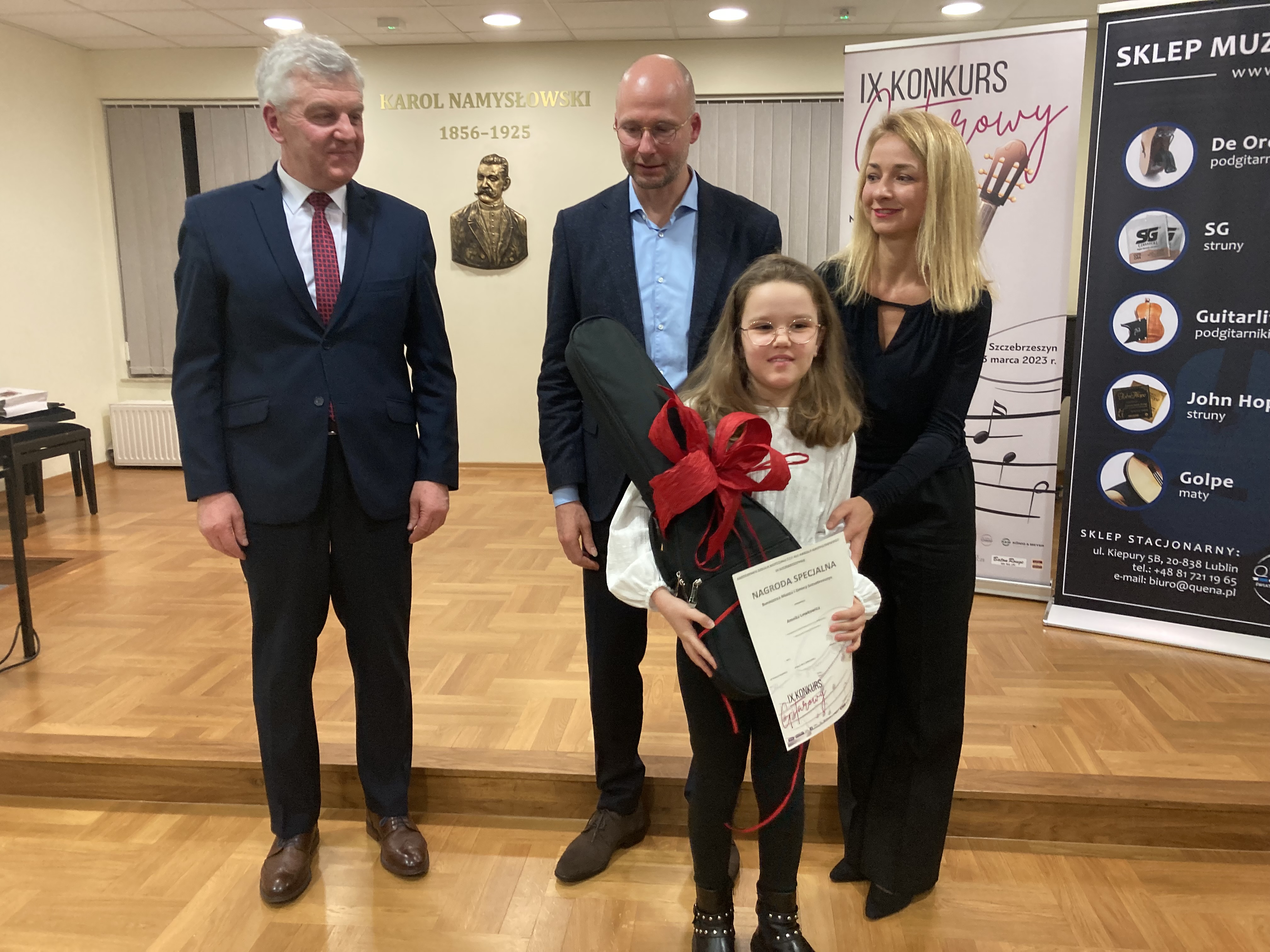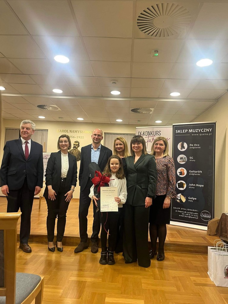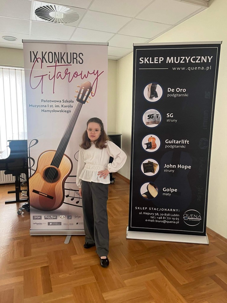 Uczniowie naszej szkoły wzięli udział w "IX Konkursie Gitarowym" w Szczebrzeszynie w dniu 23 marca 2023 r. I miejsce i Grand Prix w kategorii I zdobyła Amelia Lewkowicz uczennica klasy III/6, I miejsce w kategorii III zdobyła Pola Faryna uczennica klasy VI/6, wyróżnienie otrzymał Jeremiasz Osuch uczeń klasy IV/4. Uczniów przygotowała pani Iwona Grabowska.