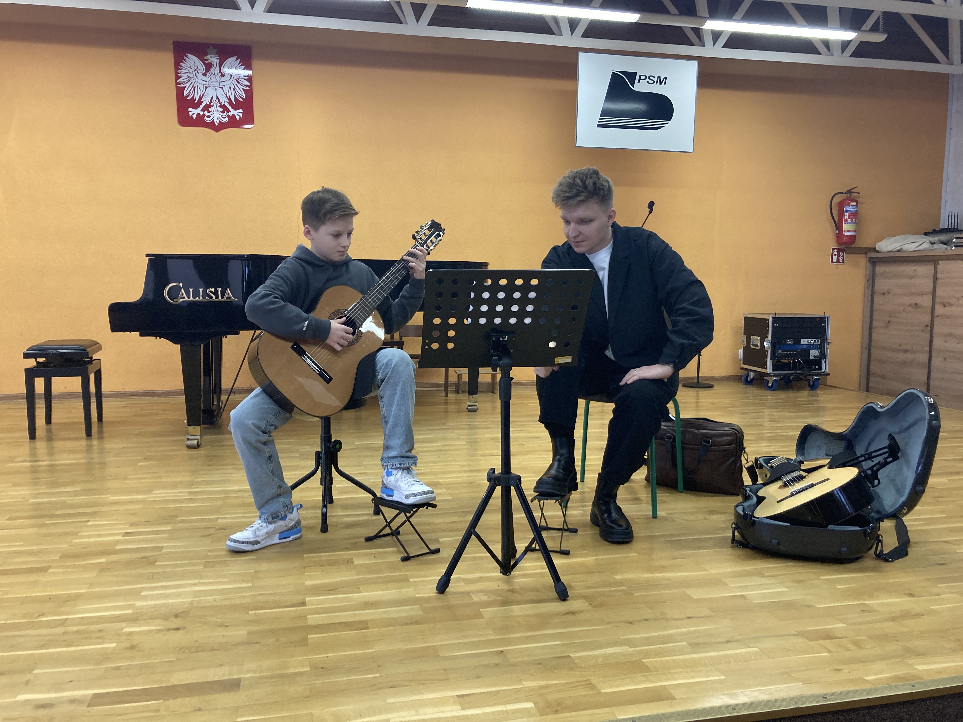 W dniu 4 lutego 2025 r. w naszej szkole odbyły się warsztaty gitarowe dla uczniów klasy gitary, które poprowadził Mateusz Kowalski - wykładowca UMFC w Warszawie.