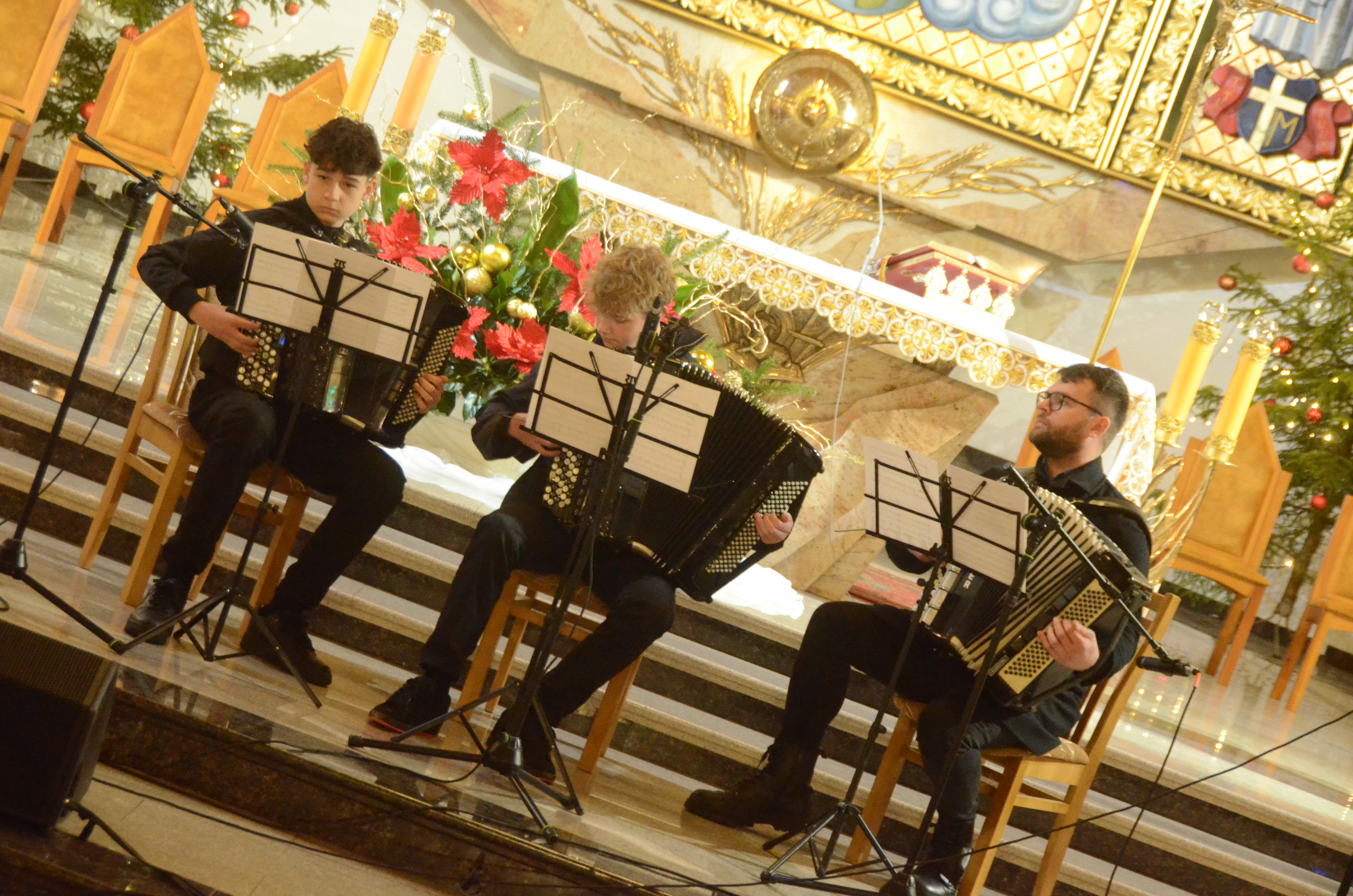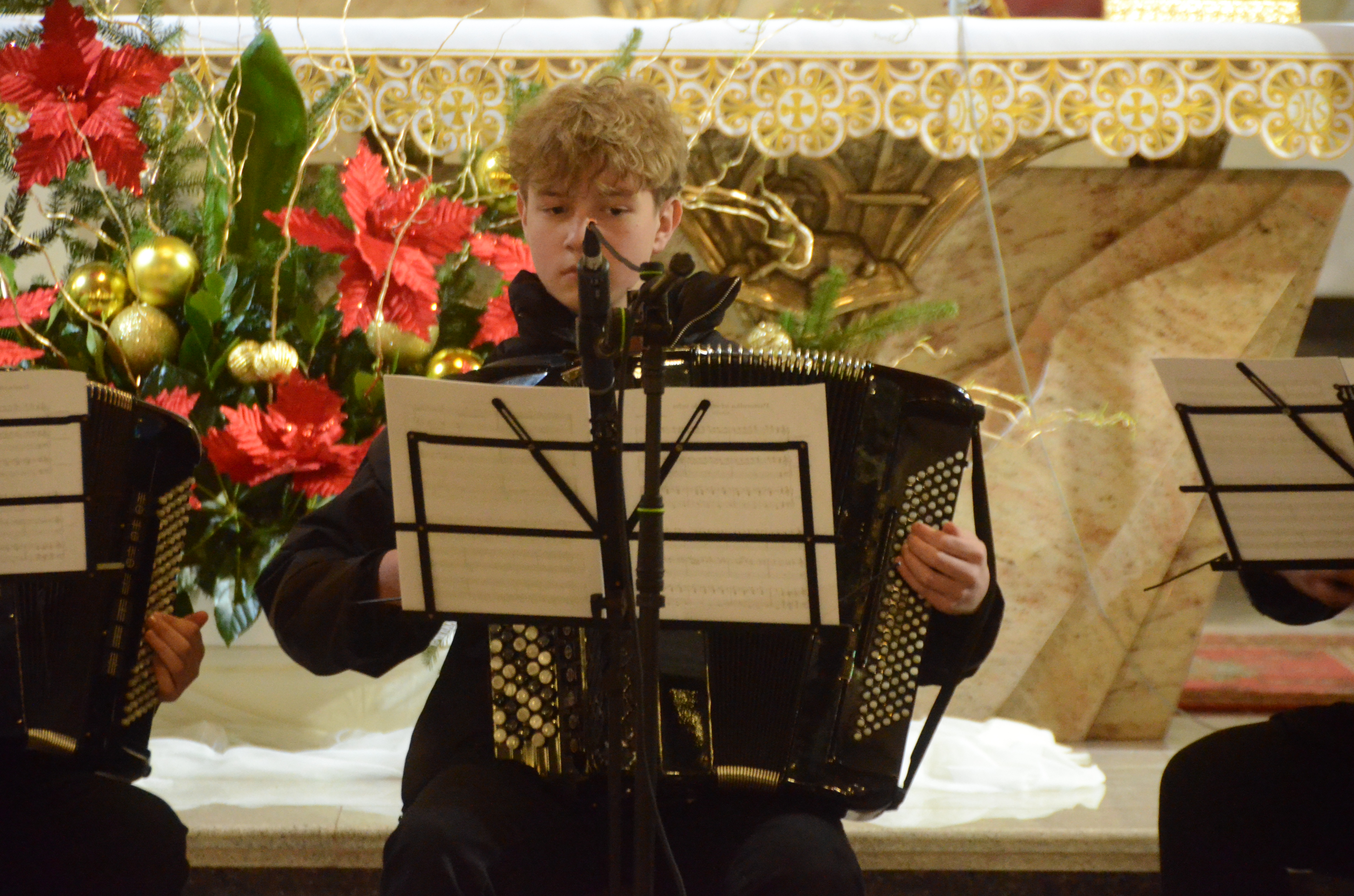W niedzielny wieczór kościół pw. Chrystusa Króla wypełnił się dźwiękami najpiękniejszych kolęd i świąteczną atmosferą, za sprawą Koncertu Kolęd w wykonaniu uczniów, absolwentów oraz nauczycieli Państwowej Szkoły Muzycznej I stopnia w Biłgoraju, zespołu Zawierucha z Młodzieżowego Domu Kultury w Biłgoraju oraz zespołu parafialnego..