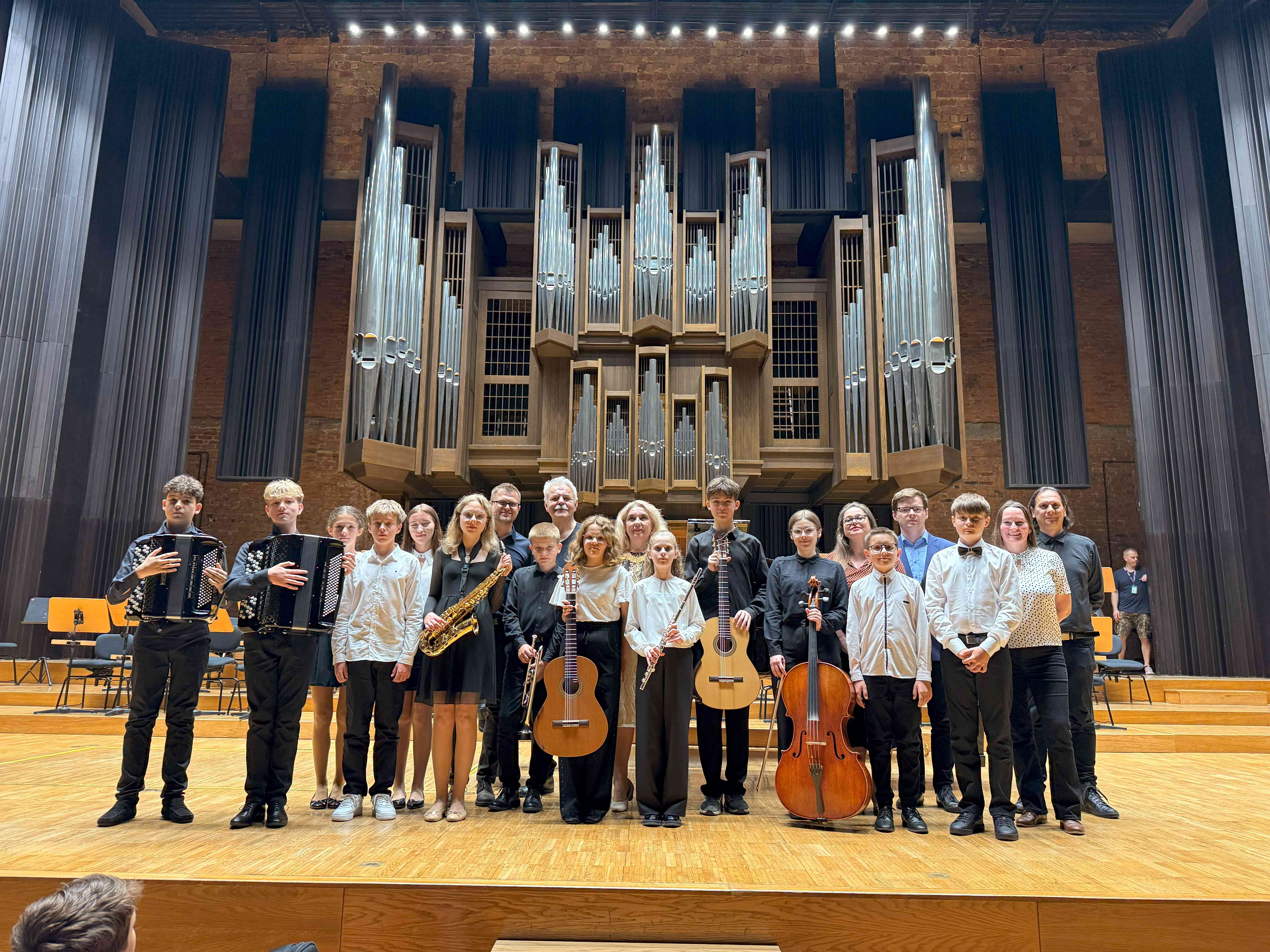 To był wyjątkowy dzień – zarówno dla uczniów, jak i nauczycieli oraz rodziców. Młodzi muzycy mieli okazję wystąpić na scenie Filharmonii Lubelskiej, miejsca kojarzonego z najwyższym poziomem artystycznym. Ich koncert stał się nie tylko ukoronowaniem wielu miesięcy ciężkiej pracy, ale też dowodem na to, że pasja, talent i determinacja potrafią zaprowadzić bardzo daleko.