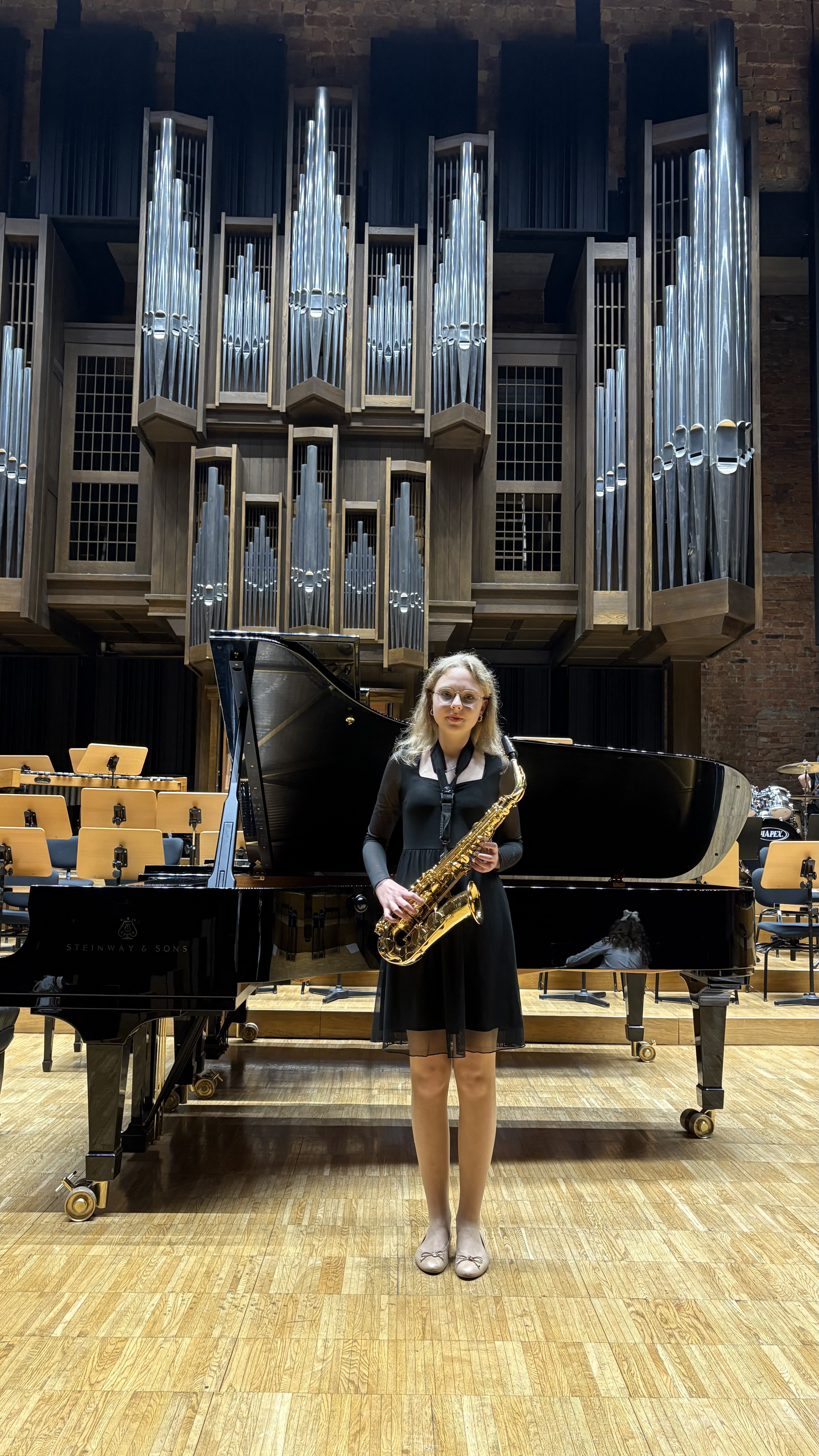 Zuzanna Kulicka z klasy IV c. 4 uczennica klasy saksofonu p. Wiesława Mazurka