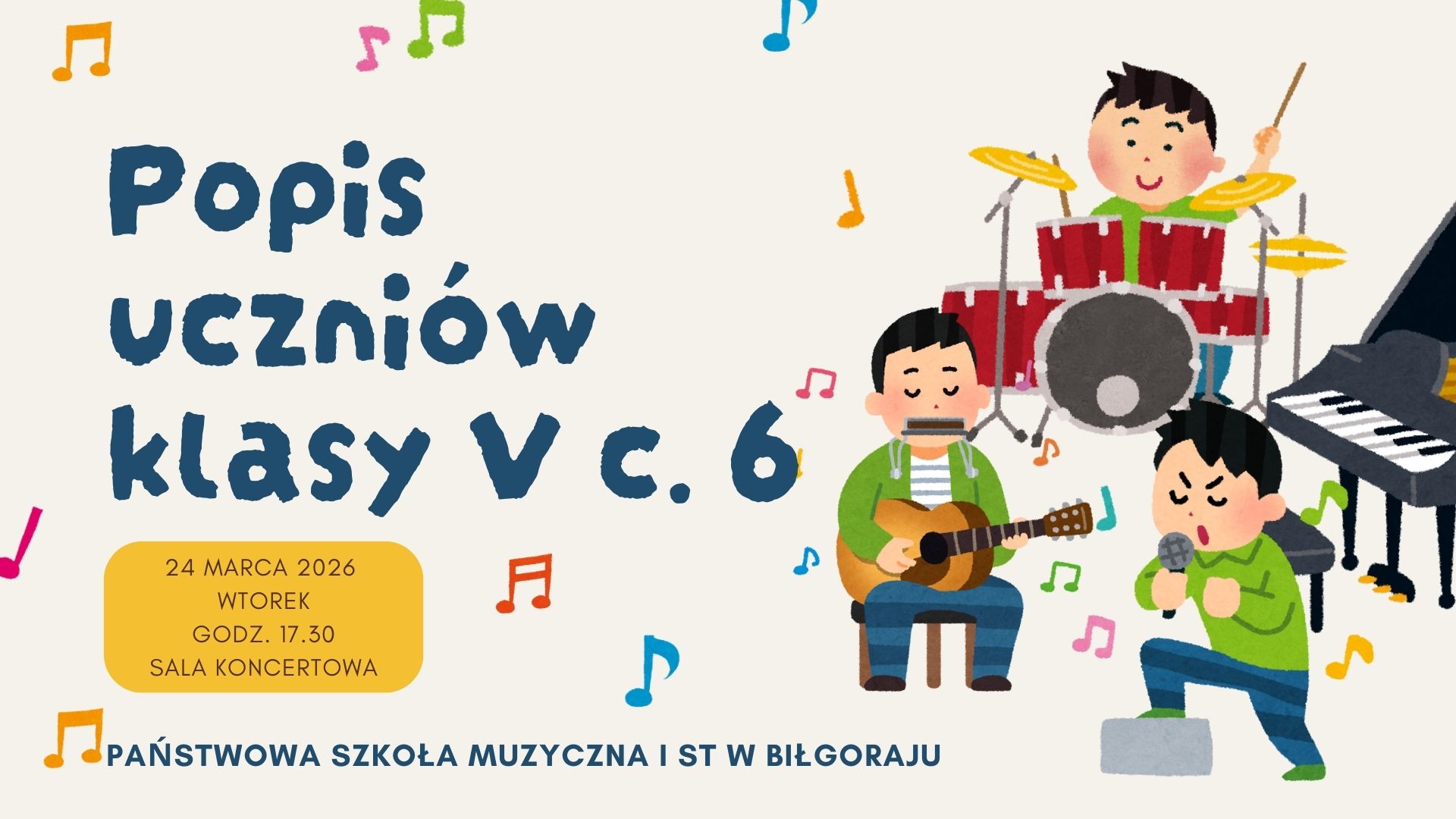 Popis klasy V c. 6 24.03.2026 Zapraszamy na popis uczniów klasy V c. 6 Zdjęcia (1) Pokaż zdjęcie 1 z galerii.