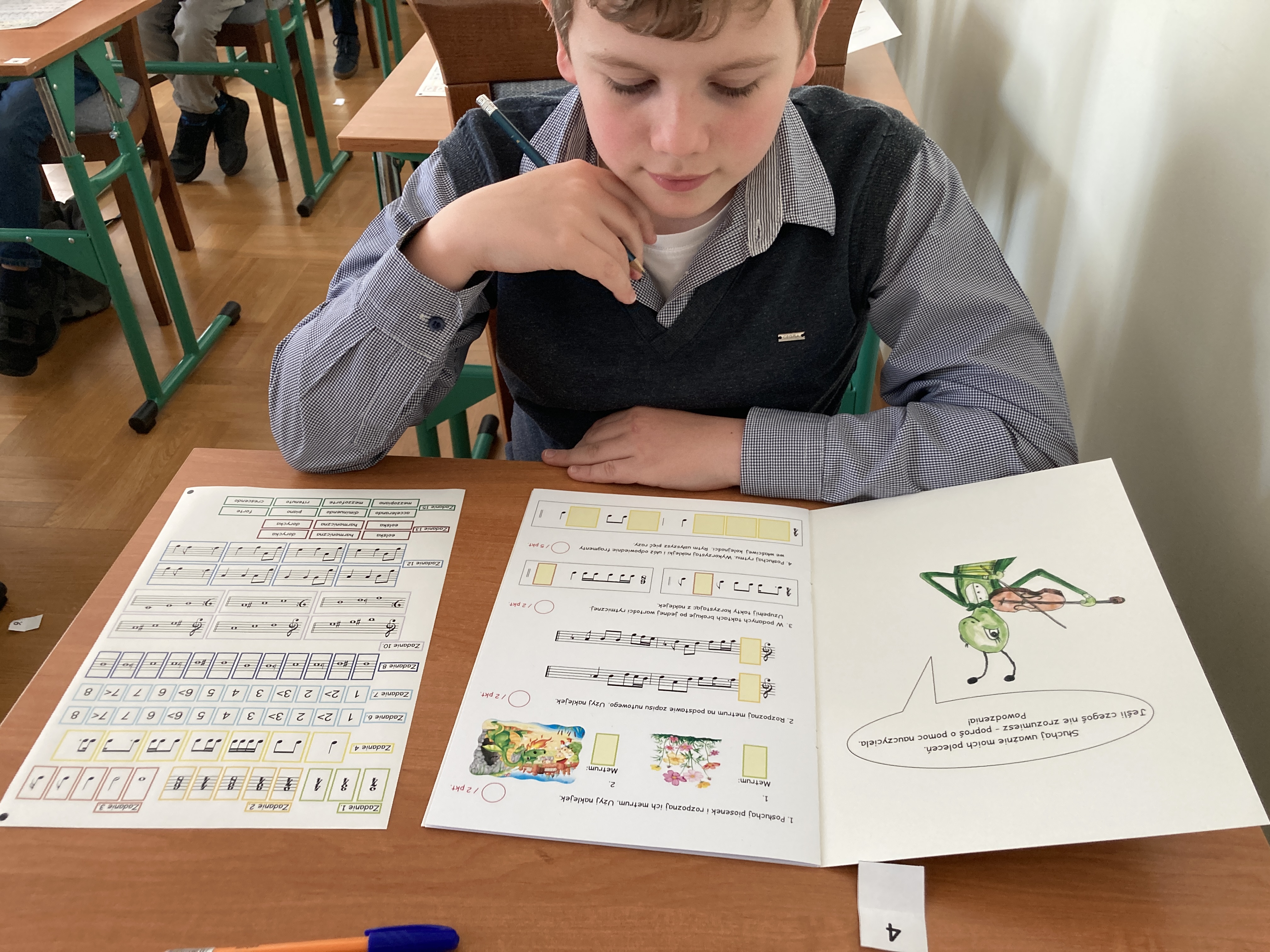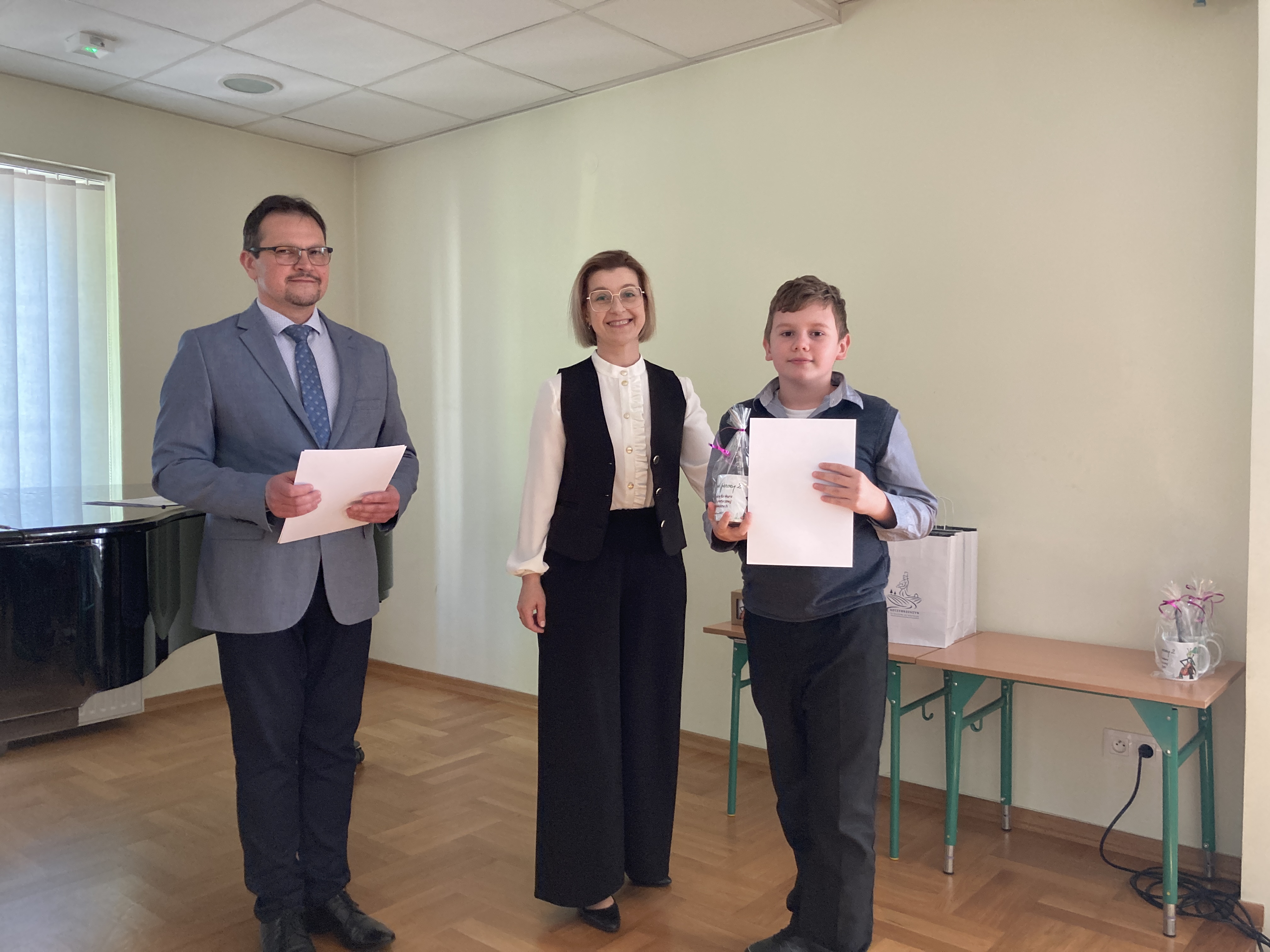 28 kwietnia 2025 roku uczniowie klasy II cyklu sześcioletniego Jan Szabat oraz Bartosz Siek wzięli udział w II Regionalnym Konkursie Teoretycznym dla najmłodszych „Co w trawie piszczy 2” zorganizowanym przez Państwową Szkołę Muzyczną I stopnia im. Karola Namysłowskiego w Szczebrzeszynie. Choć konkurs adresowany był głównie do uczniów klas III, dopuszczony był udział także młodszych dzieci – co dało możliwość sprawdzenia swoich sił również naszym uczniom.