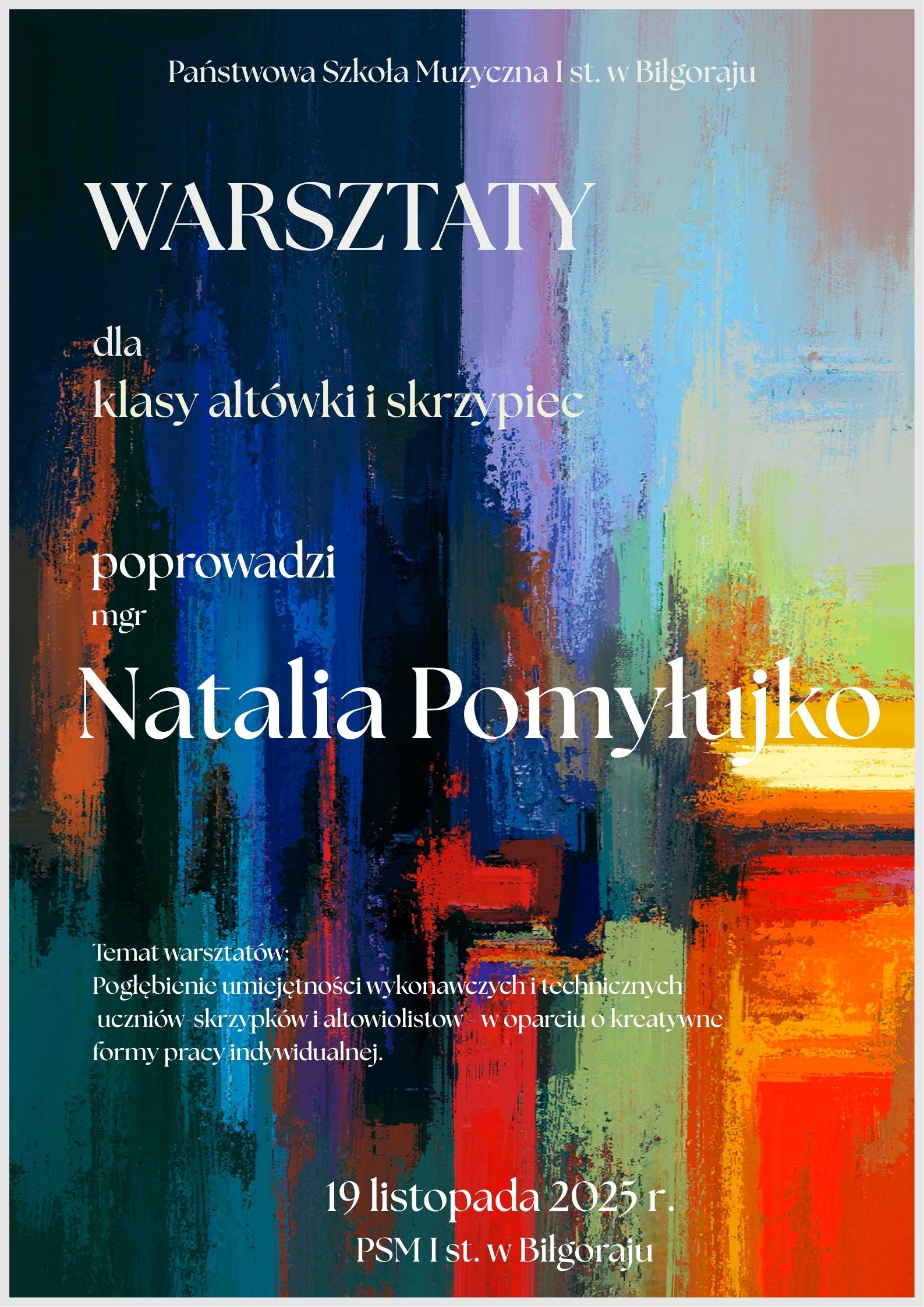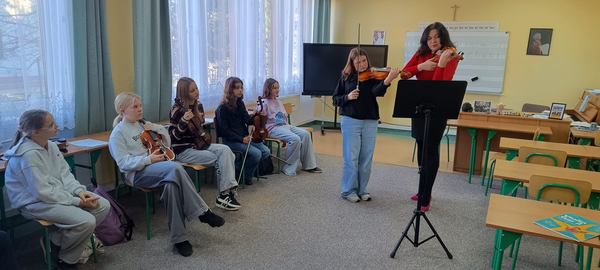 W naszej szkole odbyły się wyjątkowe warsztaty muzyczne poświęcone grze na skrzypcach oraz altówce. Poprowadzili je Natalia Pomyłujko i Maciej Szuksztul, którzy na co dzień łączą pasję do instrumentów smyczkowych z ogromnym zaangażowaniem w pracę z młodzieżą.