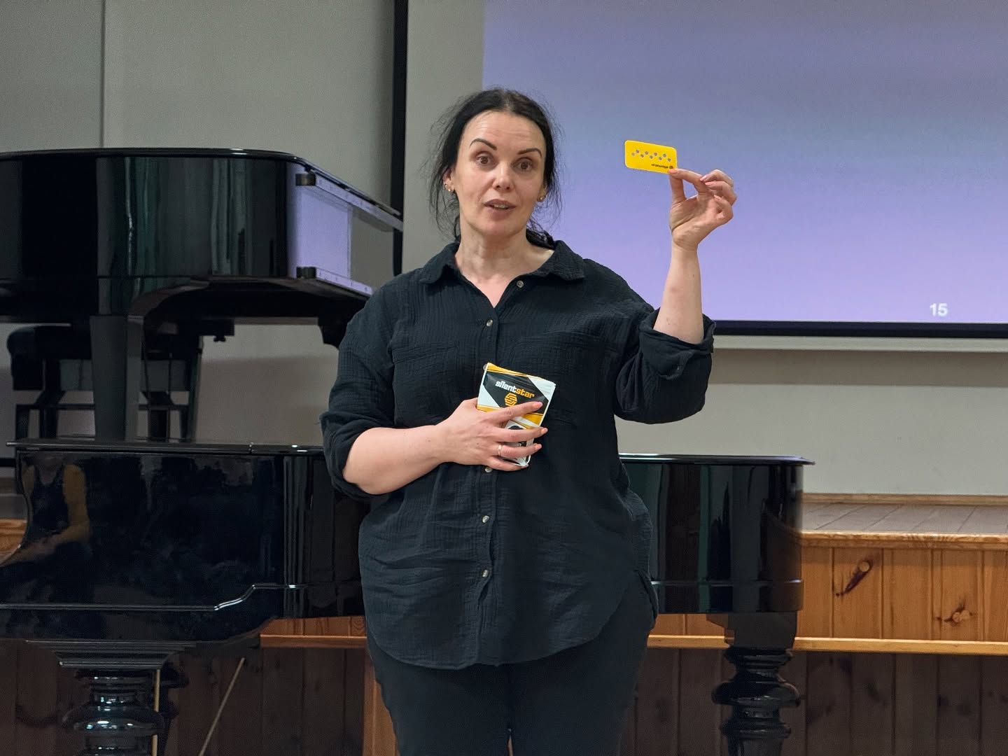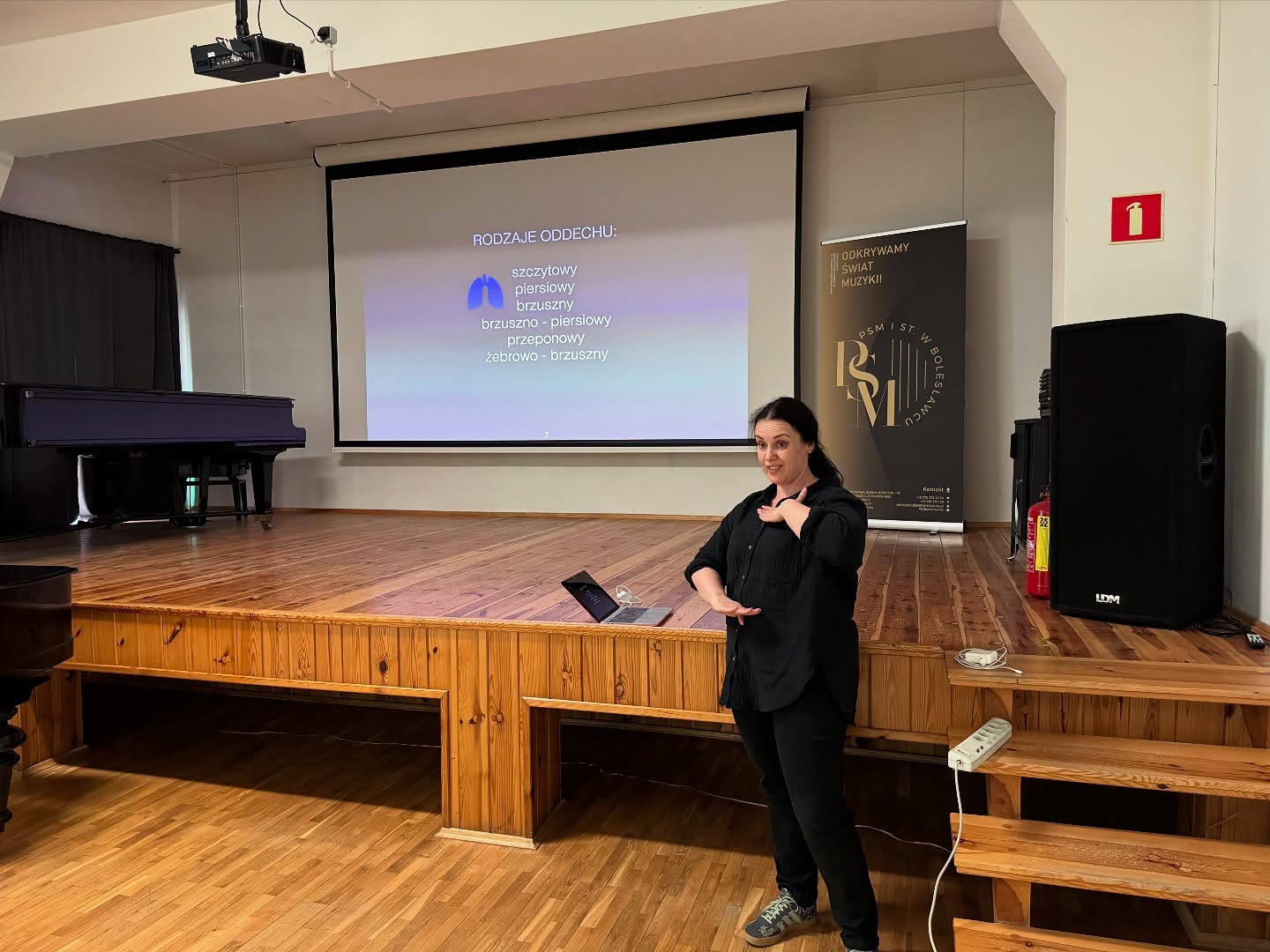 . Zaj臋cia przeprowadzi艂a Pani Magdalena Falewicz-Weso艂owska - nauczyciel klasy klarnetu oraz trener oddechu. Poznali艣my zasady radzenia sobie w sytuacjach stresowych i problemach zdrowotnych, którym mo偶na przeciwdzia艂a膰 poprzez prawid艂owy oddech. Warsztaty sk艂ada艂y si臋 z cz臋艣ci teoretycznej oraz praktycznej.