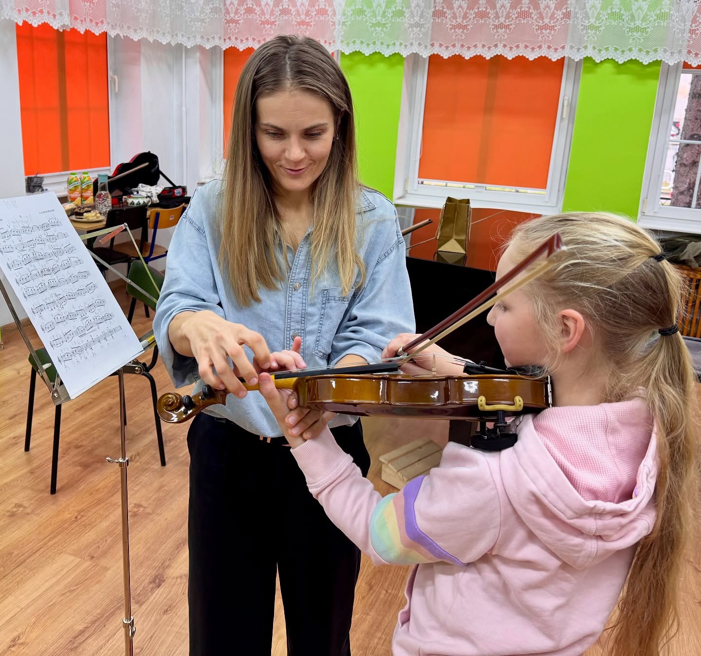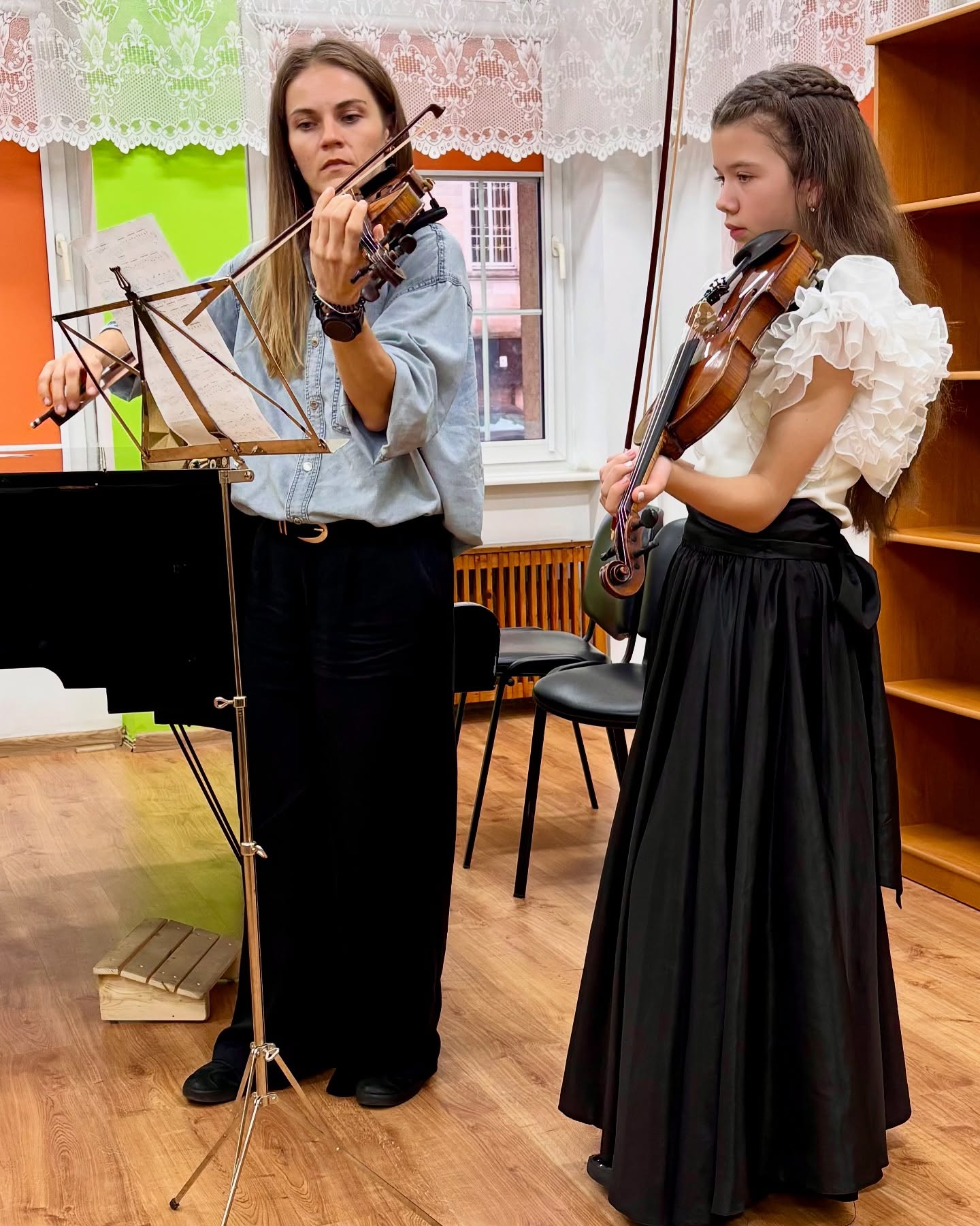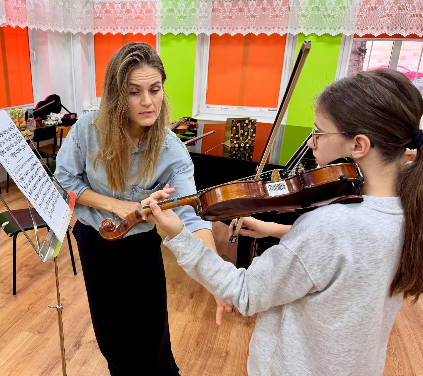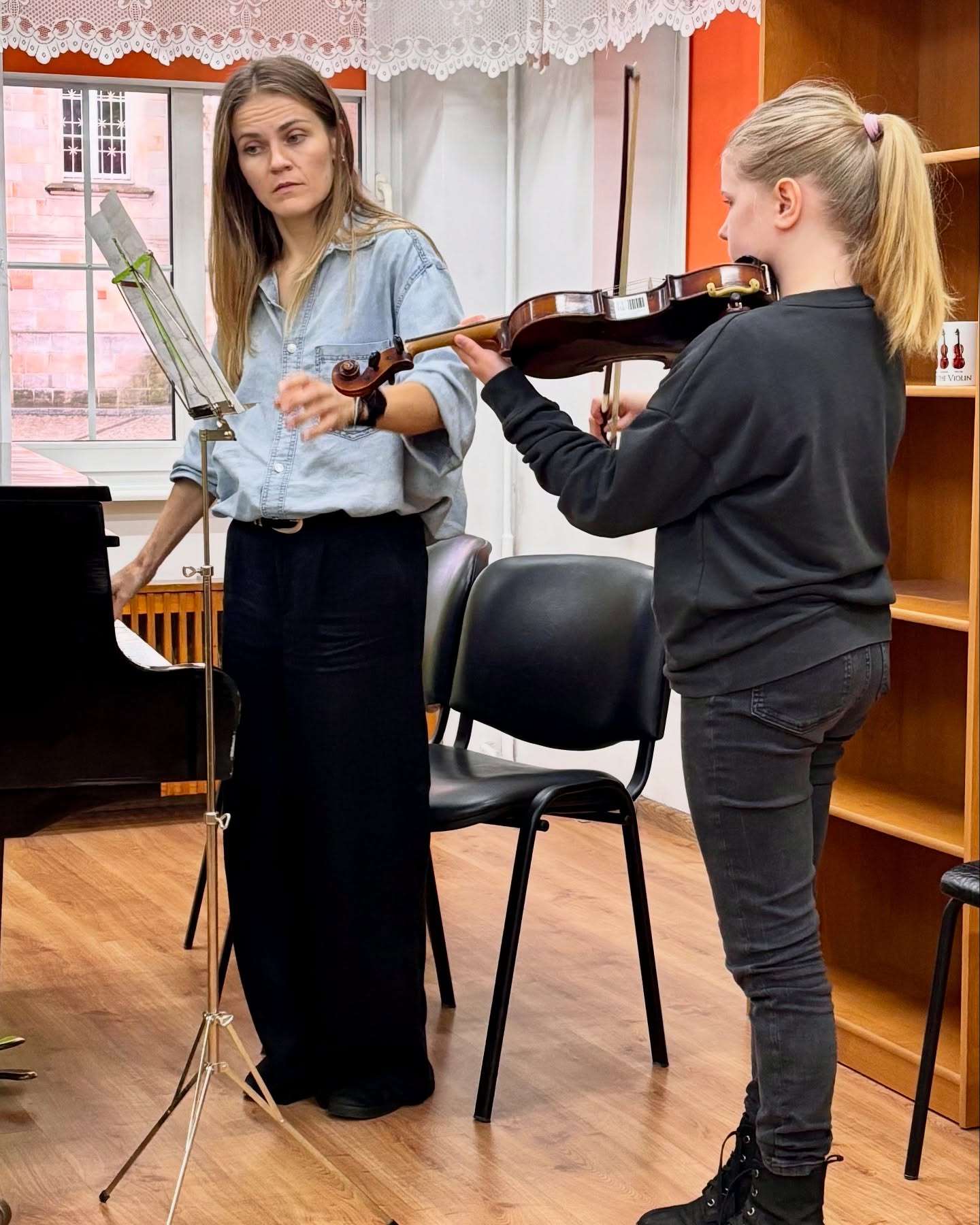 Pierwsze w tym roku kalendarzowym (13.03.2025) warsztaty poprowadzi艂a mgr Edyta Kornafel, której niezwykle cenne rady wys艂uchali uczniowie z klas skrzypiec