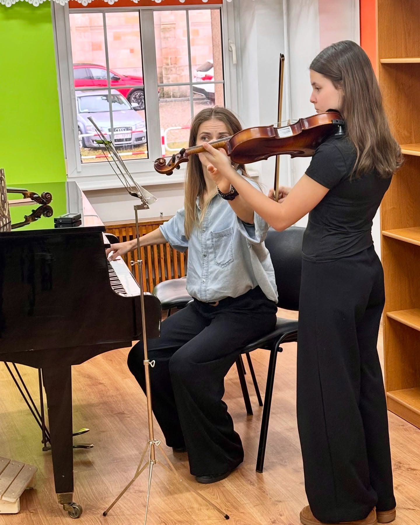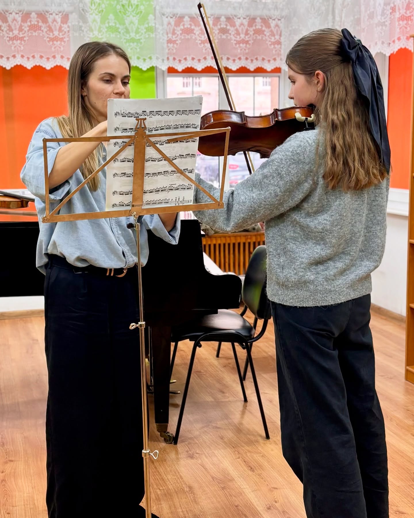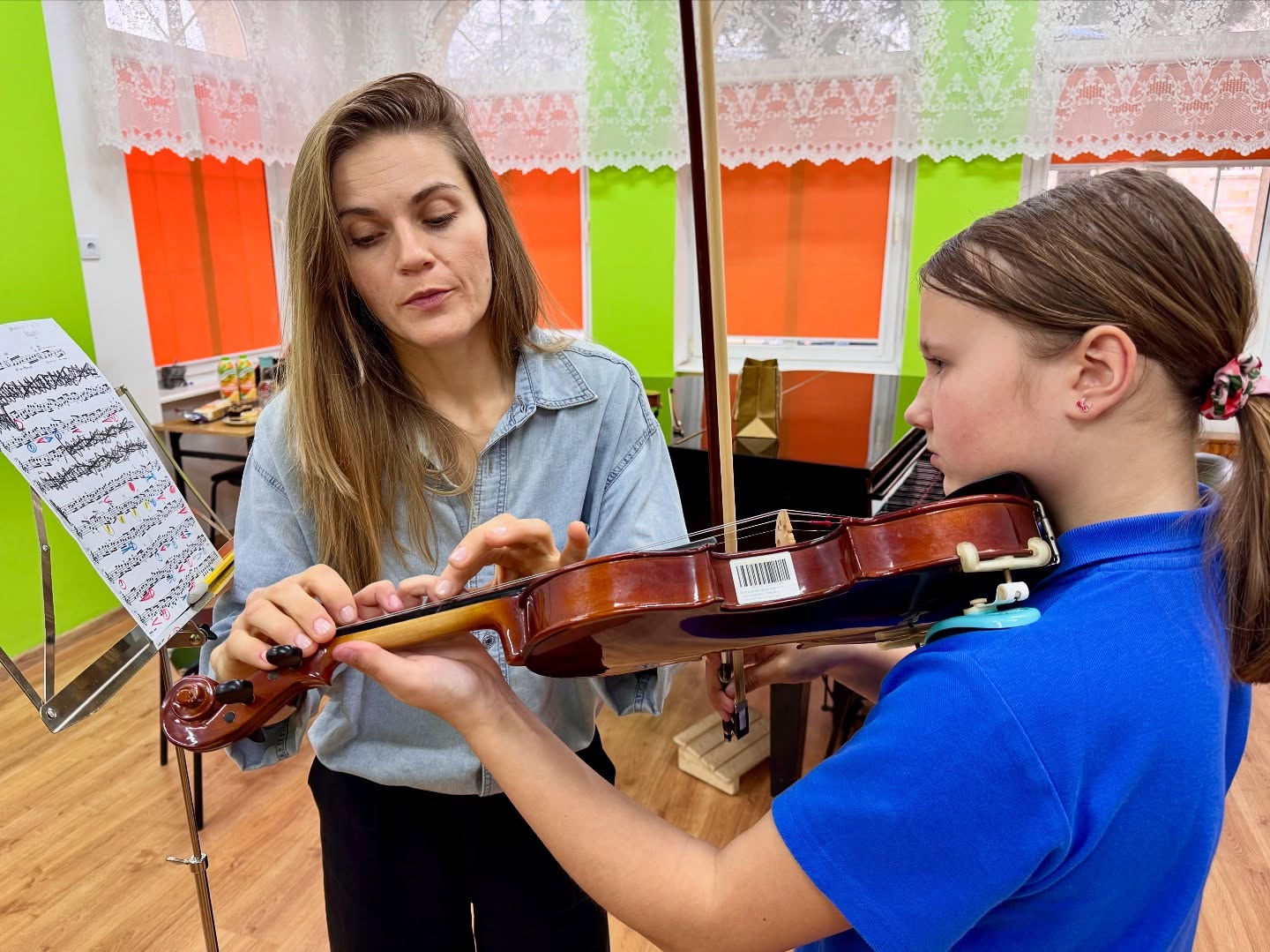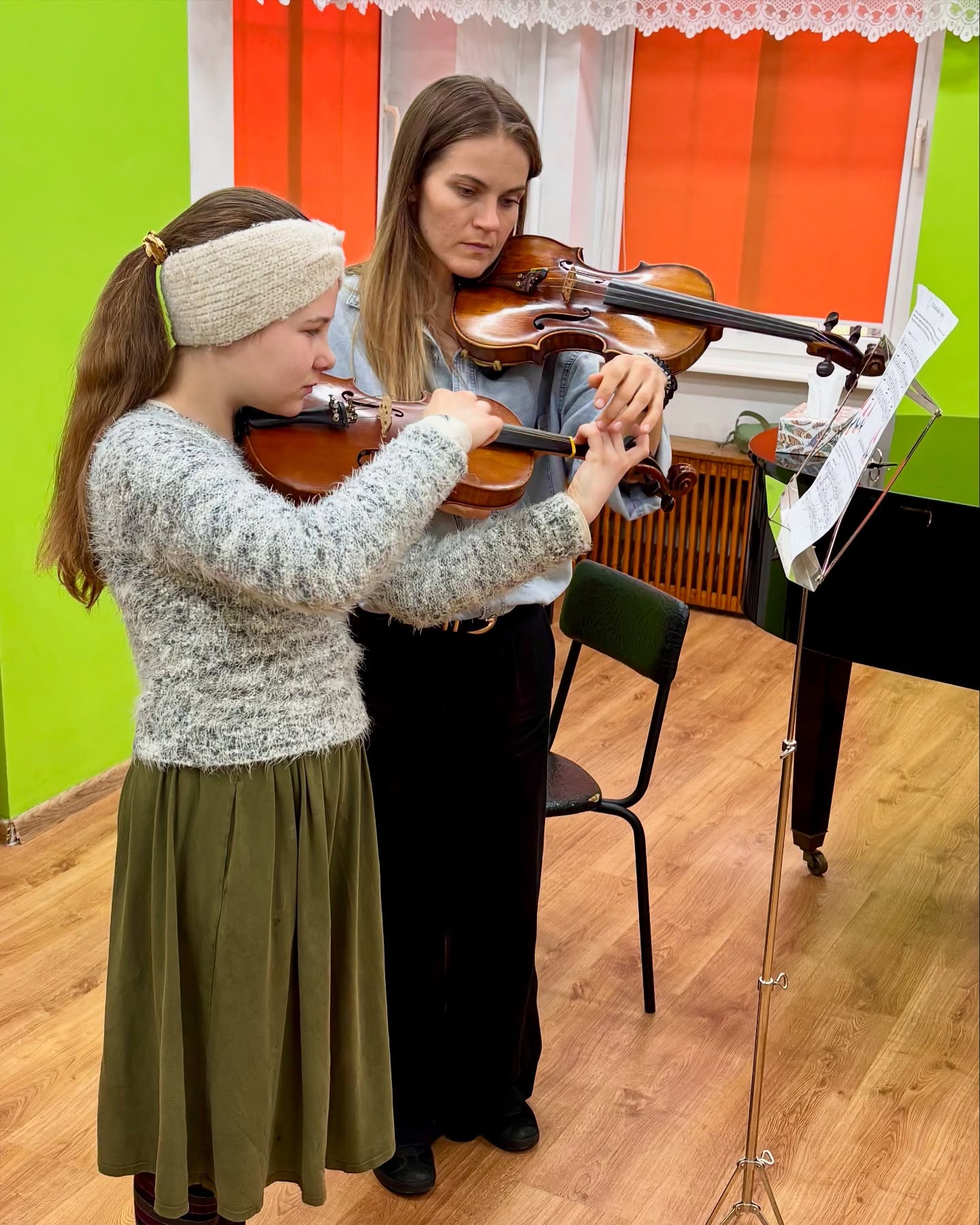 Pierwsze w tym roku kalendarzowym (13.03.2025) warsztaty poprowadzi艂a mgr Edyta Kornafel, której niezwykle cenne rady wys艂uchali uczniowie z klas skrzypiec