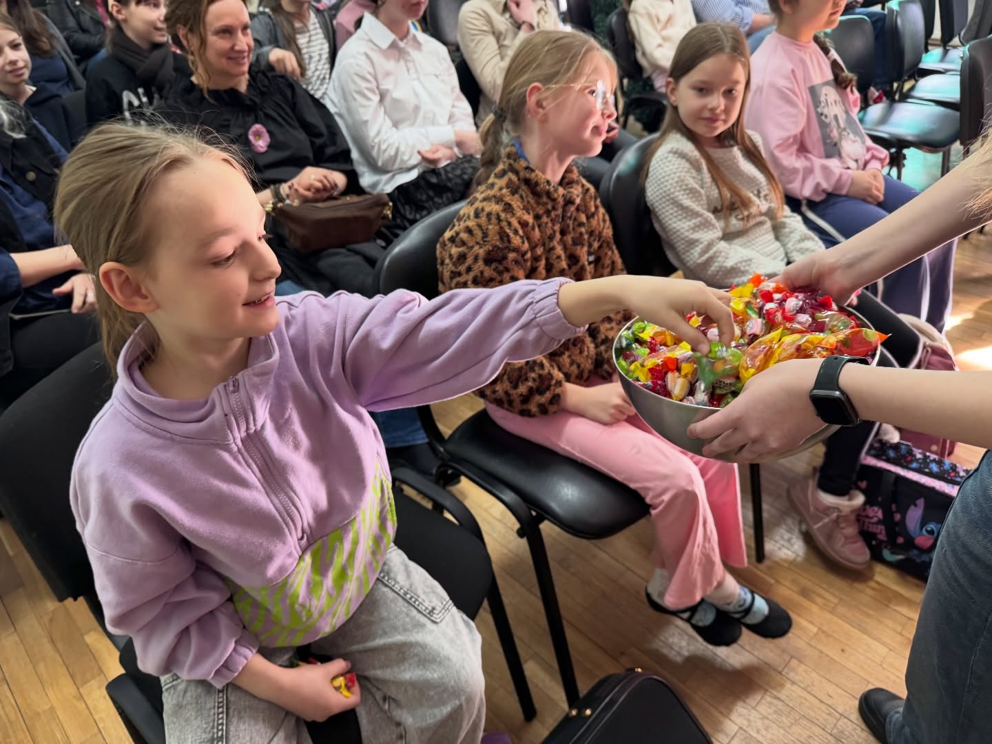 Po części artystycznej odbył się krótki quiz wiedzy o Patronie – poprawne odpowiedzi nagradzane były słodkim upominkiem