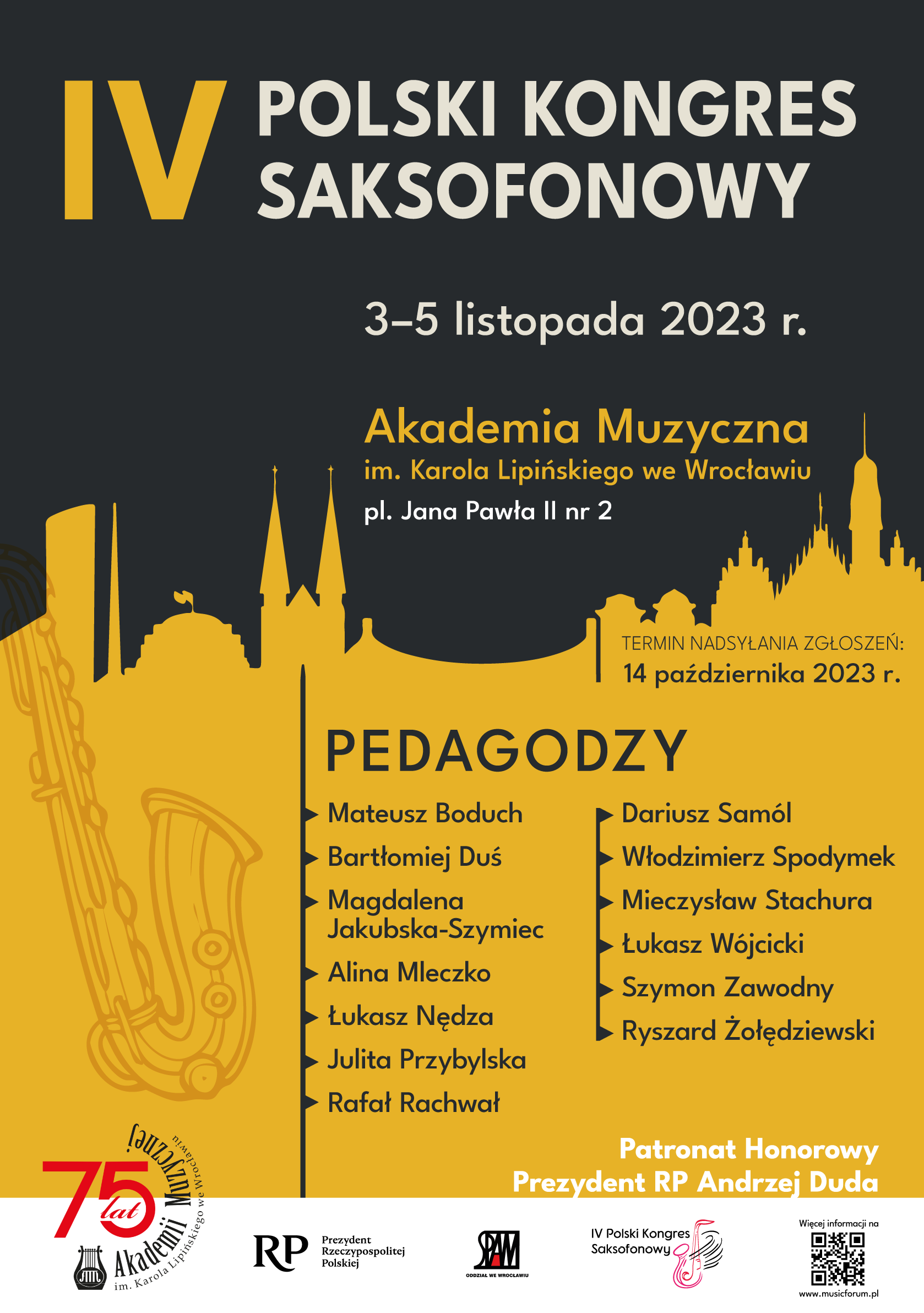 organizowanym przez Akademię Muzyczną im. K. Lipińskiego we Wrocławiu. Z założenia jest to spotkanie uczniów, studentów, nauczycieli, artystów, muzyków i melomanów muzyki saksofonowej ze znakomitymi osobowościami polskiej saksofonistyki. Wśród pedagogów uczestniczących w wydarzeniu jest również nasz nauczyciel - mgr Mateusz Boduch