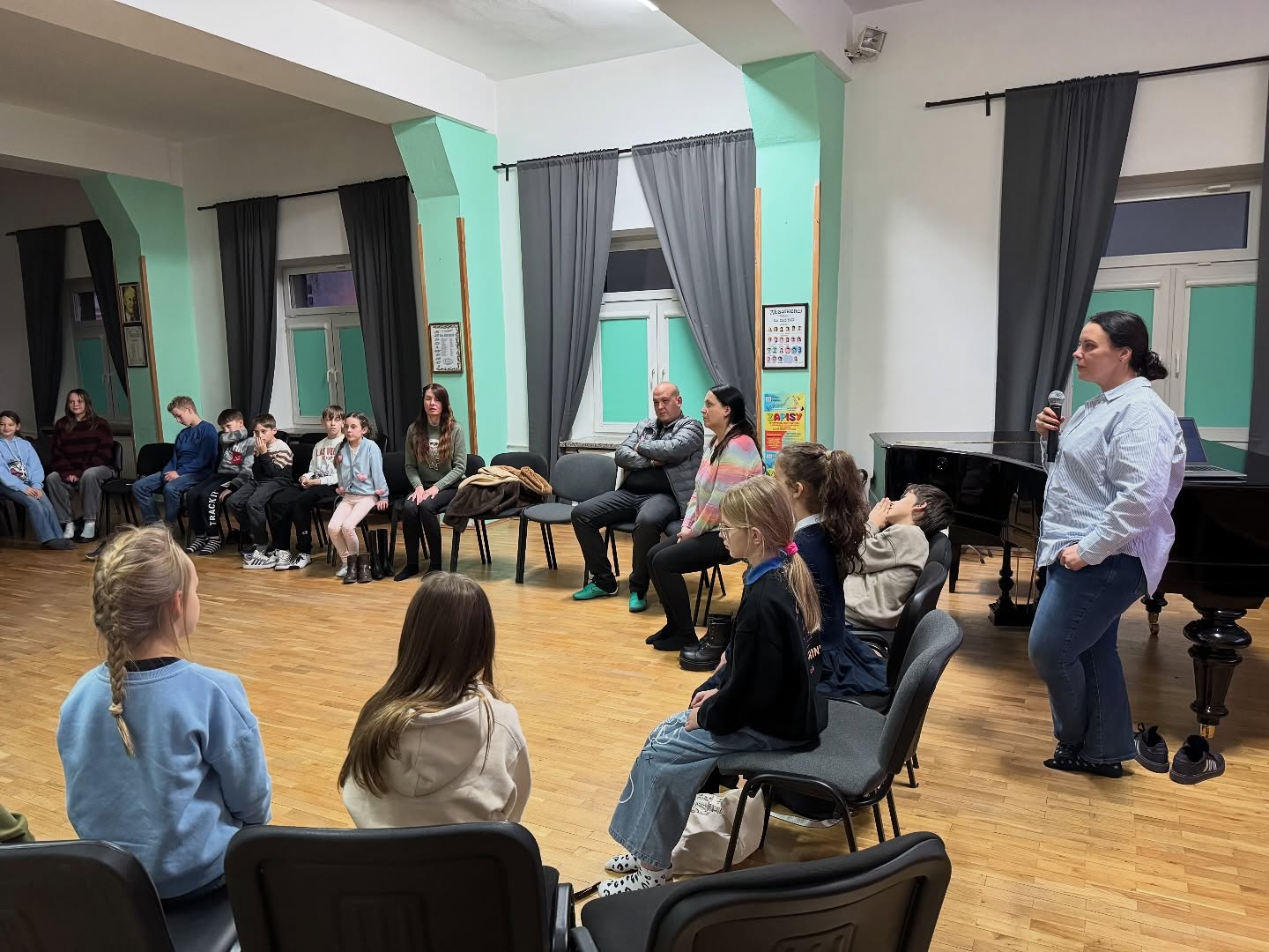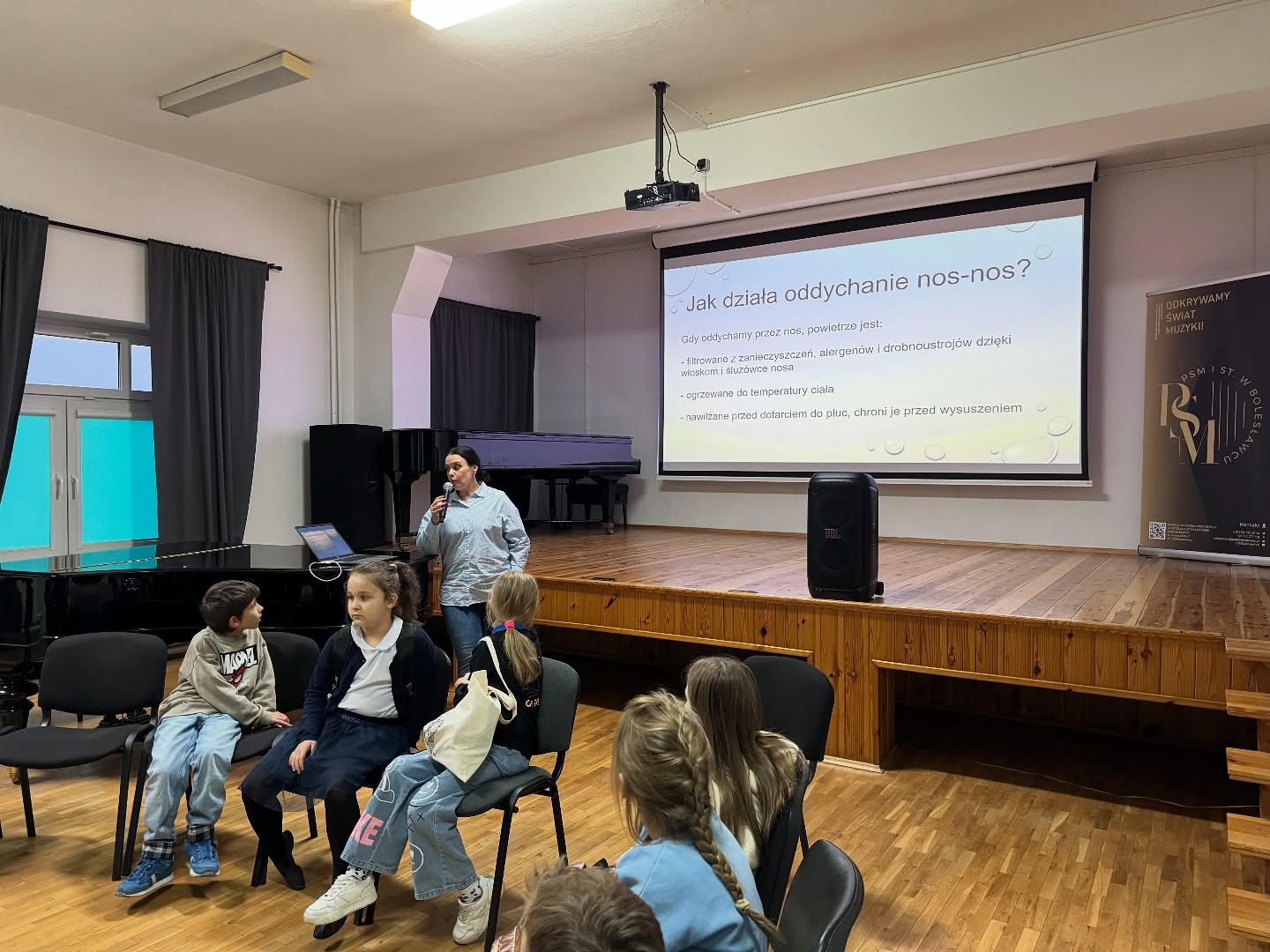 Wczoraj (27.10.2025) odbyły się warsztaty oddechowe prowadzone przez nauczycielkę klasy klarnetu - panią Magdalenę Falewicz-Wesołowską. W zajęciach wzięli udział nie tylko uczniowie, ale także nauczyciele i rodzice, zainteresowani tematyką świadomego oddychania