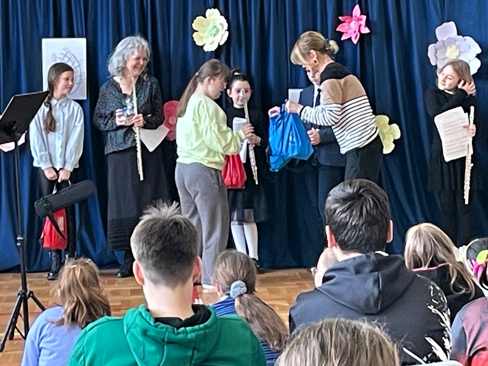 10 kwietnia, przed południem w Powiatowym Zespole Szkół i Placówek Specjalnych w Bolesławcu nasze flecistki: Nadia Brytańczyk, Wiktoria Przewoźna, Maja Chodyra i Zofia Szelejewska dały razem ze swoją nauczycielką panią Moniką Kobayashi koncert duetów w ramach "Koncertu wiosennego
