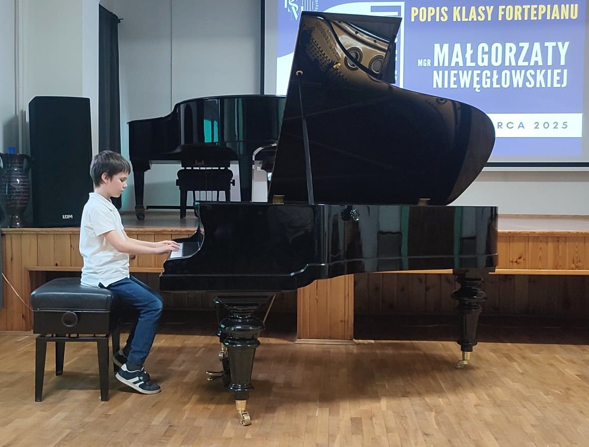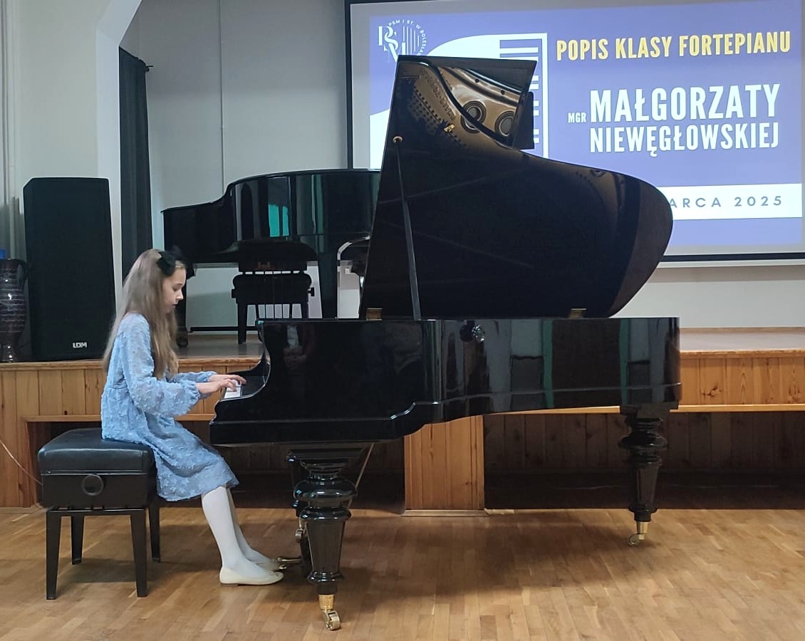 Wczorajszego wieczoru (12.03.2025 r.) podczas popisu klasowego pani Małgorzaty Niewęgłowskiej wszyscy uczniowie wykonali po etiudzie, którą również przygotowują na zbliżające się przesłuchania techniczne. Oczywiście poza najmłodszymi z nich