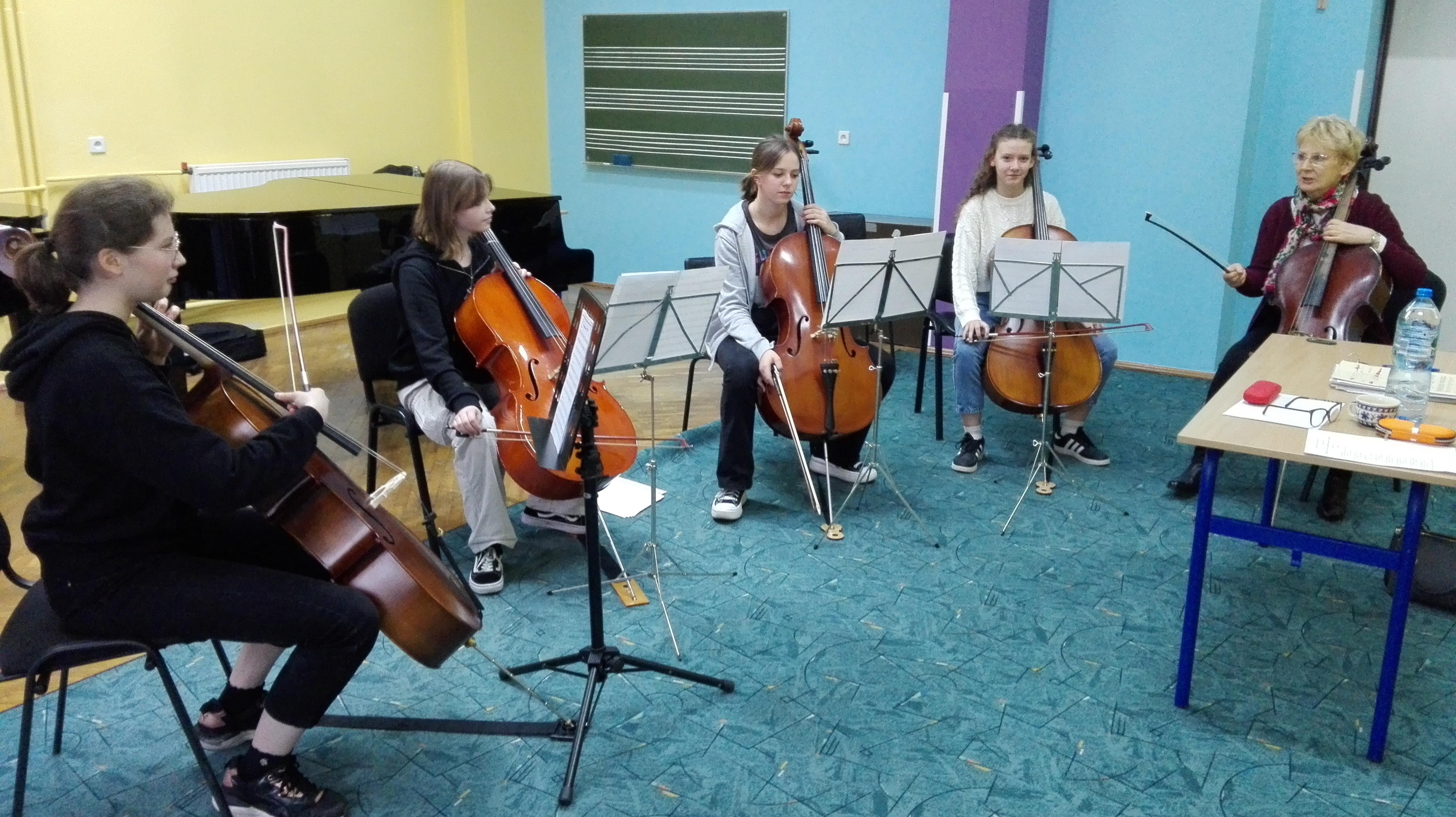 We wtorek 25.04.2023 r. w PSM I st. im. W. Lutosławskiego w Bolesławcu odbyły się warsztaty wiolonczelowe, które poprowadziła znakomita wiolonczelistka i wieloletni pedagog Akademii Muzycznej we Wrocławiu – prof. dr hab. Lidia Grzanka-Urbaniak. W warsztatach wzięło udział osiem uczennic z klasy wiolonczeli oraz kwartet wiolonczelowy o wdzięcznej nazwie "Kama".