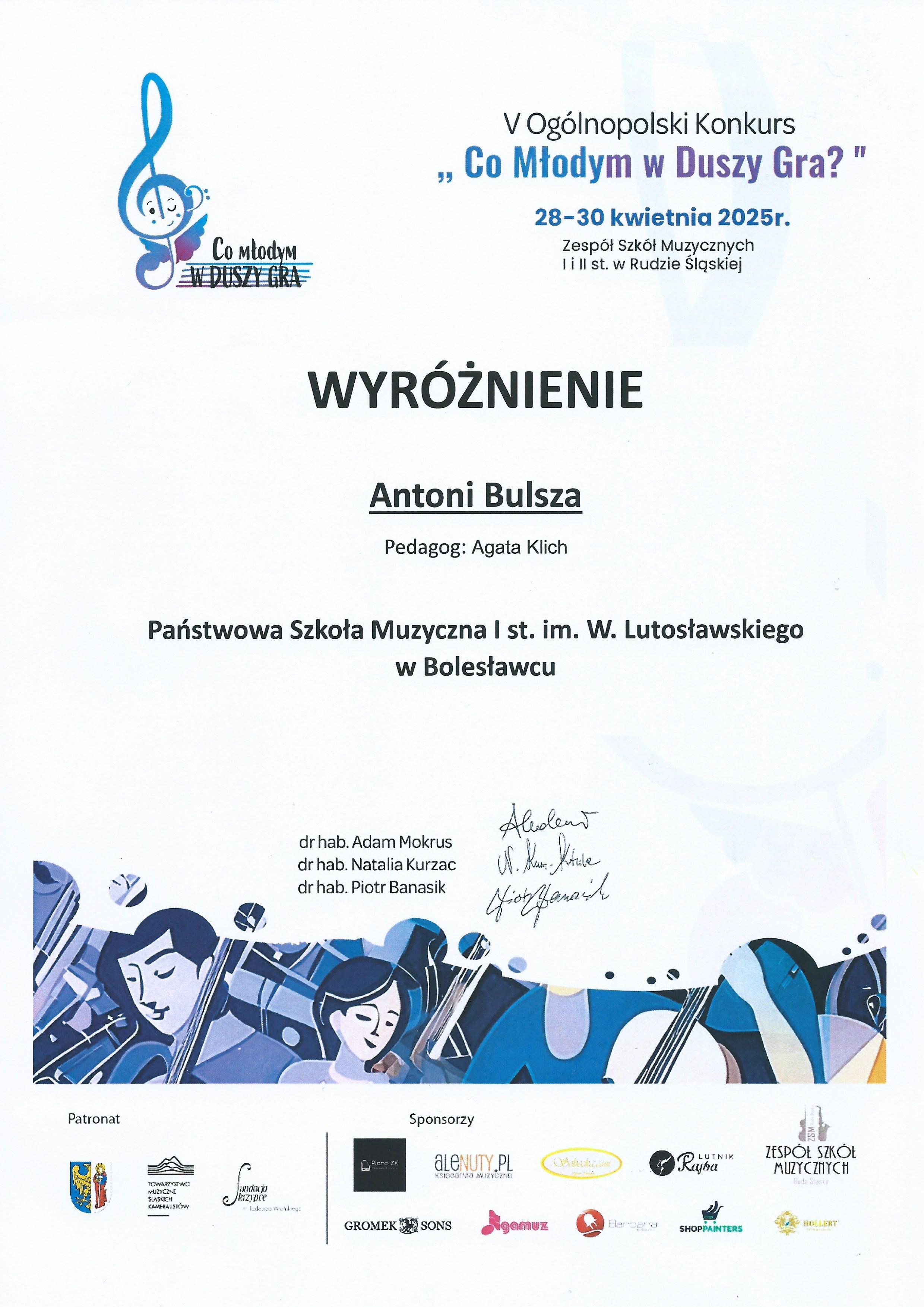 w V Ogólnopolskim Konkursie "Co Młodym w Duszy Gra?":