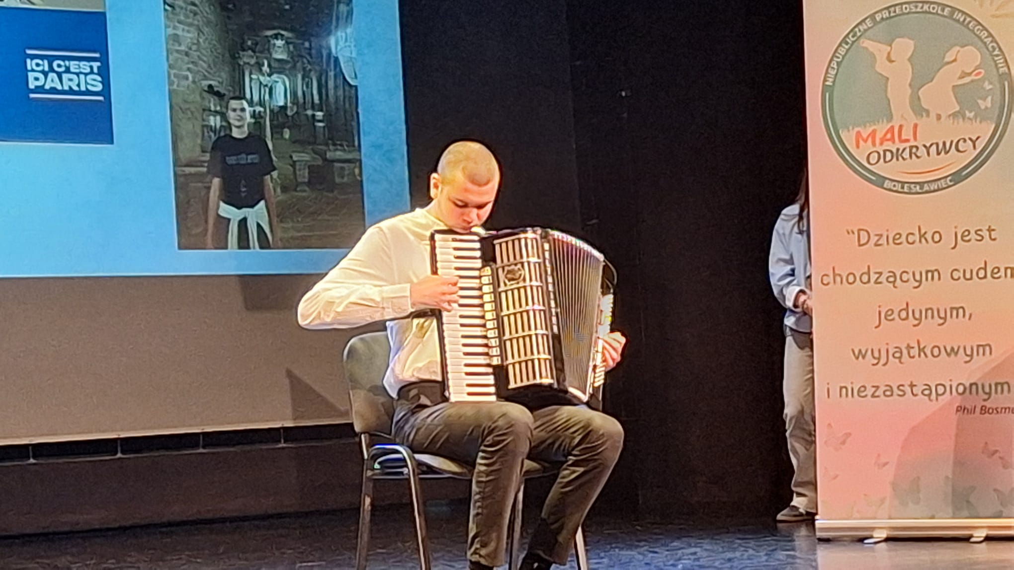Wśród występujących nie zabrakło także naszego ucznia – Necmiego Demira, który kształci się w klasie akordeonu pod opieką pana Bogusława Kłaka. Necmi zaprezentował utwór „Figlarna Polka”, za który otrzymał pamiątkowy medal.